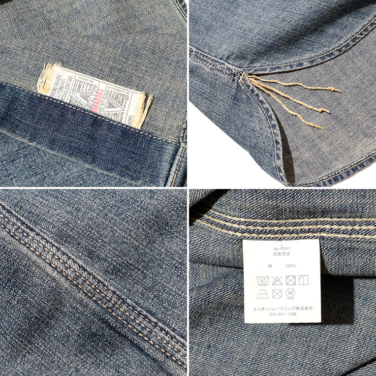 유니온 티켓, 체인 스티치 마감, 트리플 스티치 등 빈티지 워크웨어 디테일 이 충실히 재현되어 매력적인 아이템입니다.