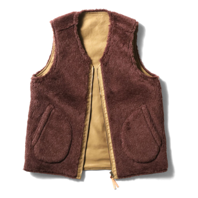 HOUSTON의 스테디셀러인 알파카 N-1 덱 자켓의 소재를 활용 해 제작된 리버시블 타입의 베스트입니다.