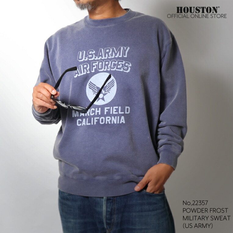 빈티지한 밀리터리 스웨트의 분위기를 살리기 위해 특수 가공 기법인 파우더 프로스트 가공을 적용한 아이템입니다.