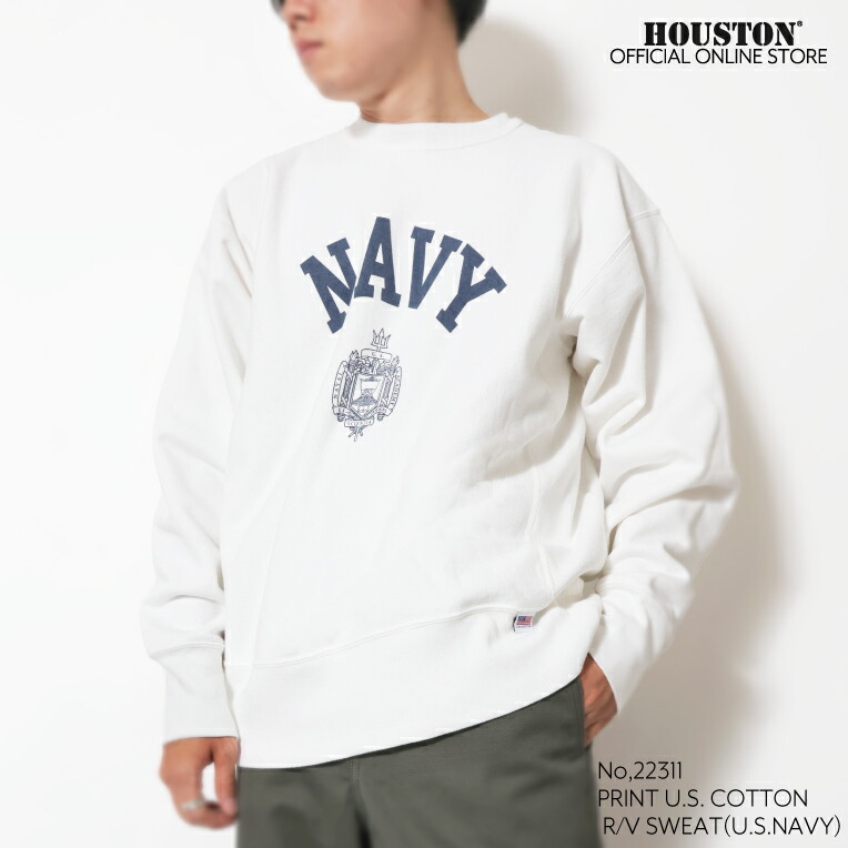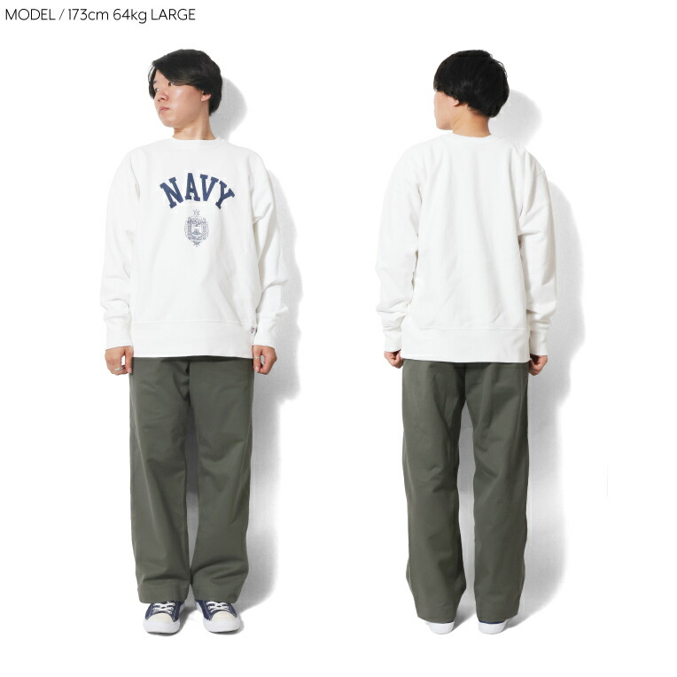 옆선에 리브 절개가 들어간 기모 안감 리버스 타입 스웨트셔츠 입니다. 고급 U.S. 코튼 을 사용하여 짜여졌으며, 밀리터리 리버스의 명품, U.S. NAVY 로고 를 잉크 침투율을 높인 초 침투 프린트 방식으로 재현했습니다.