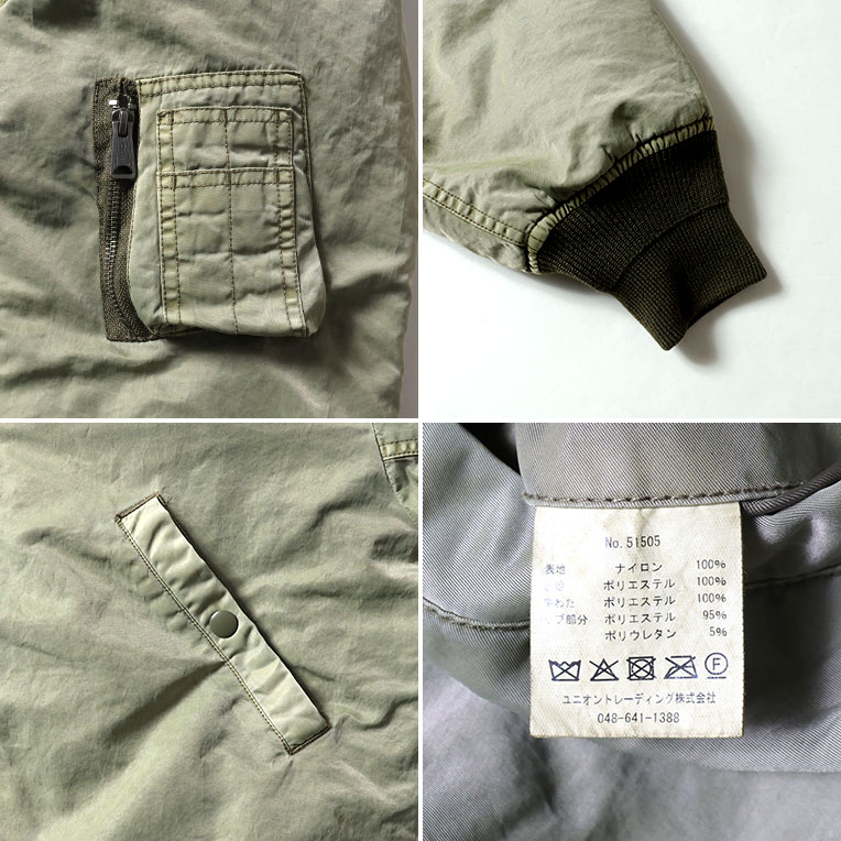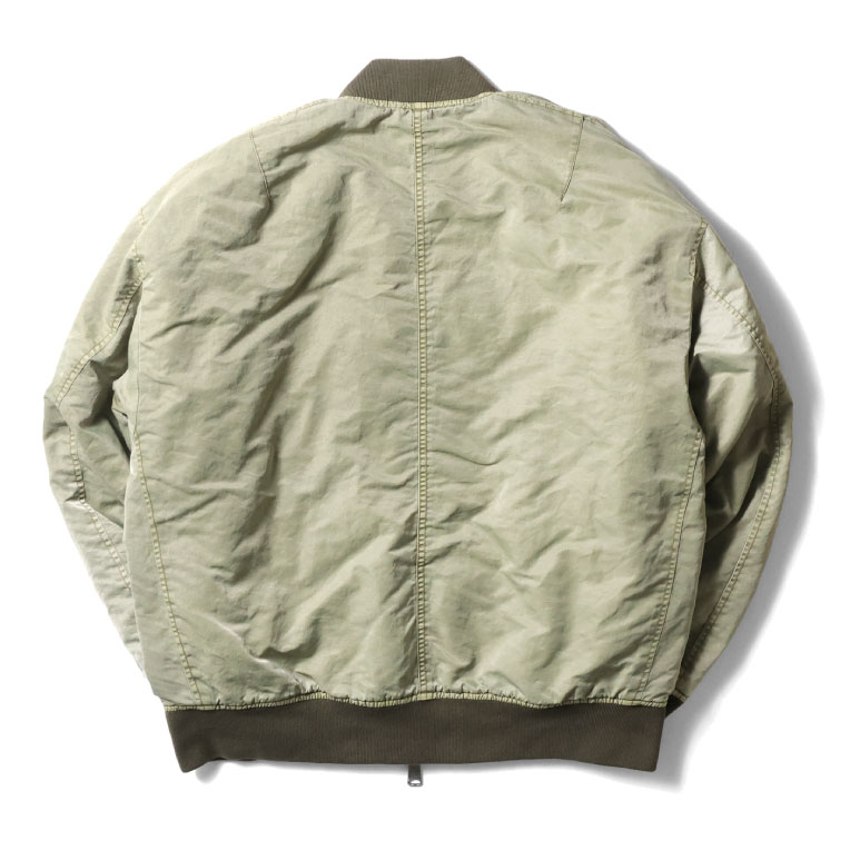 헤비 나일론 트윌 원단 을 사용해 제작된 피그먼트 다잉 MA-1 플라이트 재킷 입니다.
