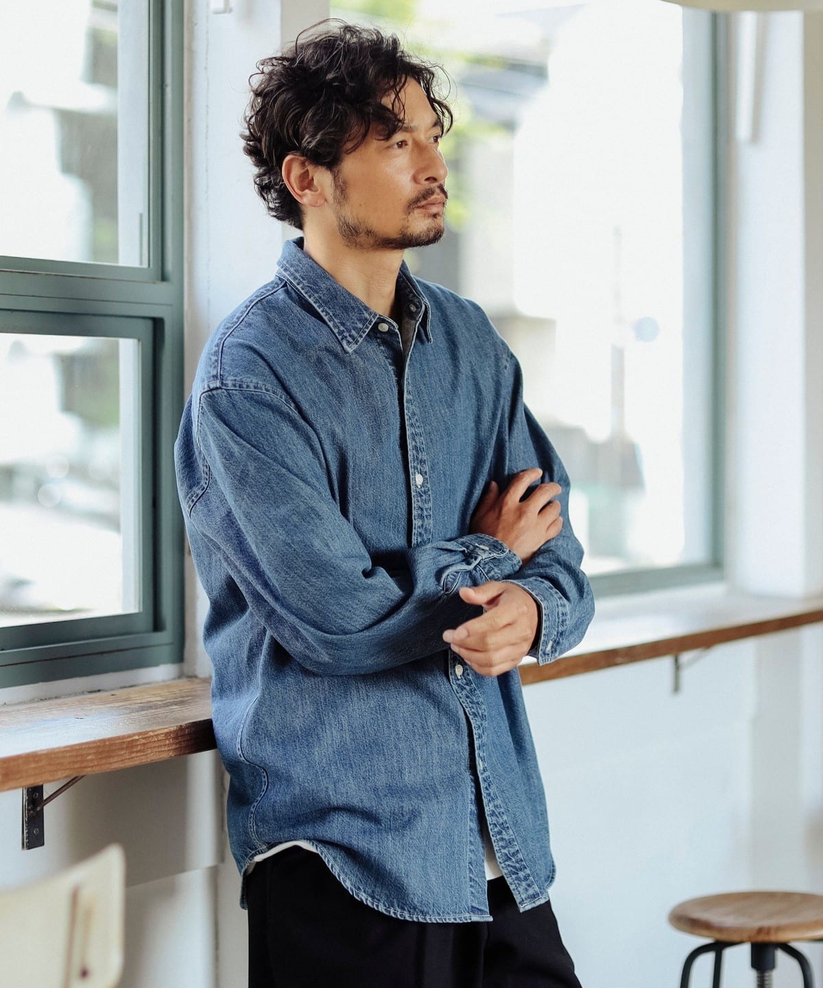 빔즈 데님 버튼 다운 셔츠 와이드 페이드 11-11-1048-791