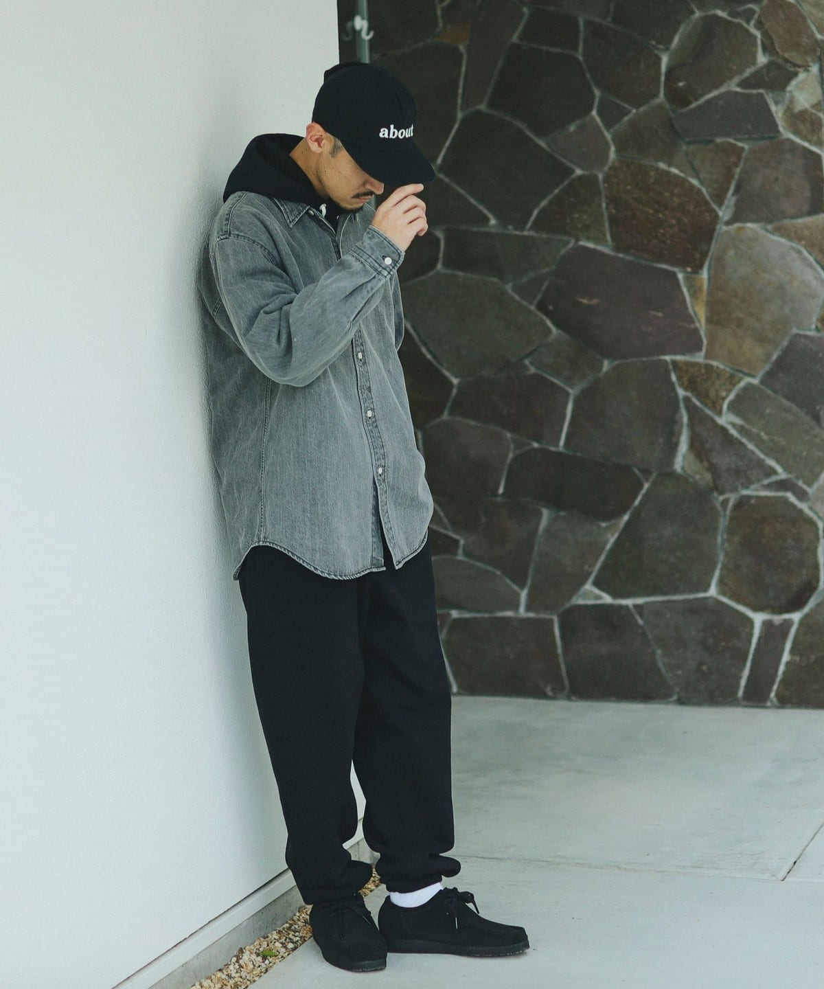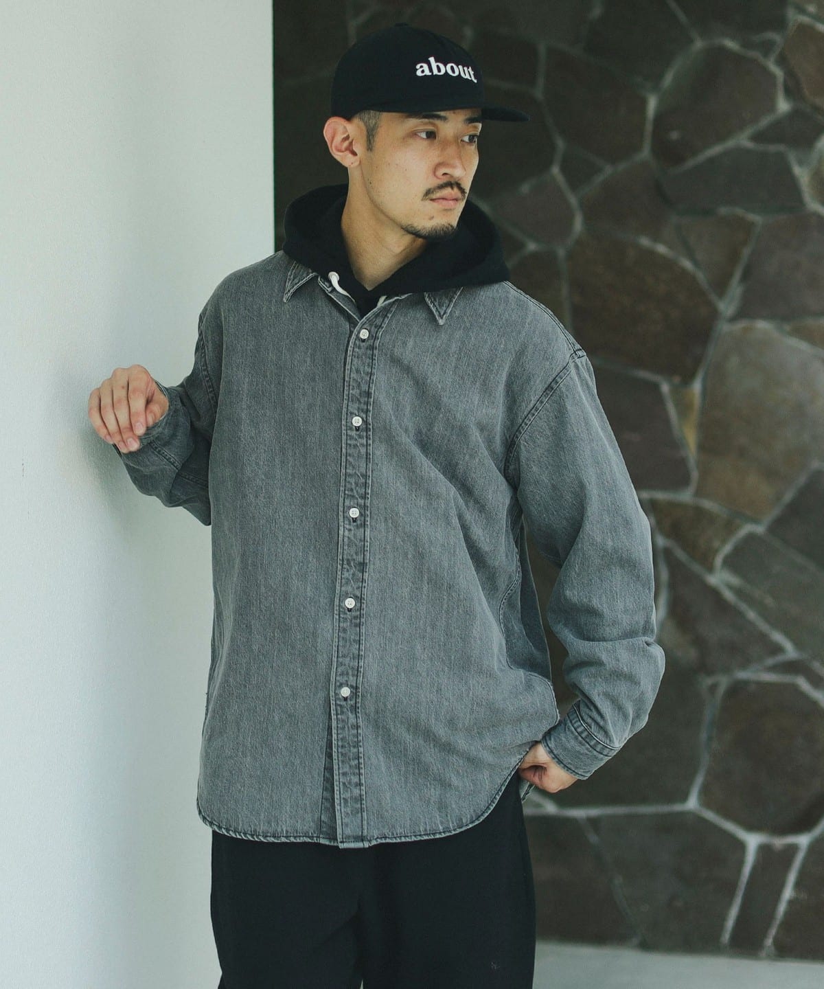데님 소재로 만든 심플한 레귤러 칼라 셔츠. 적당히 두꺼운 코튼 데님 소재를 사용했습니다.