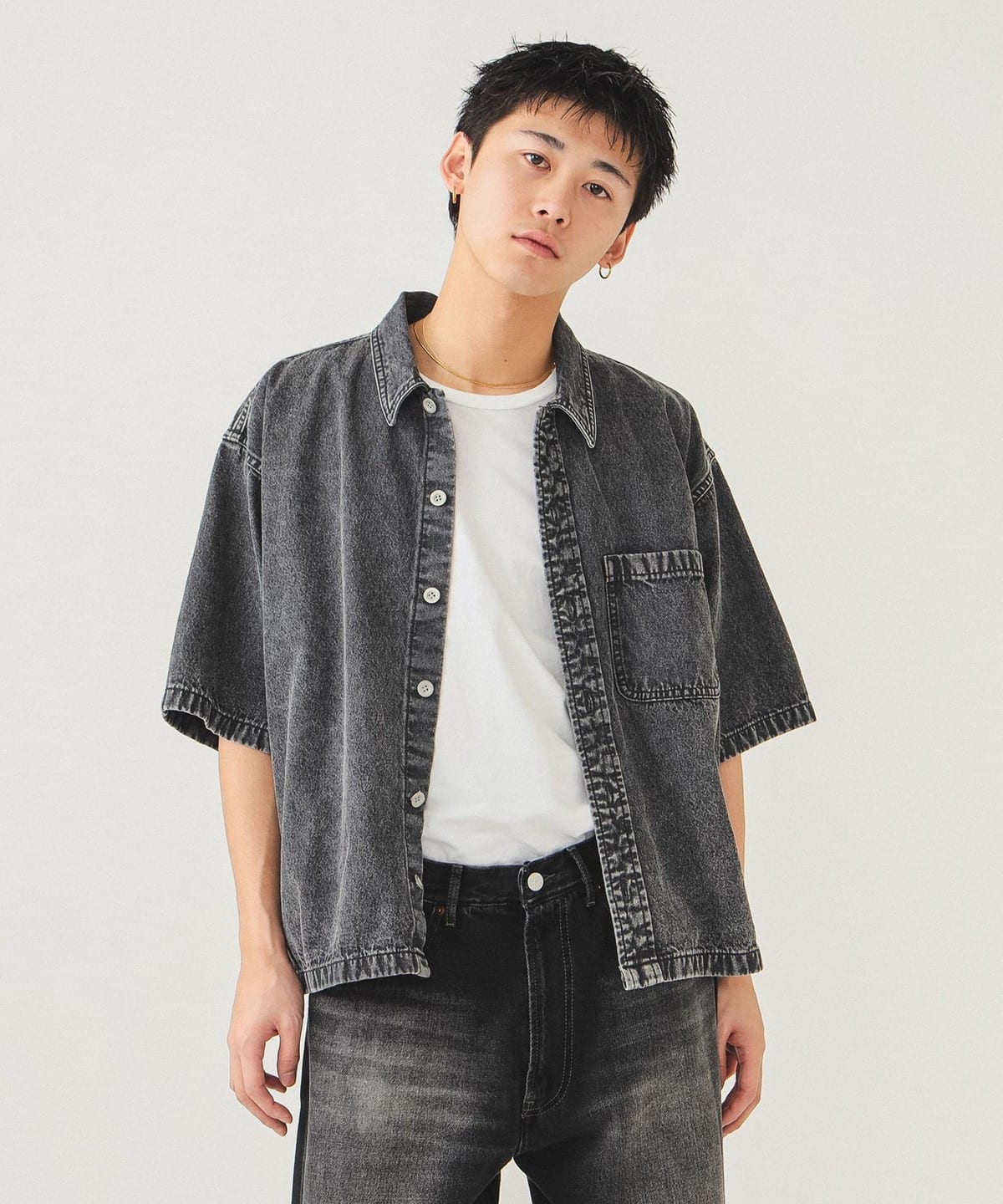 빔즈 쇼트 데님 반팔 셔츠 11-01-1596-791