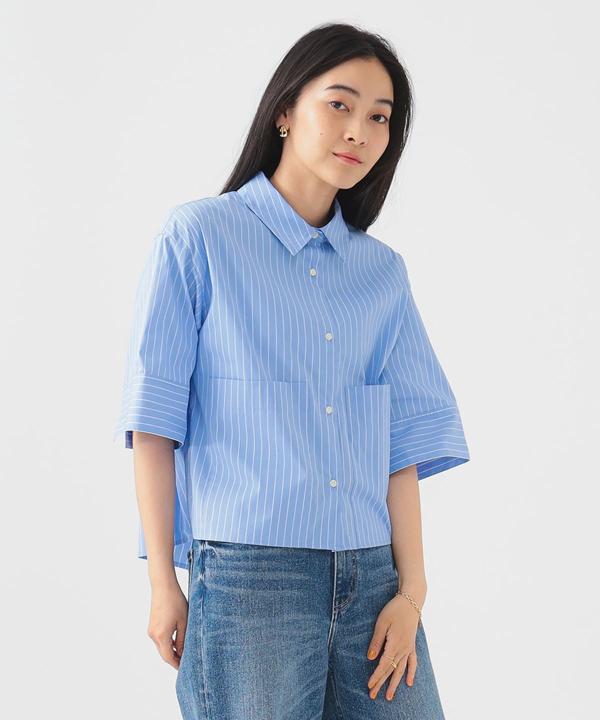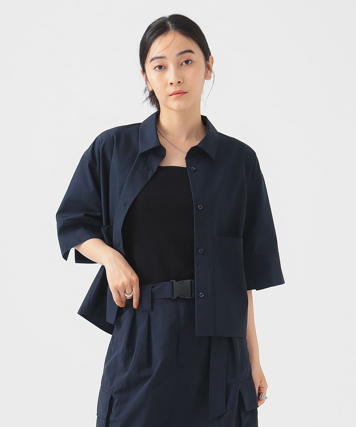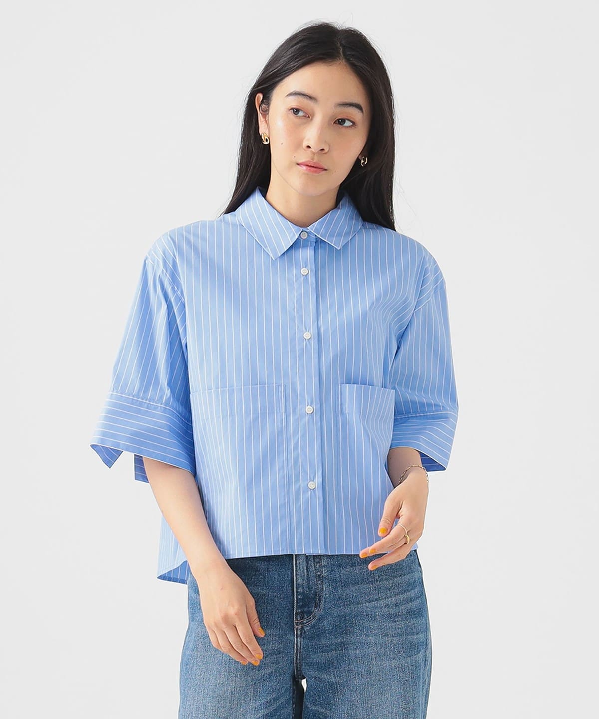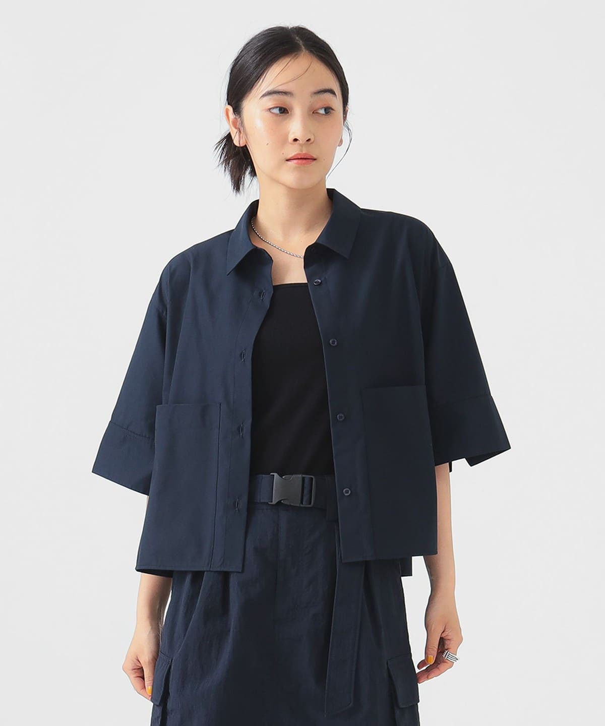 세련된 분위기를 담은 숏기장 디자인 셔츠입니다.