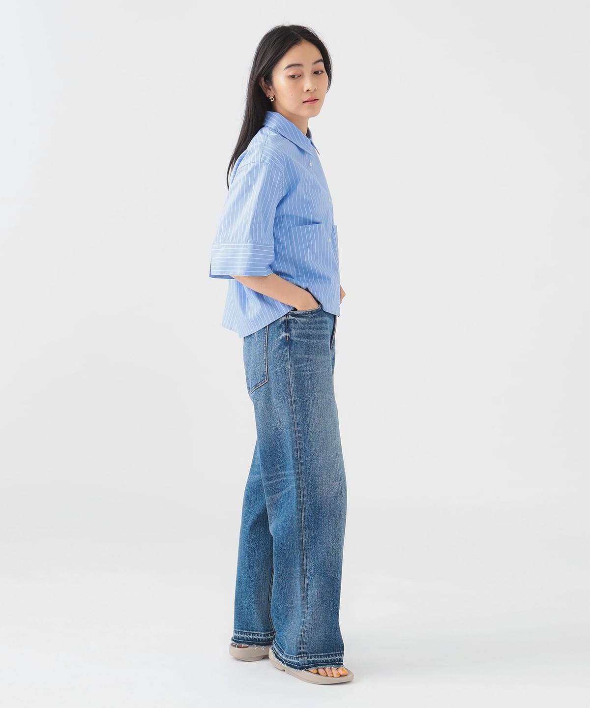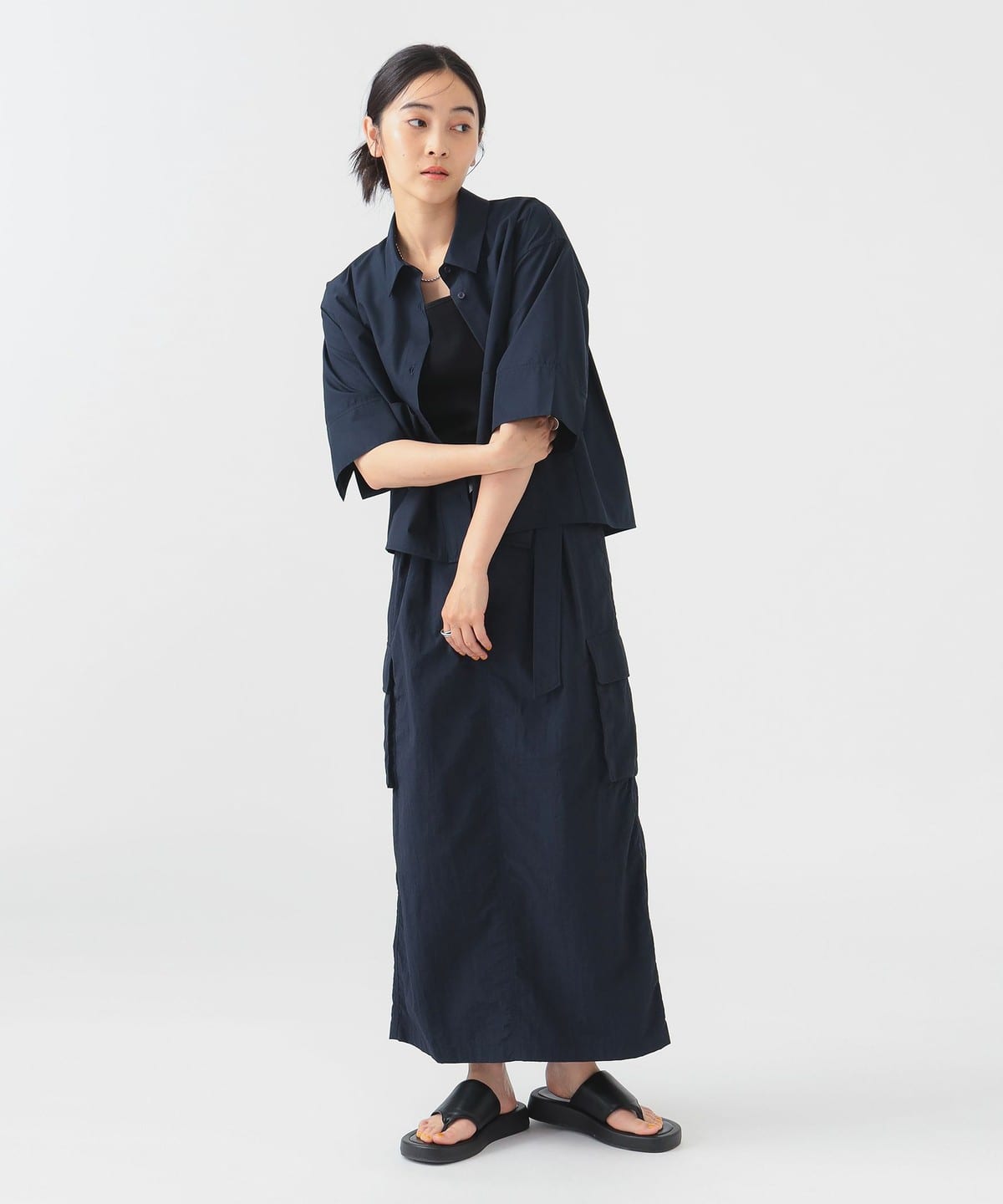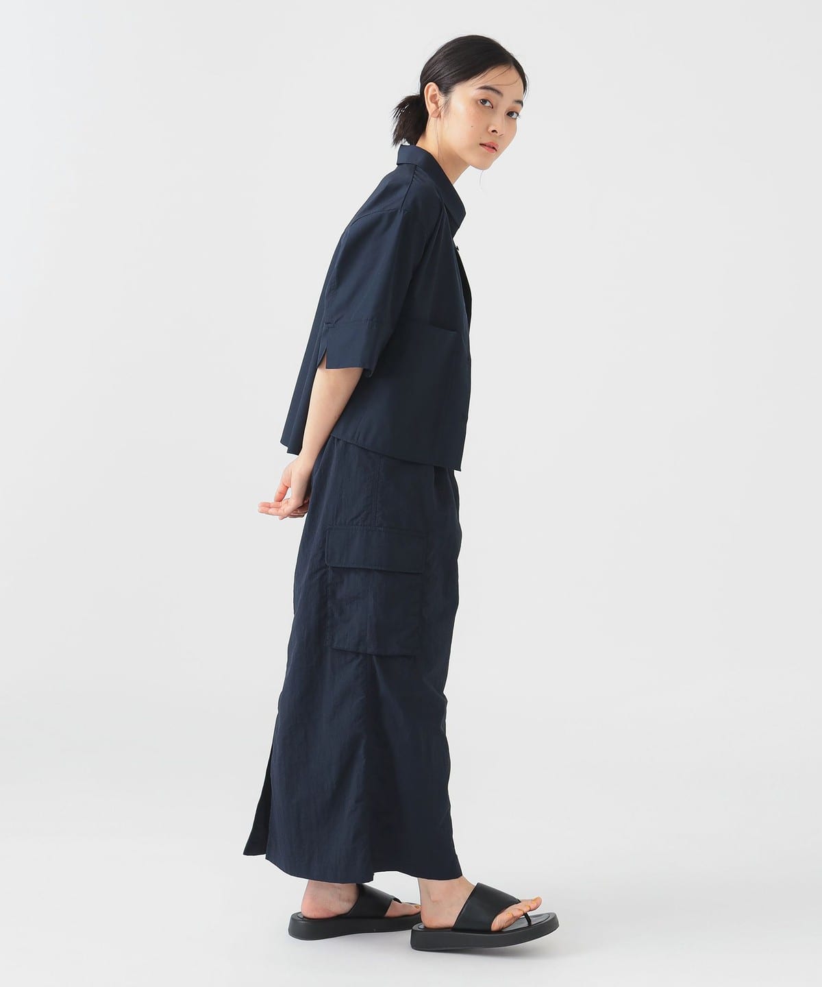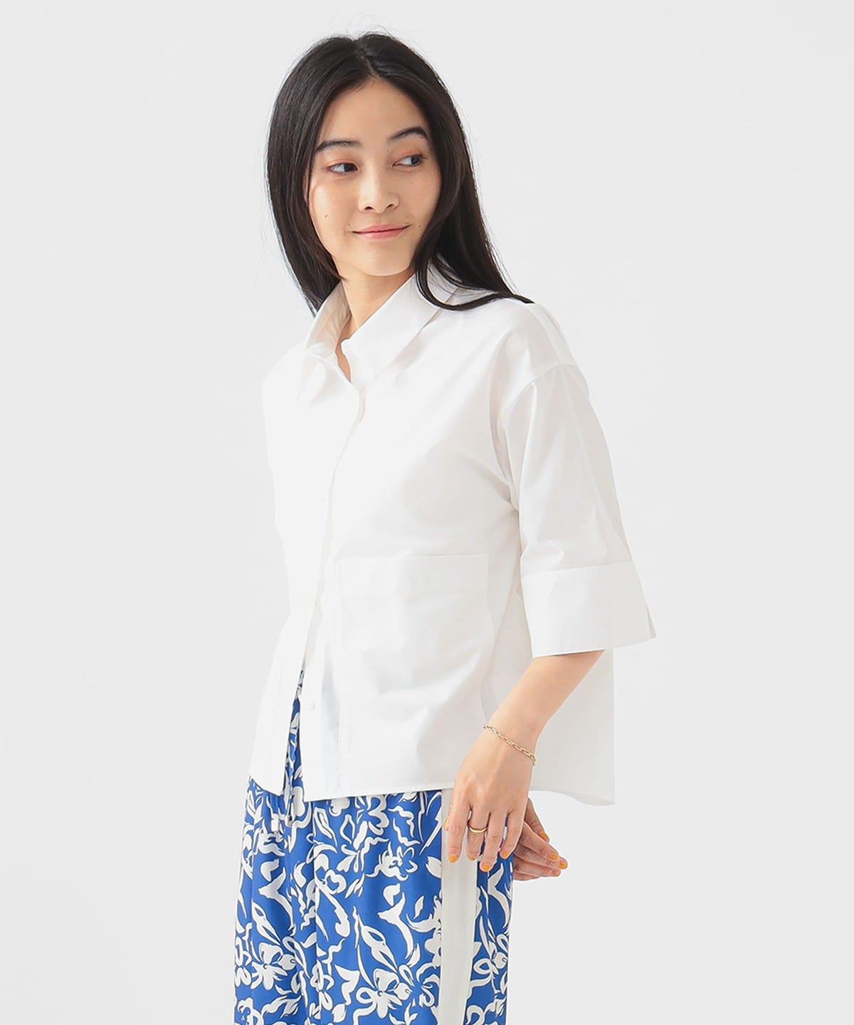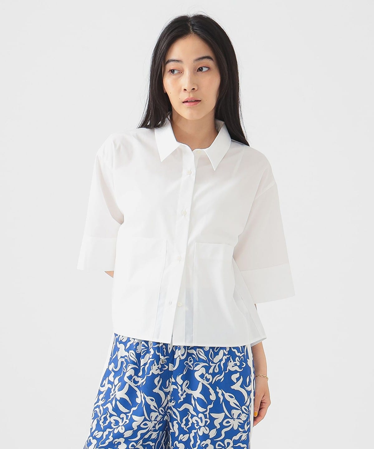 세련된 분위기를 담은 숏기장 디자인 셔츠입니다.
