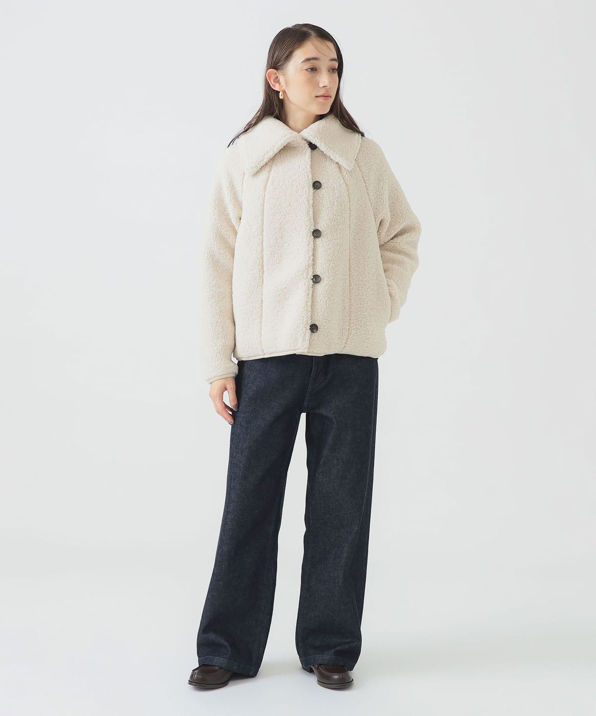 둥근 형태의 큰 프런트 버튼과 넓은 카라가 포인트인 보아 블루종입니다. 캐주얼한 스타일에 자연스럽게 어울리는 디자인이며 너무 루즈하지 않은 깔끔한 실루엣입니다.