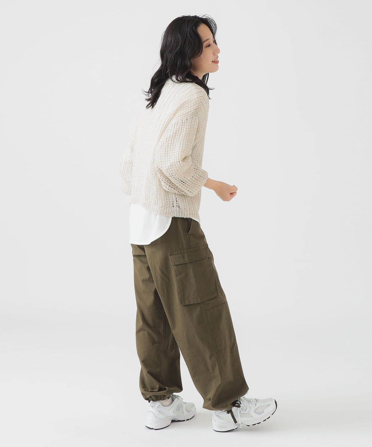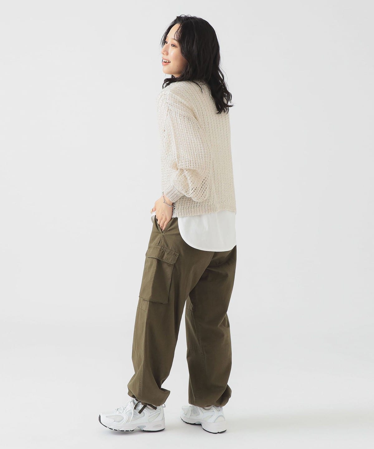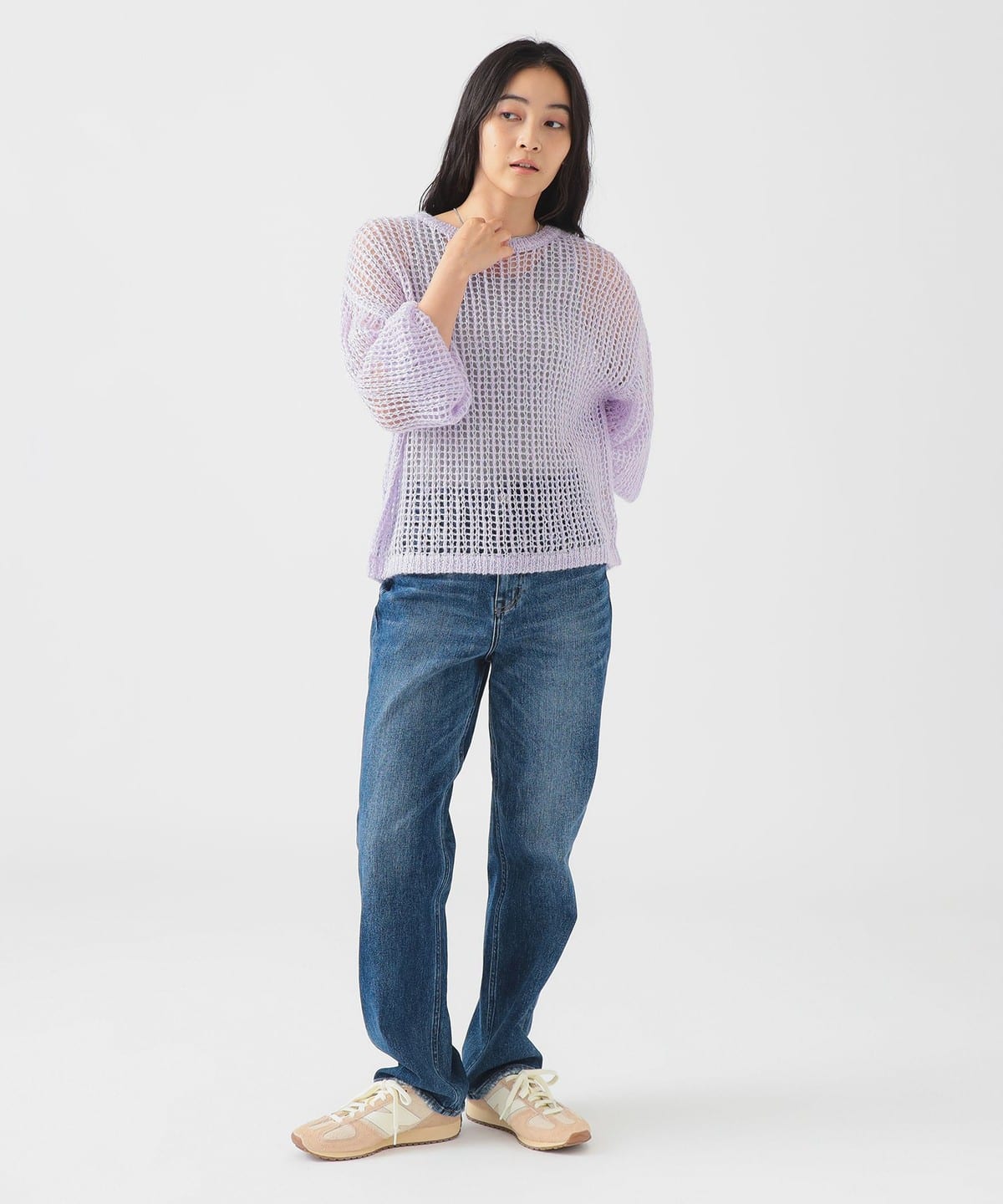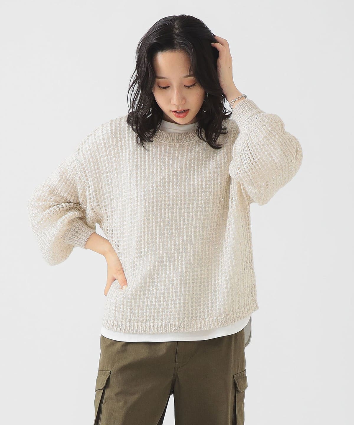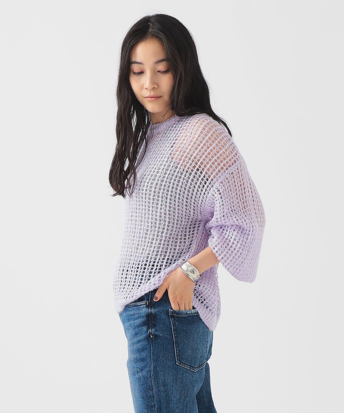 적당한 반짝임과 투명함이 특징인 메시 니트. 전체적으로 시어한 짜임이 특징입니다.