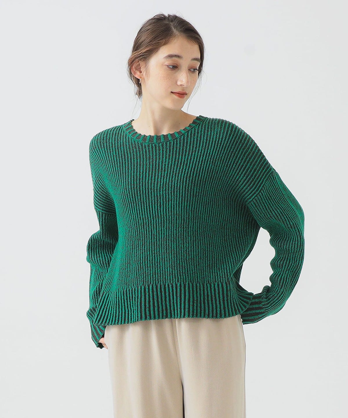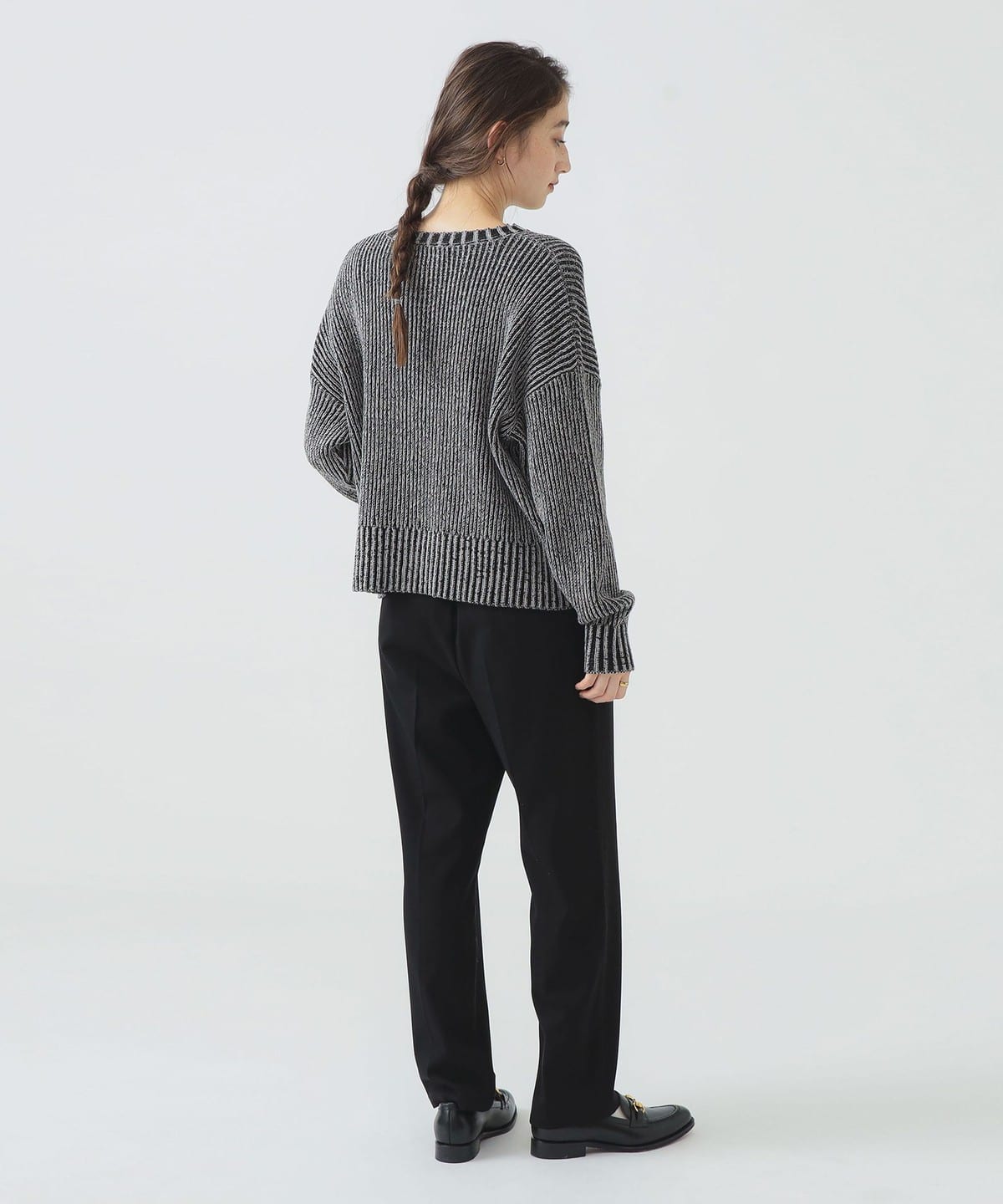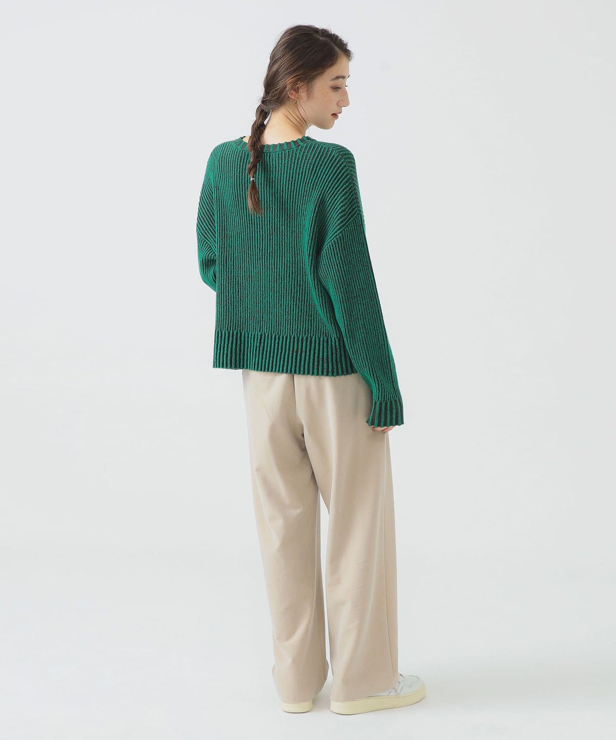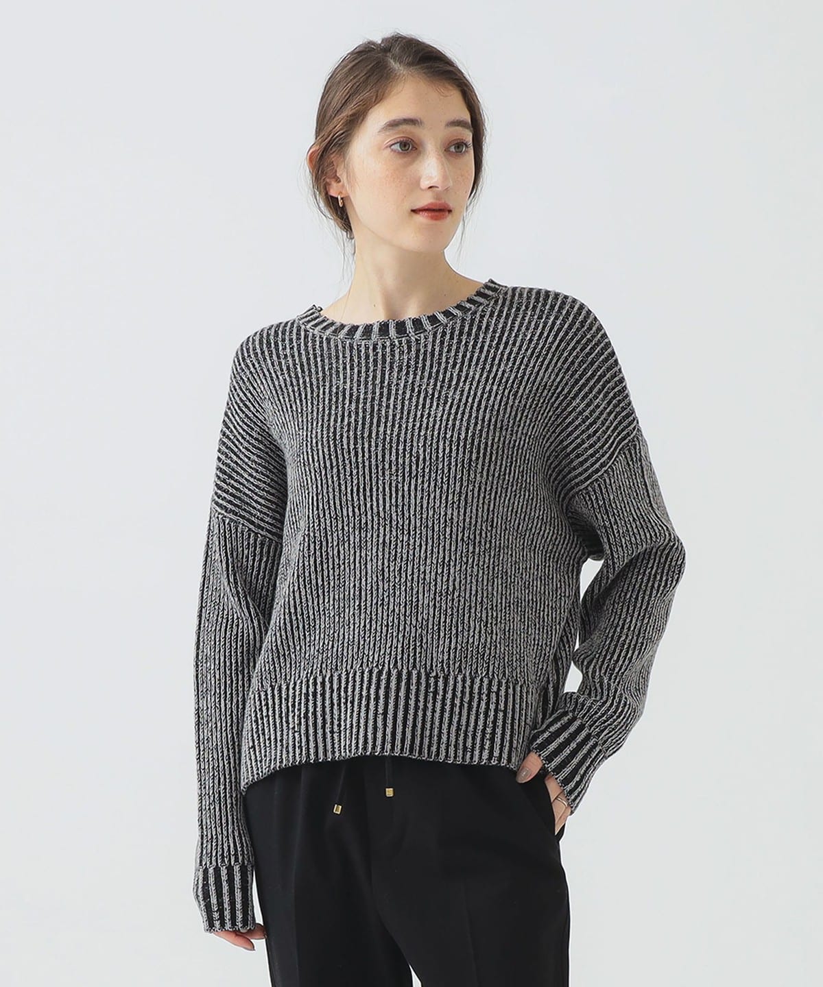 서로 다른 두 가닥의 실을 섞어 짠 멜란지 니트로, 은은한 색감과 깊이감 있는 질감을 느낄 수 있습니다.