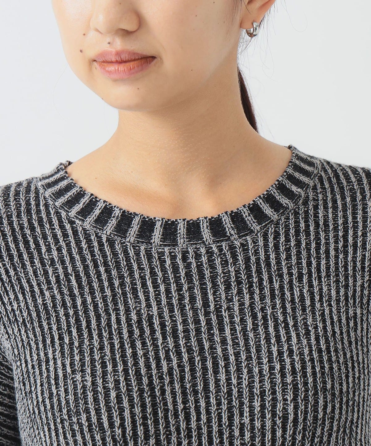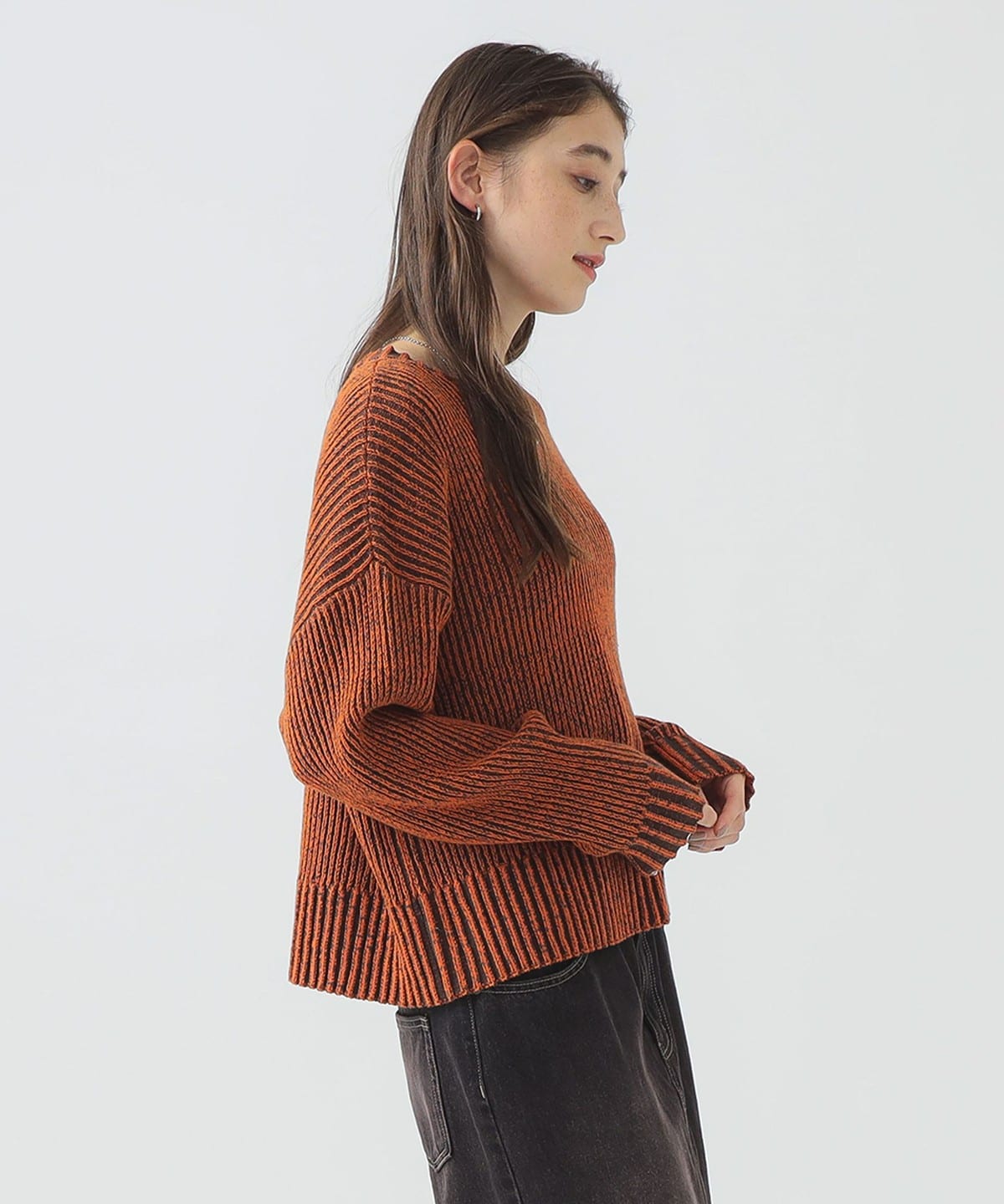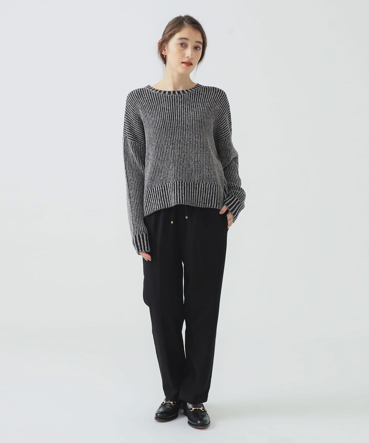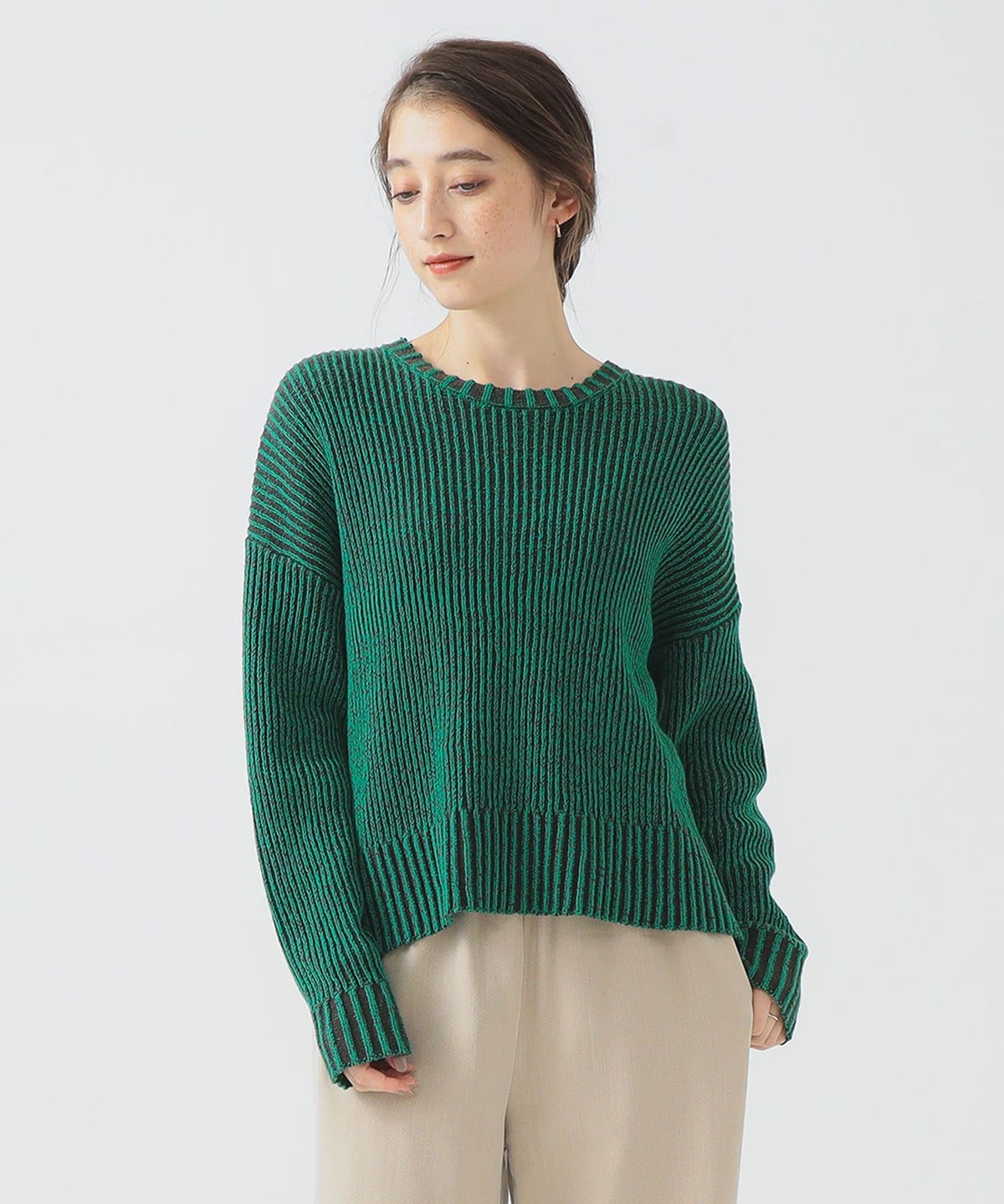 서로 다른 두 가닥의 실을 섞어 짠 멜란지 니트로, 은은한 색감과 깊이감 있는 질감을 느낄 수 있습니다.