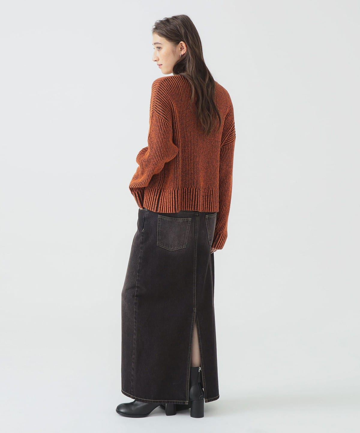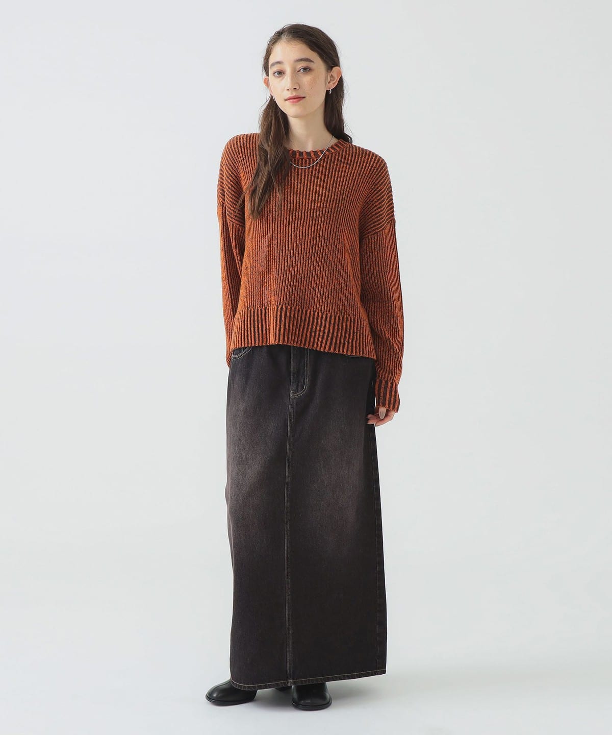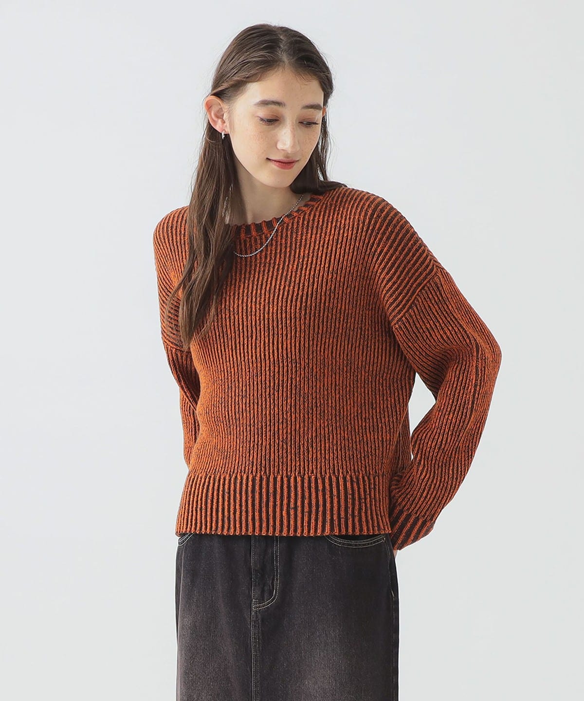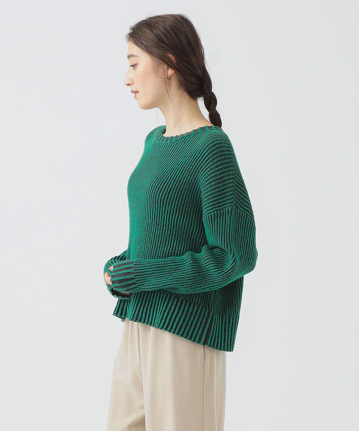 서로 다른 두 가닥의 실을 섞어 짠 멜란지 니트로, 은은한 색감과 깊이감 있는 질감을 느낄 수 있습니다.
