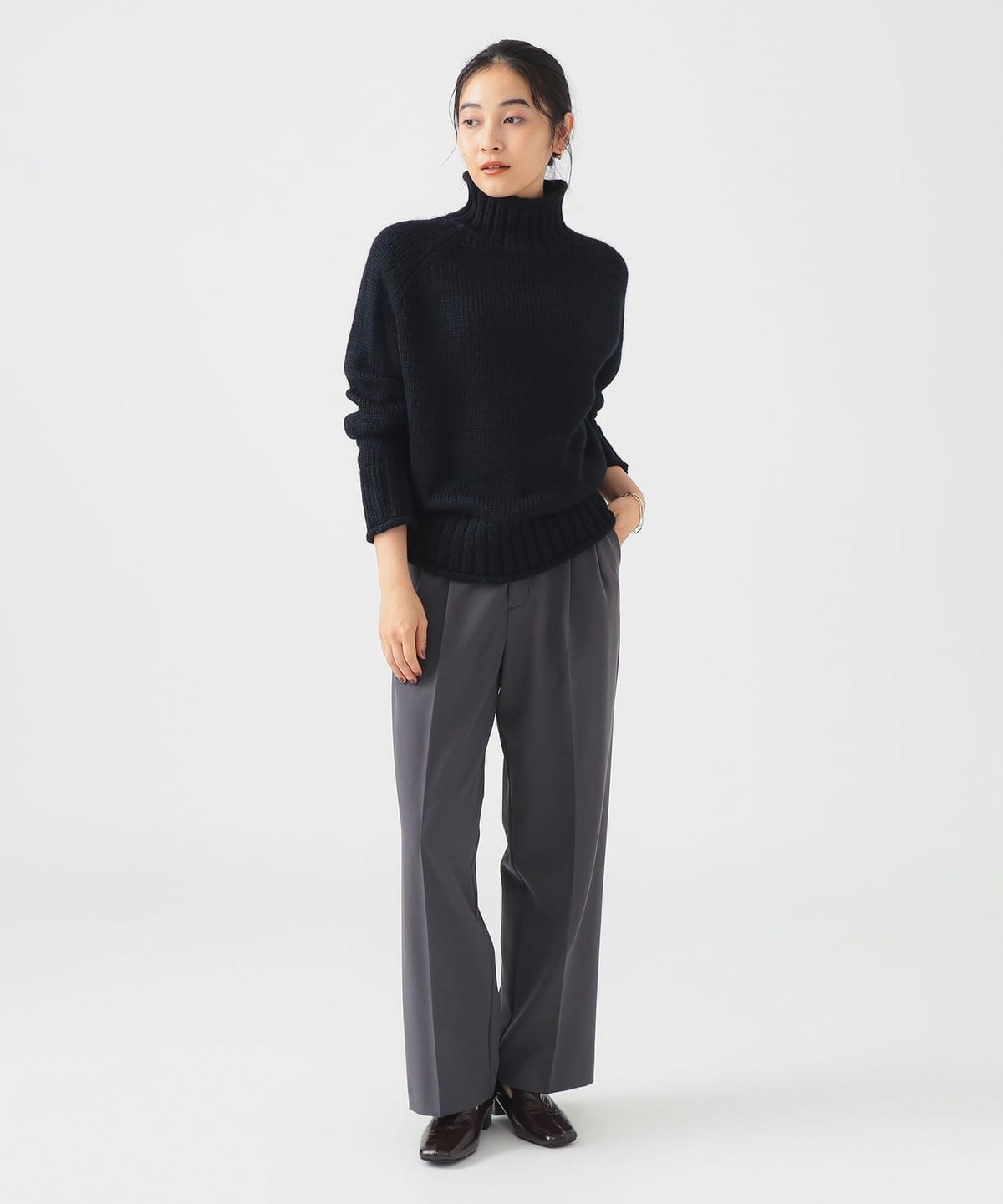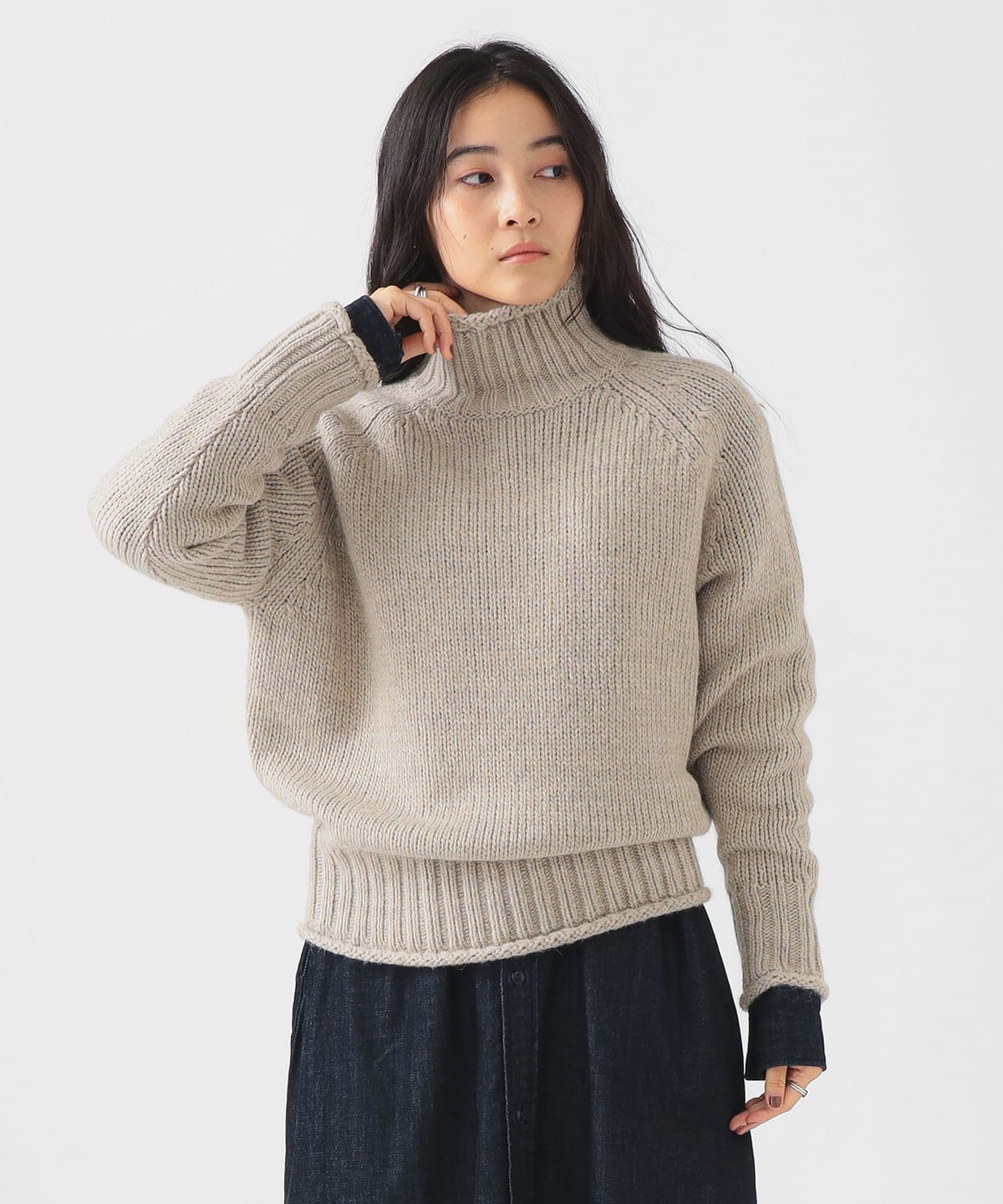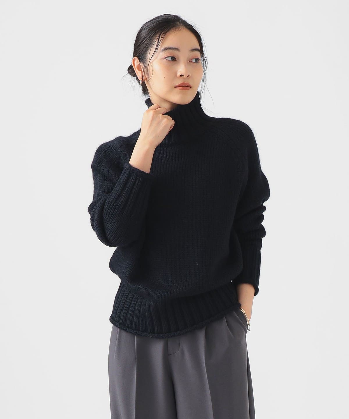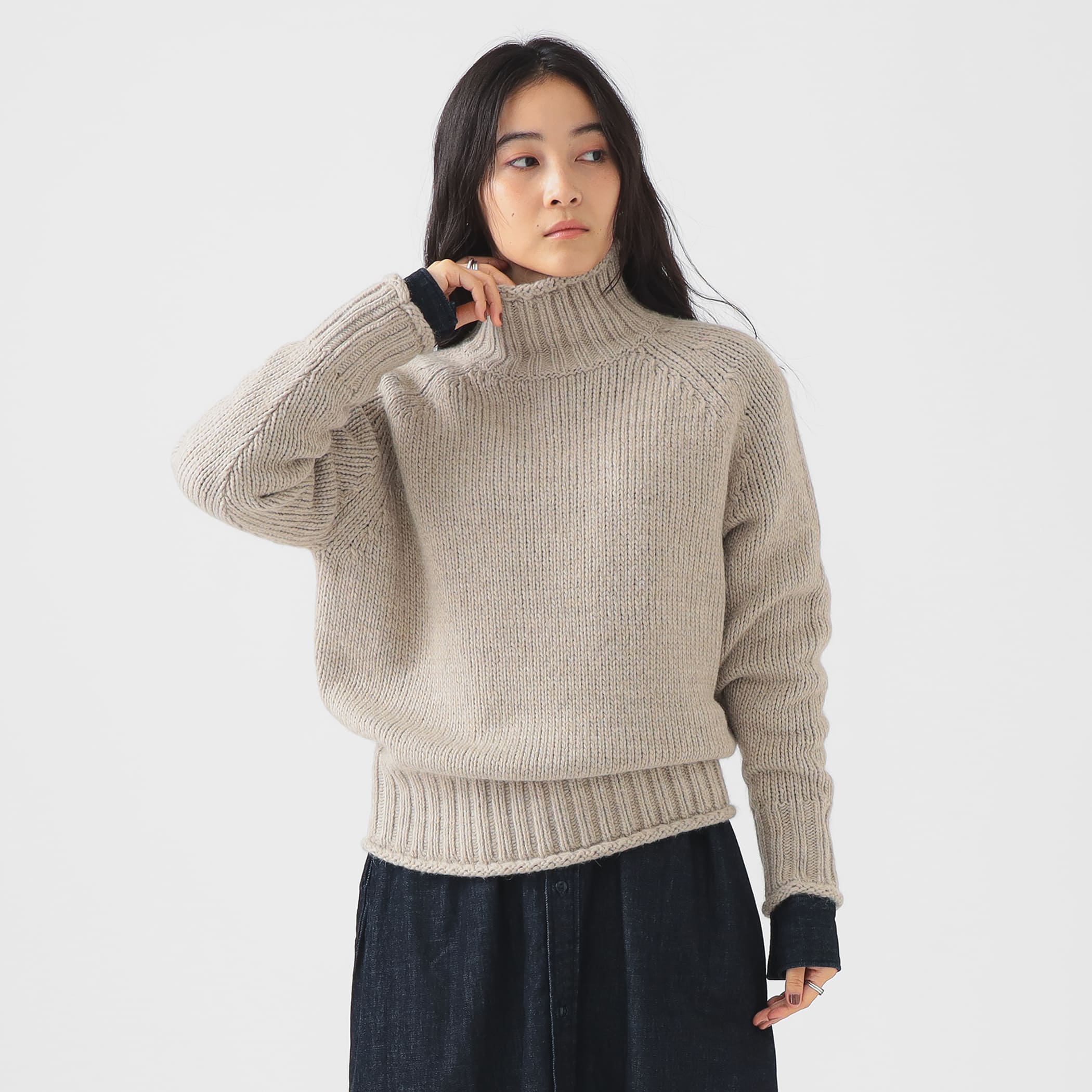 넥과 소매 끝을 살짝 롤업한 듯한 디테일이 포인트인 하이넥 니트입니다. 체형을 드러내지 않는 여유로운 실루엣으로 편안하게 착용할 수 있습니다.