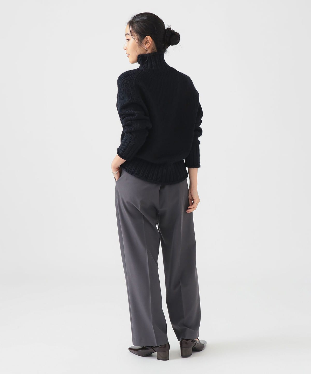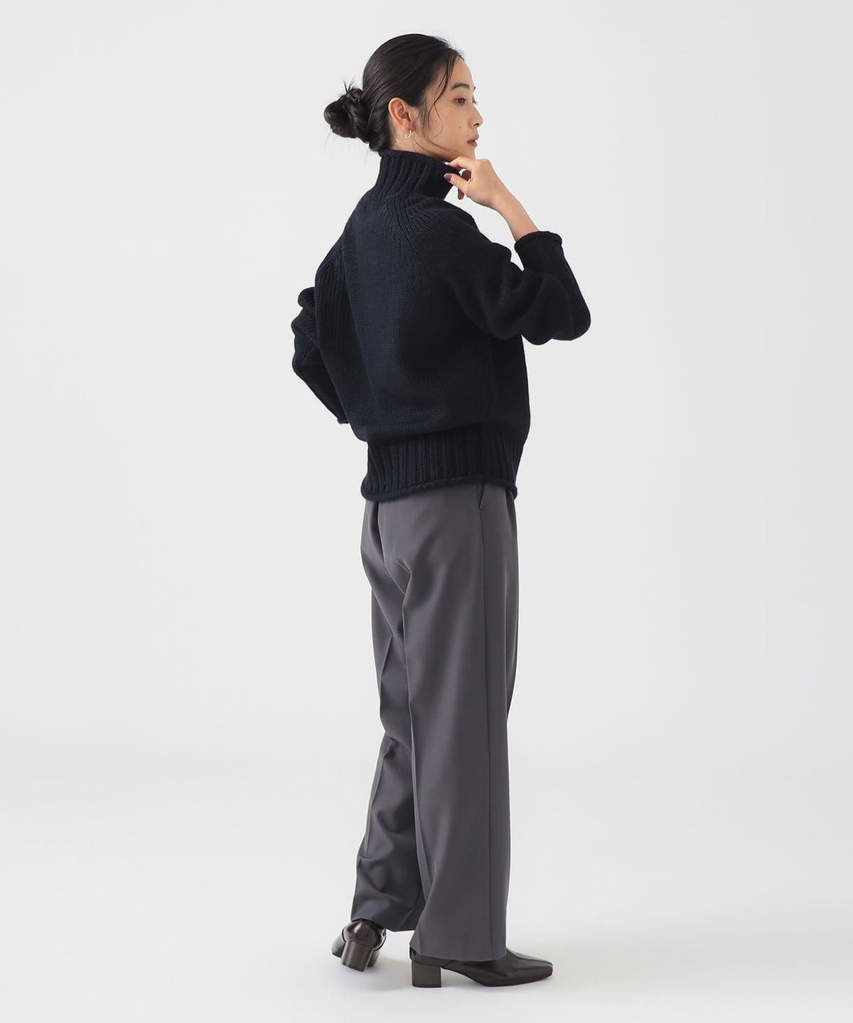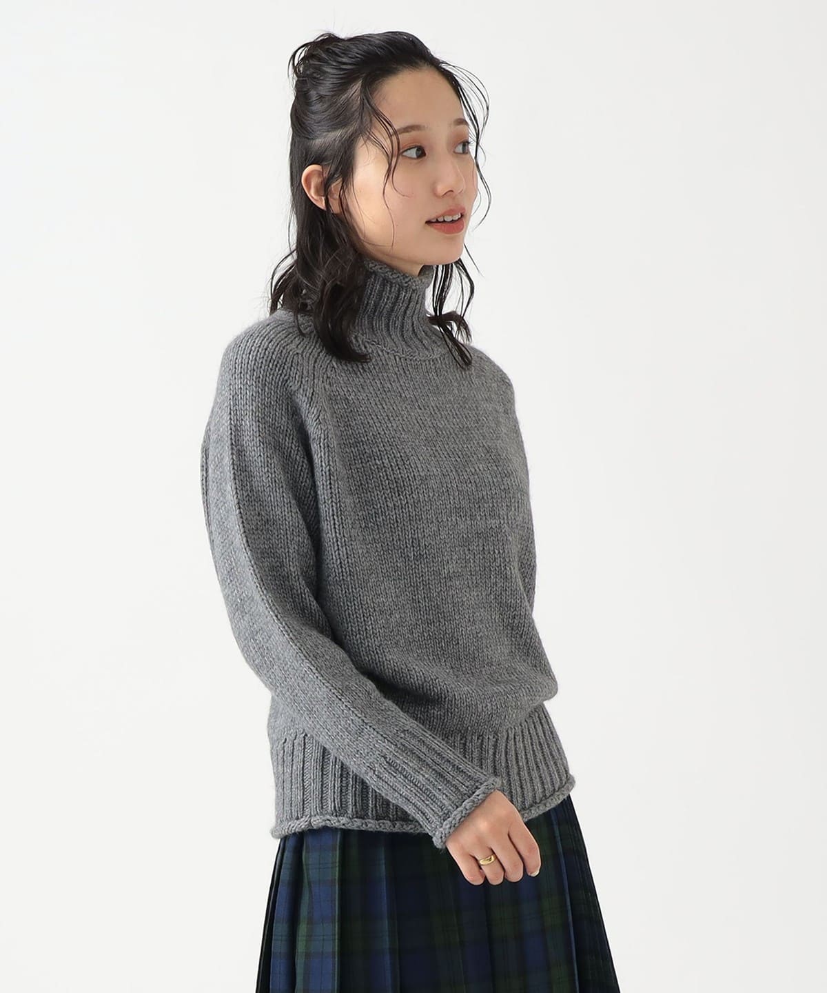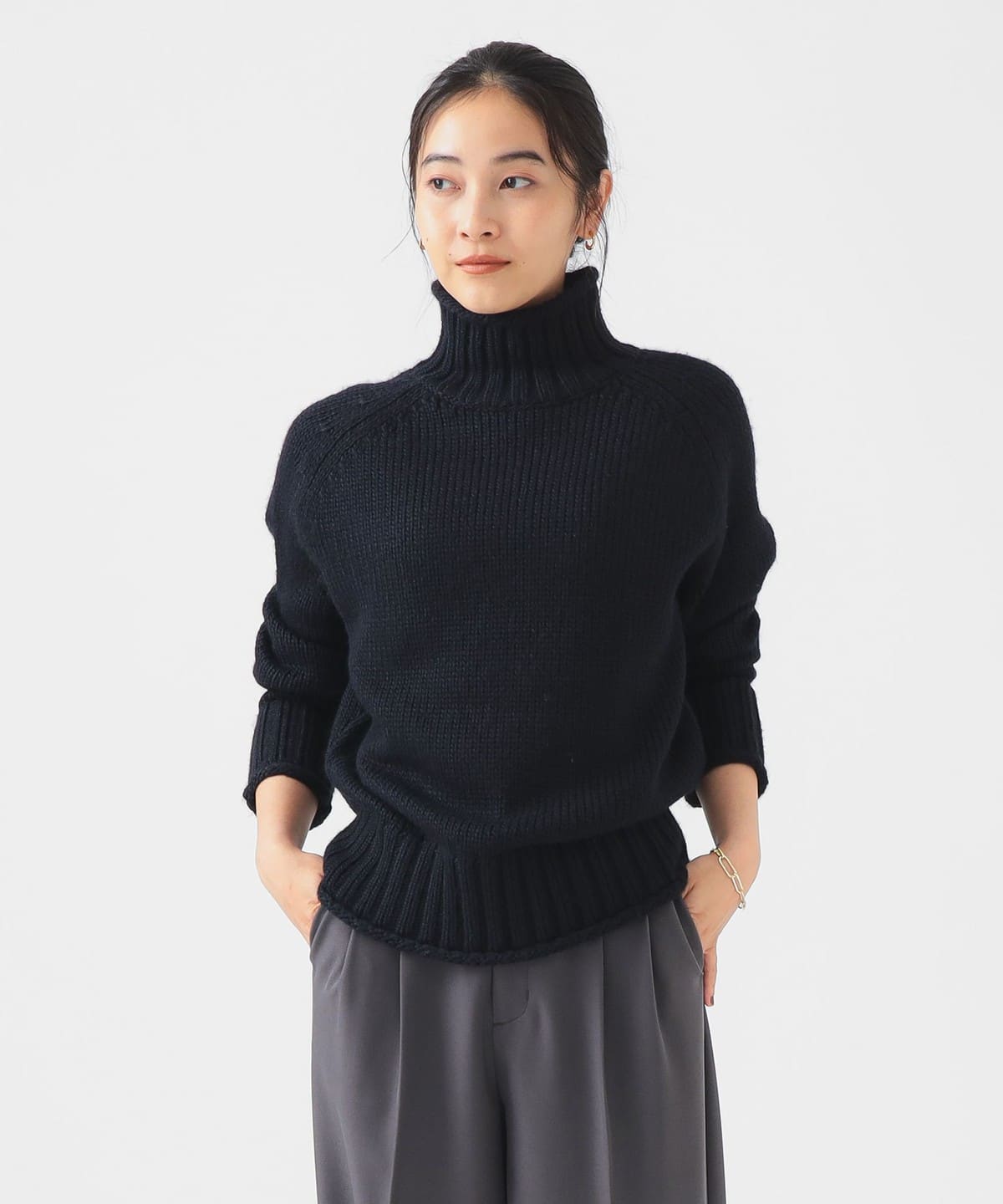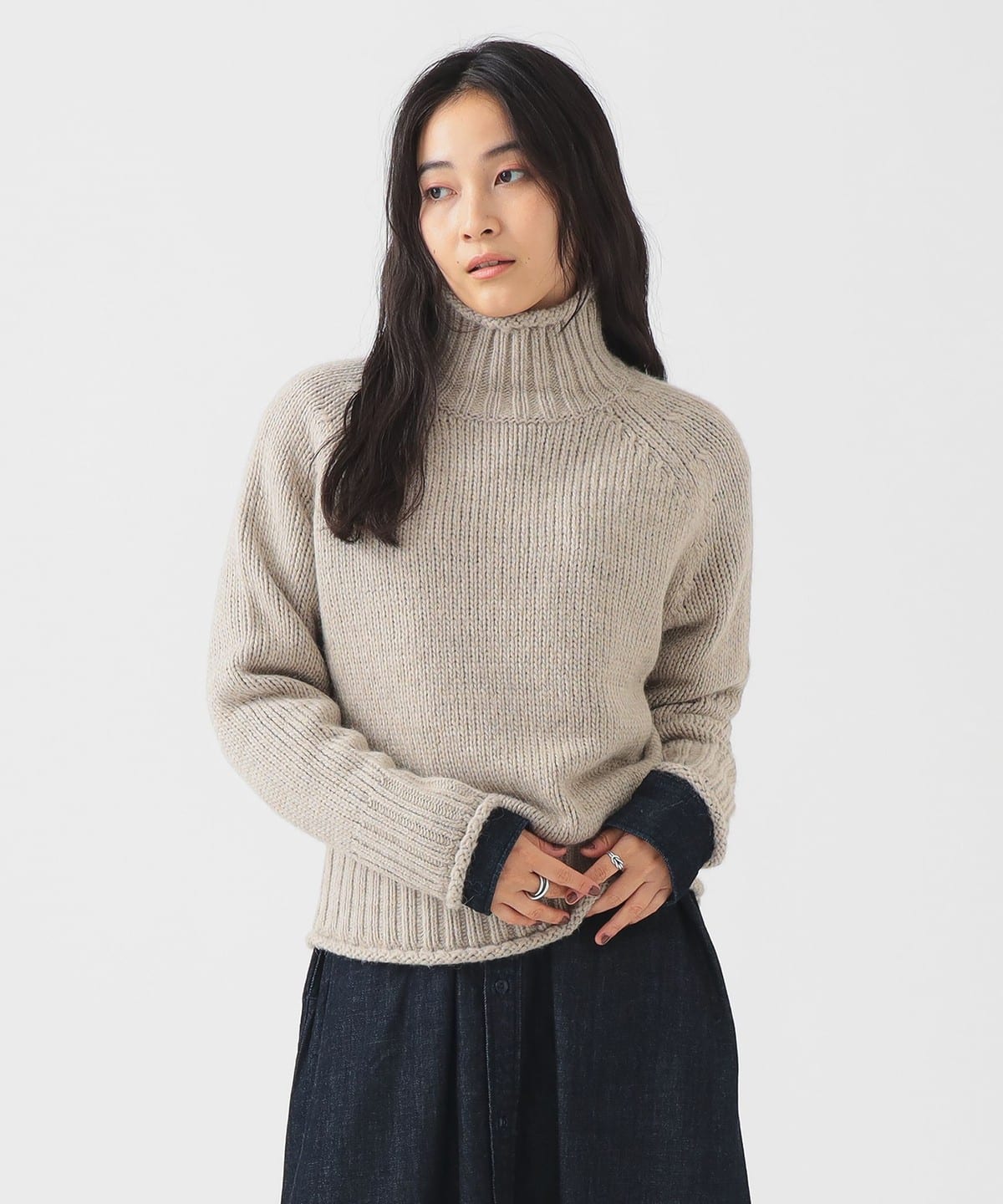 넥과 소매 끝을 살짝 롤업한 듯한 디테일이 포인트인 하이넥 니트입니다. 체형을 드러내지 않는 여유로운 실루엣으로 편안하게 착용할 수 있습니다.