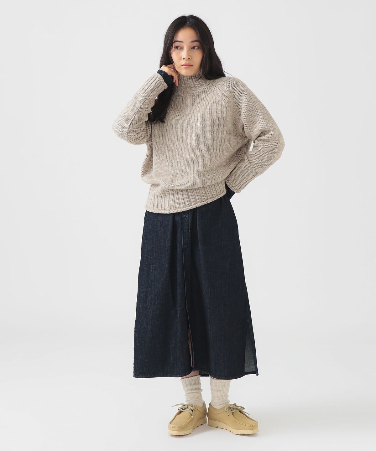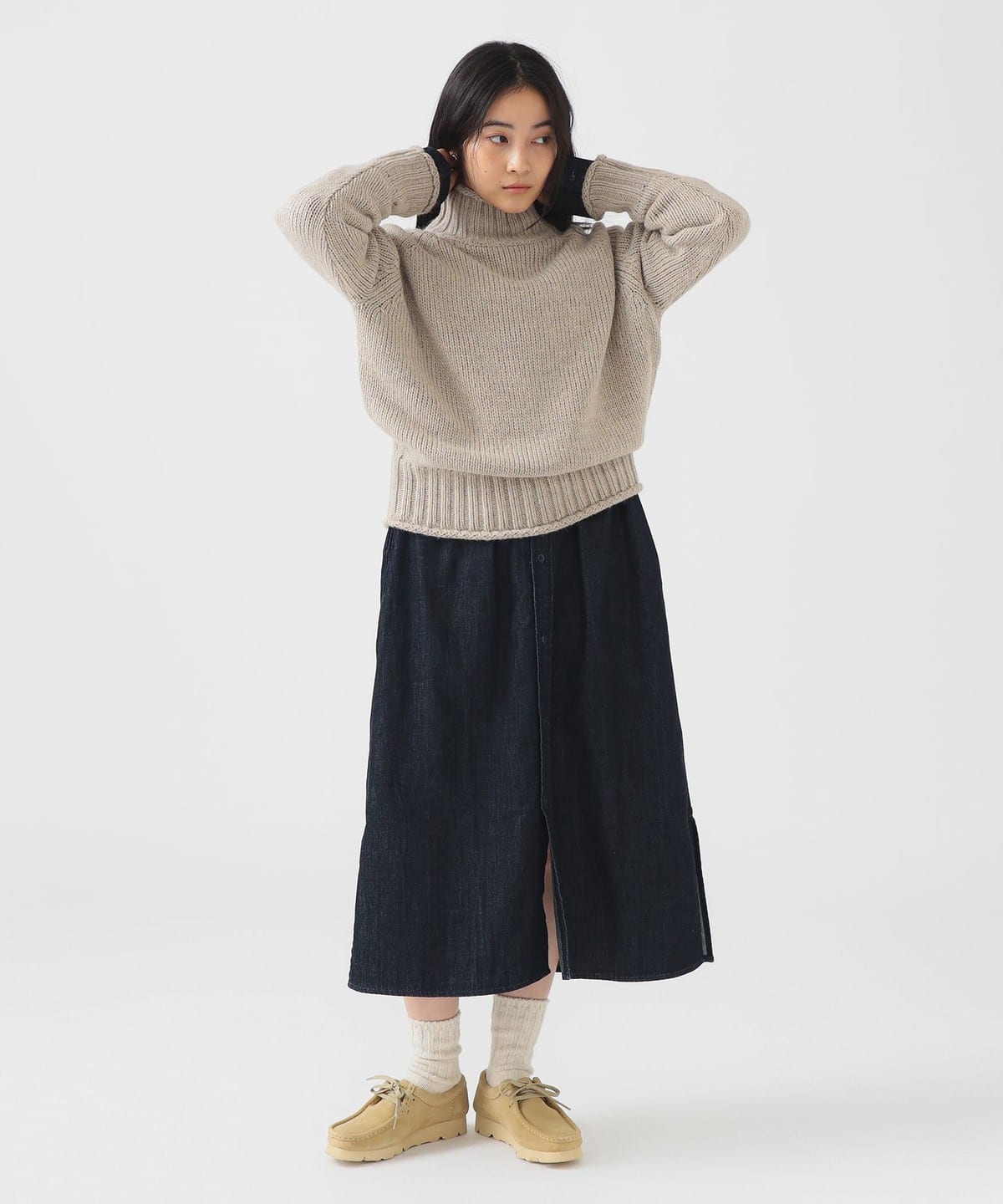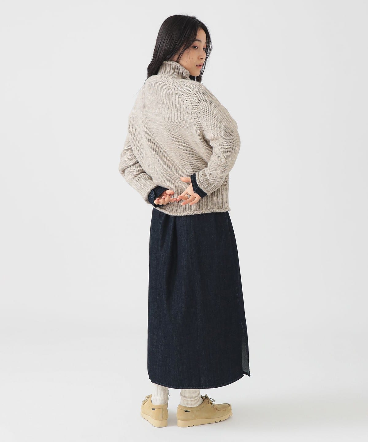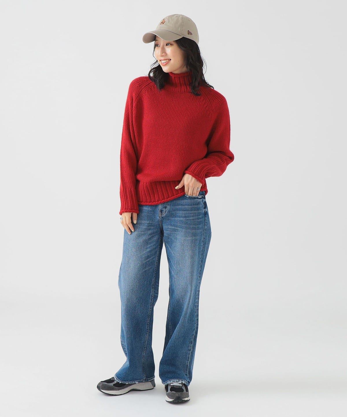 넥과 소매 끝을 살짝 롤업한 듯한 디테일이 포인트인 하이넥 니트입니다. 체형을 드러내지 않는 여유로운 실루엣으로 편안하게 착용할 수 있습니다.