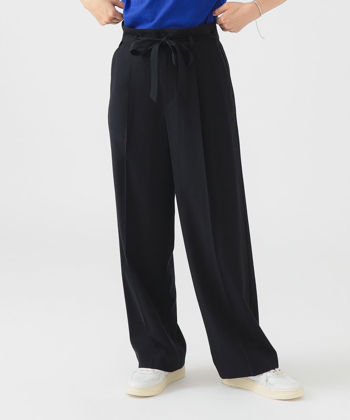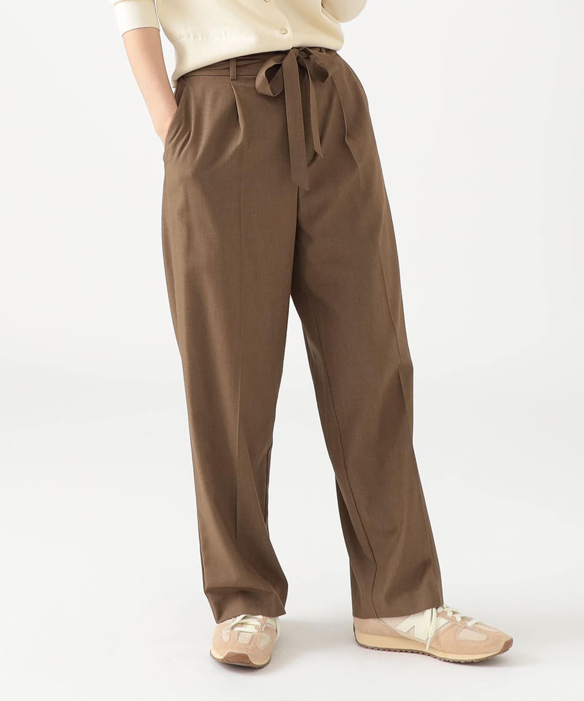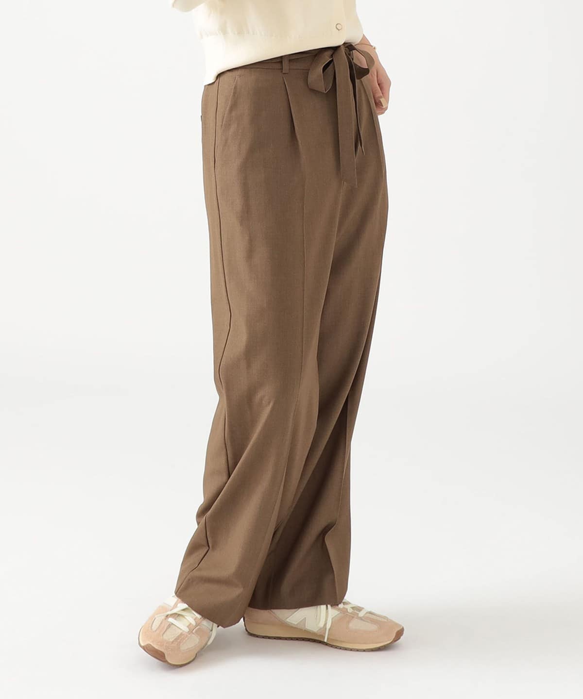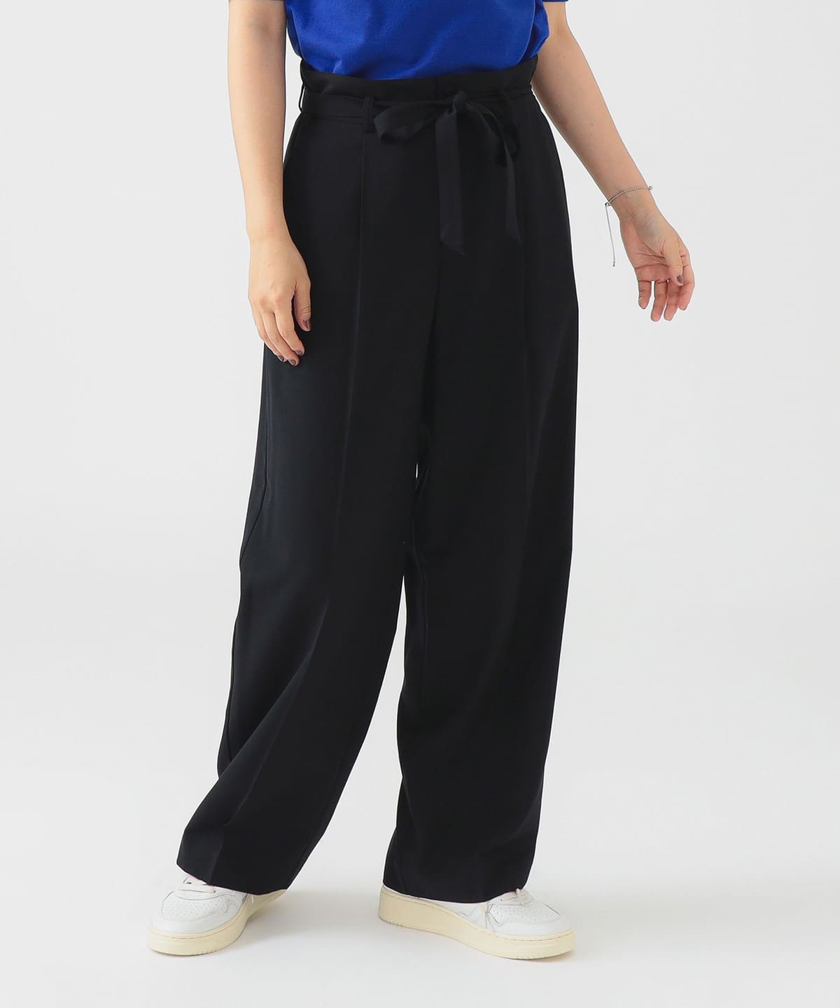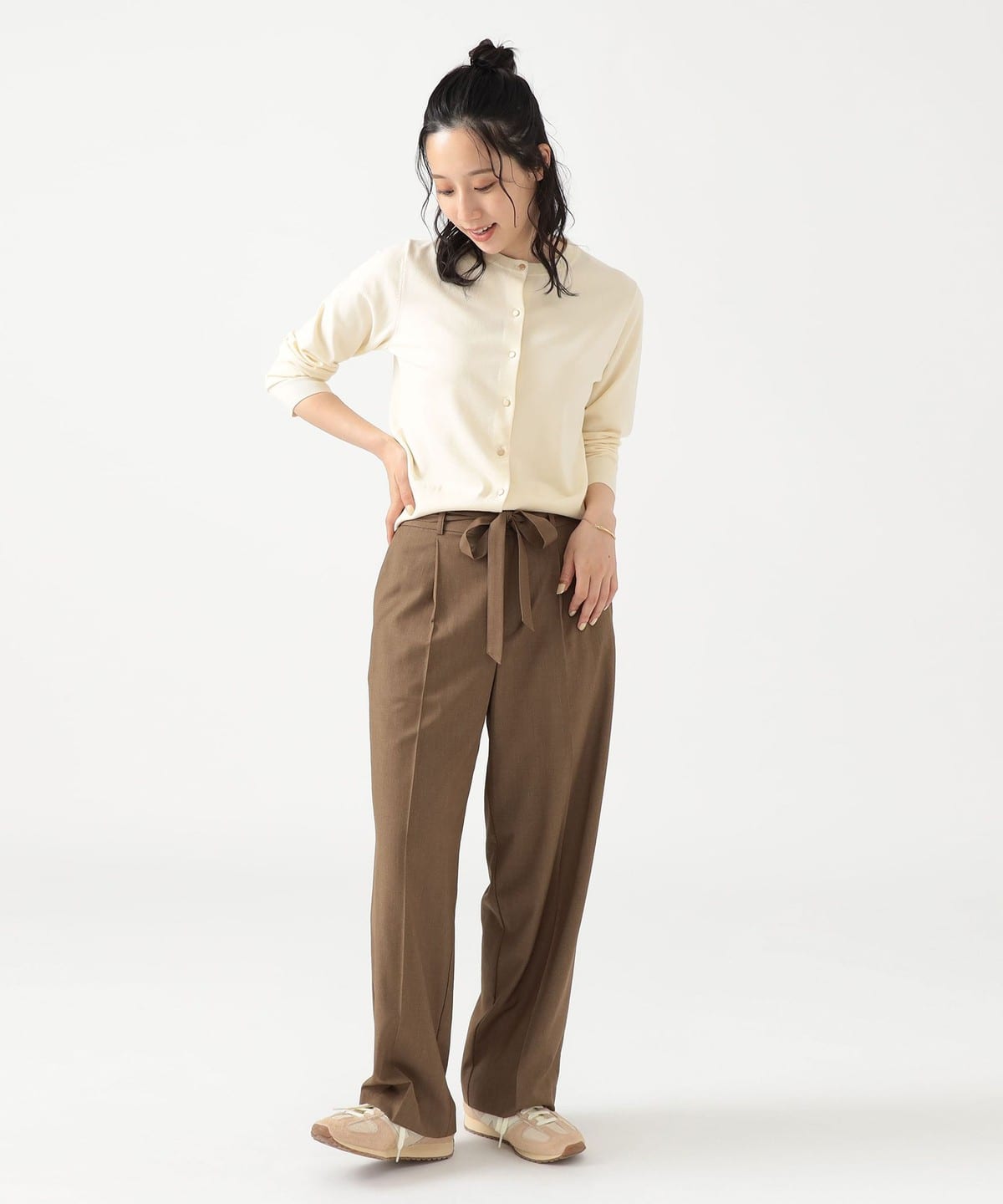 적당히 와이드한 실루엣의 팬츠. 허리 리본은 탈부착이 가능합니다. 살짝 하이웨이스트 라인으로, 몸의 실루엣을 드러내지 않는 여유 있는 핏입니다.