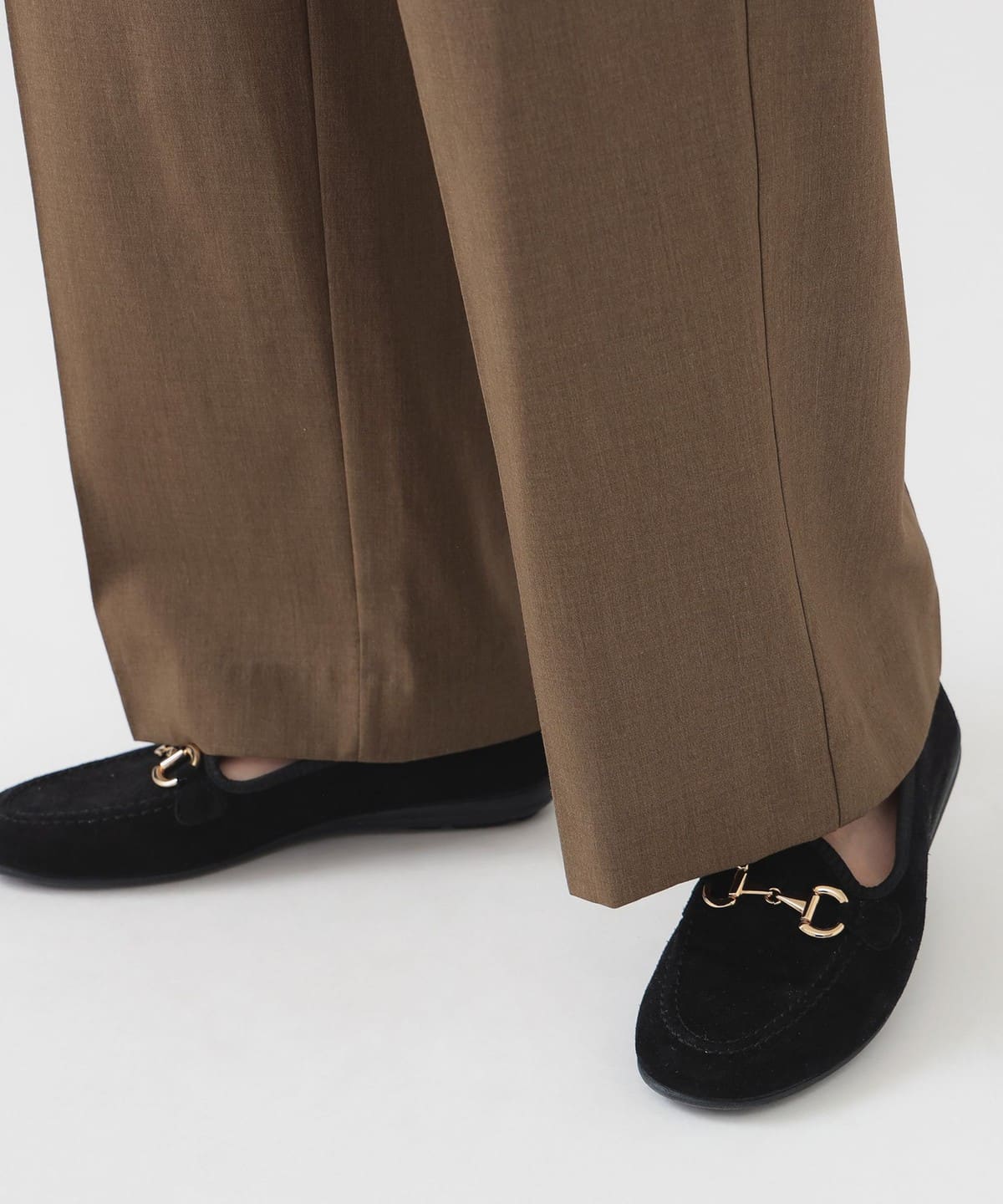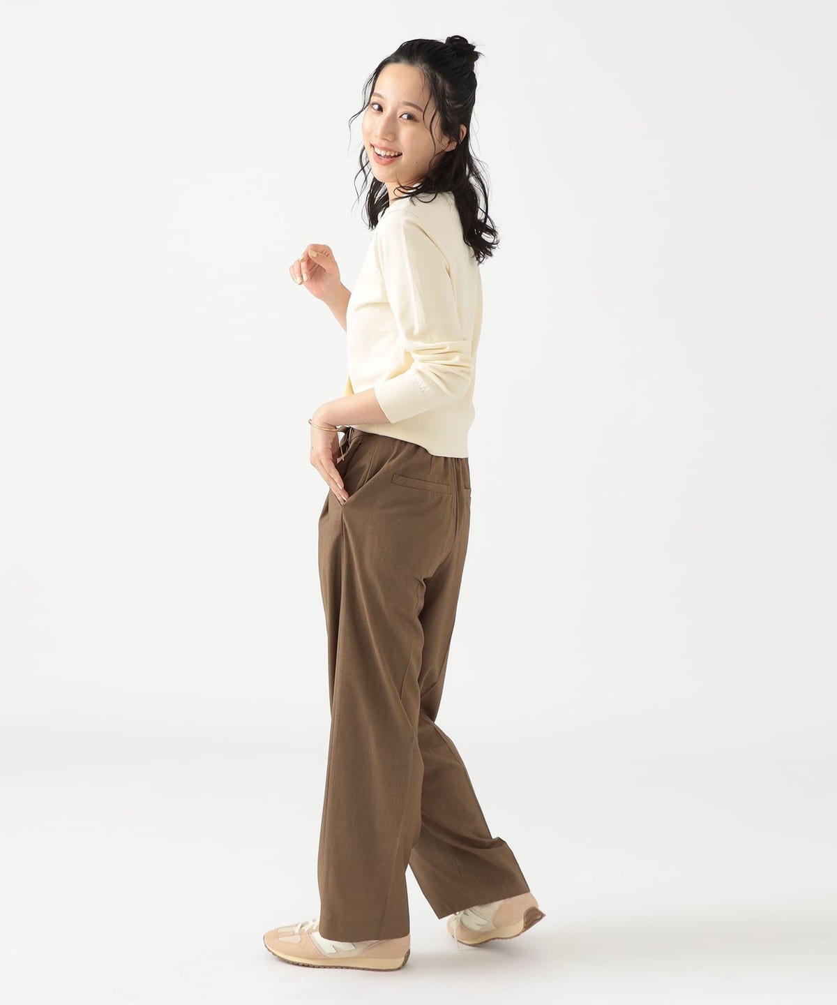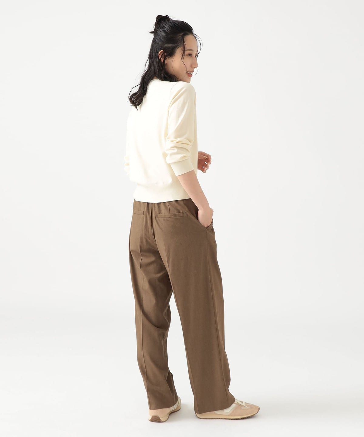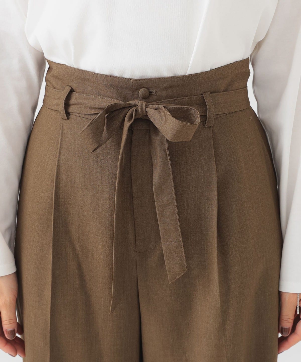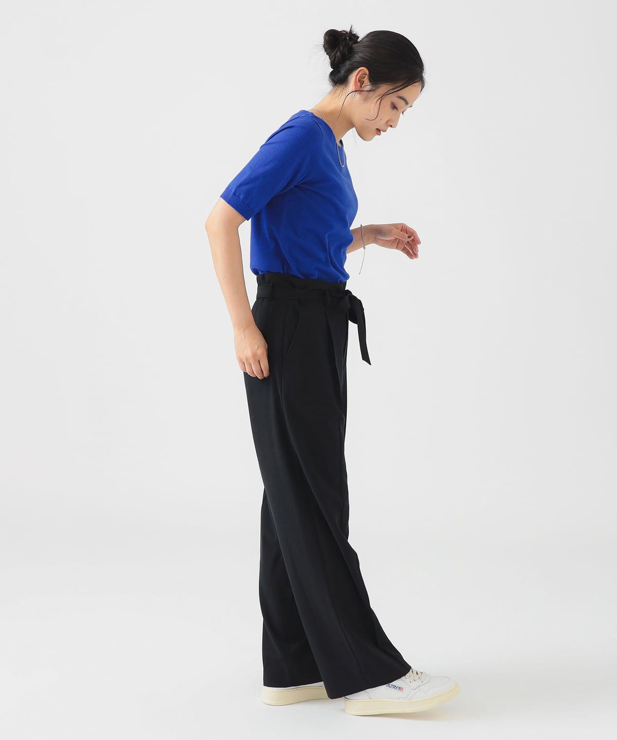 적당히 와이드한 실루엣의 팬츠. 허리 리본은 탈부착이 가능합니다. 살짝 하이웨이스트 라인으로, 몸의 실루엣을 드러내지 않는 여유 있는 핏입니다.