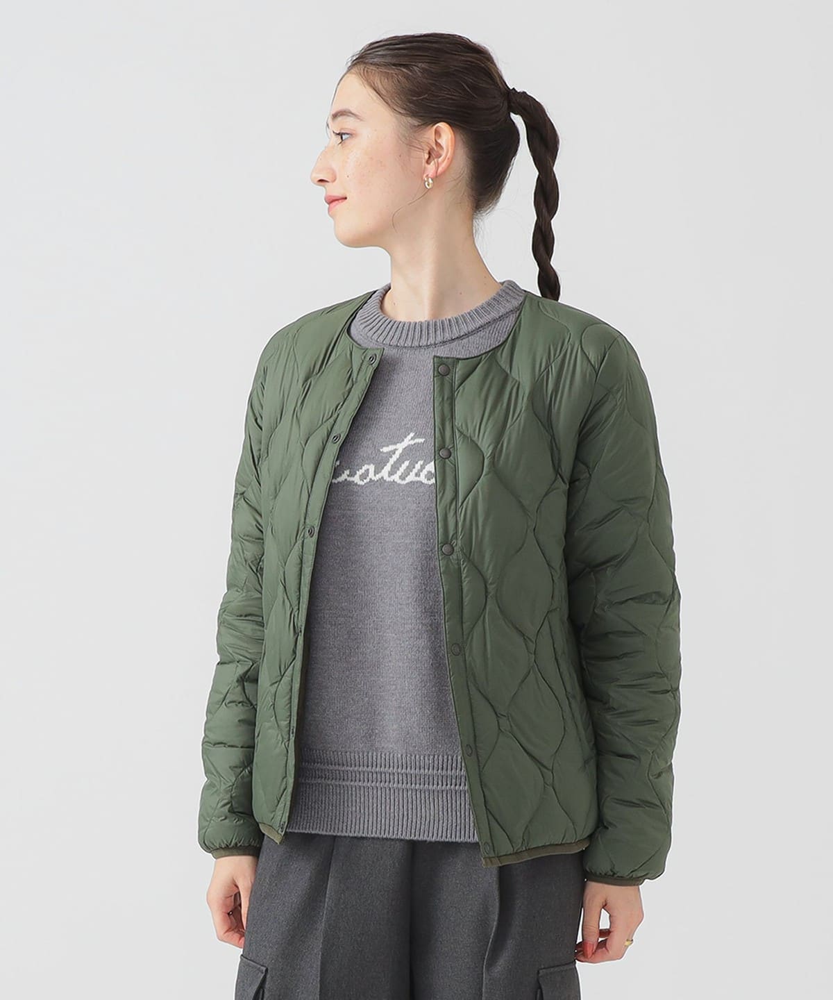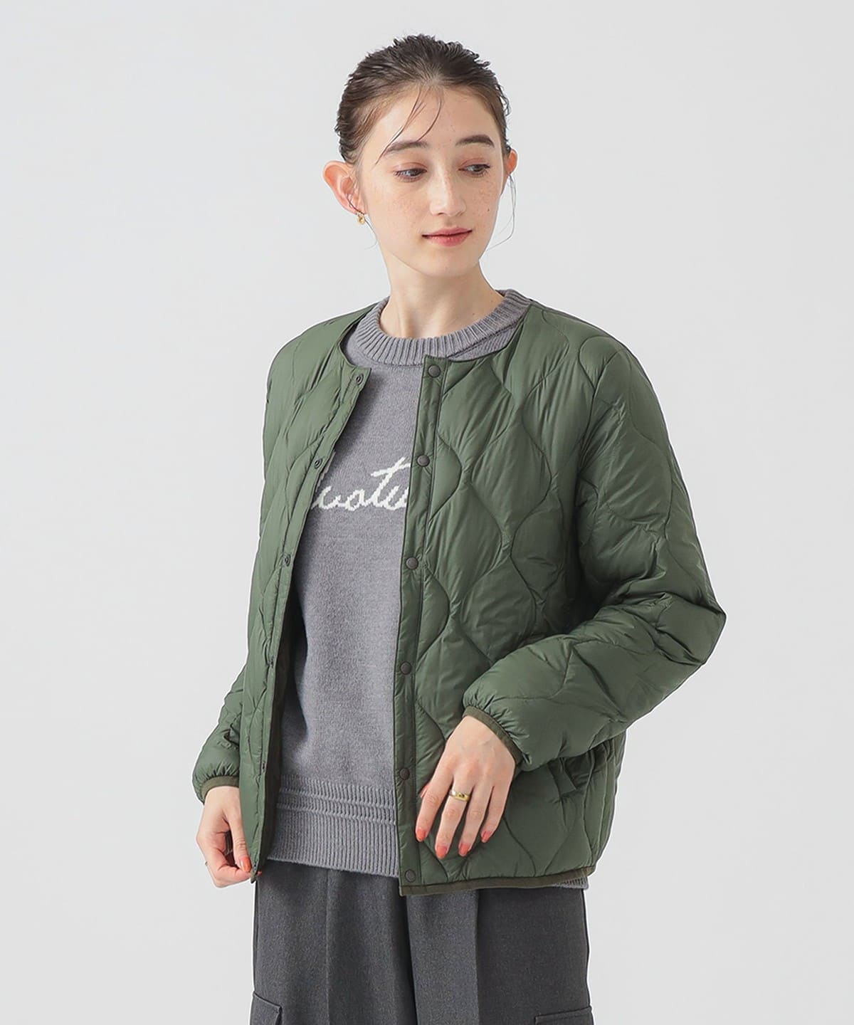앞면은 퀼팅 디자인, 뒷면은 미니멀한 디자인으로 심플한 분위기를 연출할 수 있는 다운 재킷입니다. 주머니에는 손을 따뜻하게 보호해주는 핸드워머 기능이 있습니다.