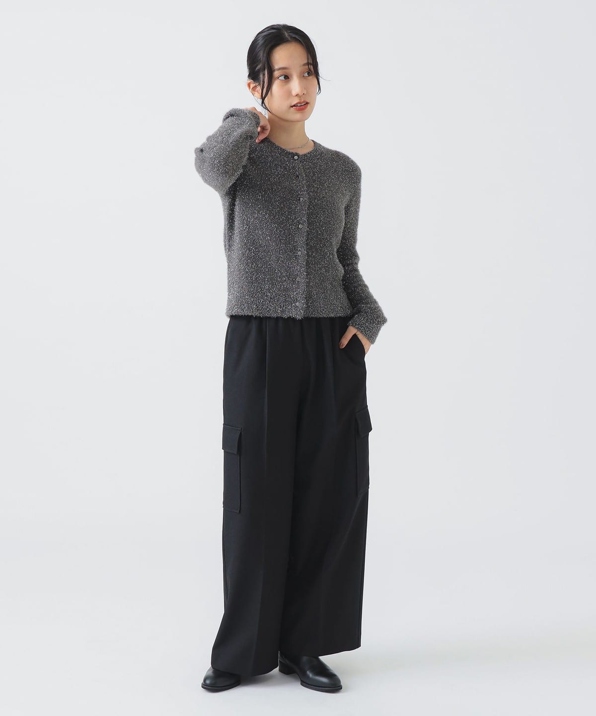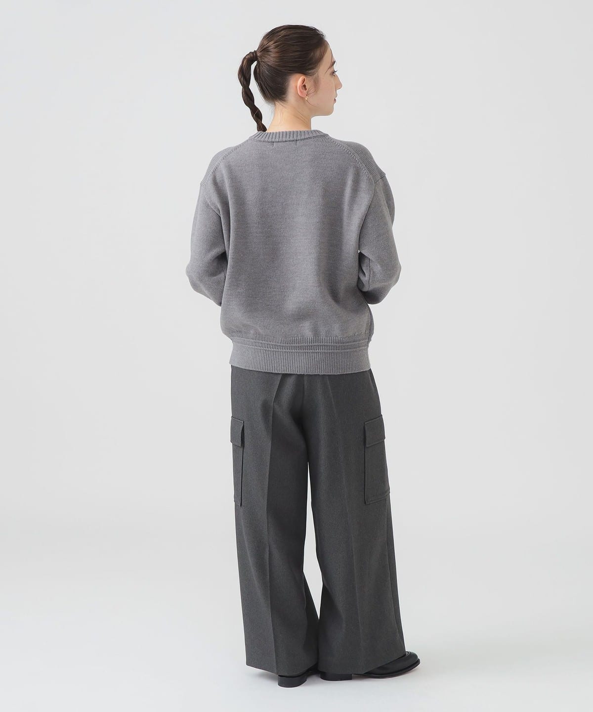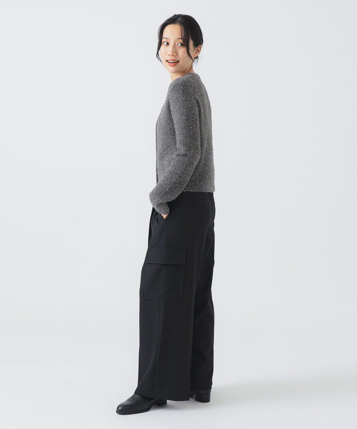 와이드한 실루엣의 카고 팬츠. 허리 고무 밸트로 편안한 착용감입니다. 울처럼 보이는 폴리에스테르 소재로 가볍고 관리가 쉽습니다.