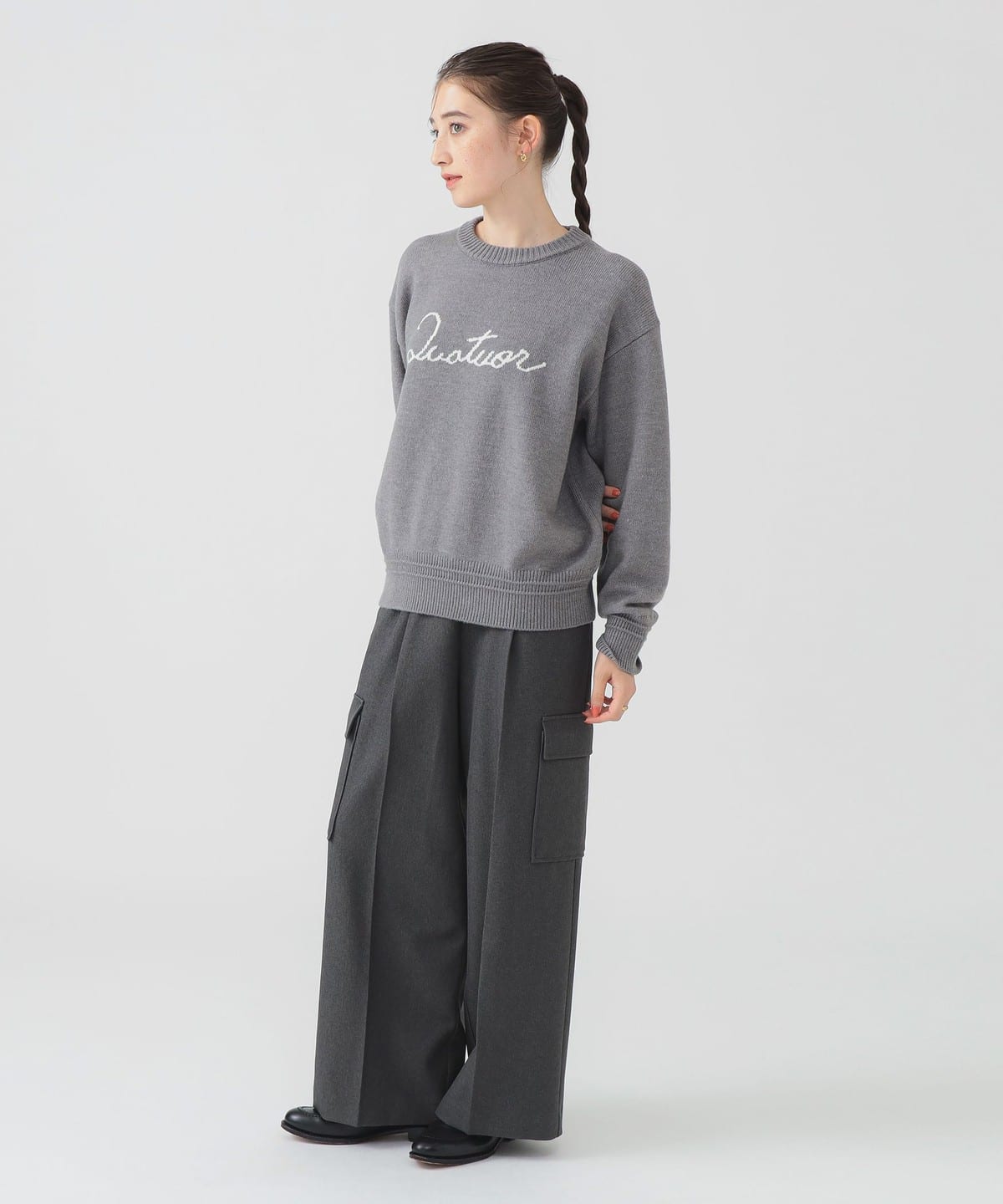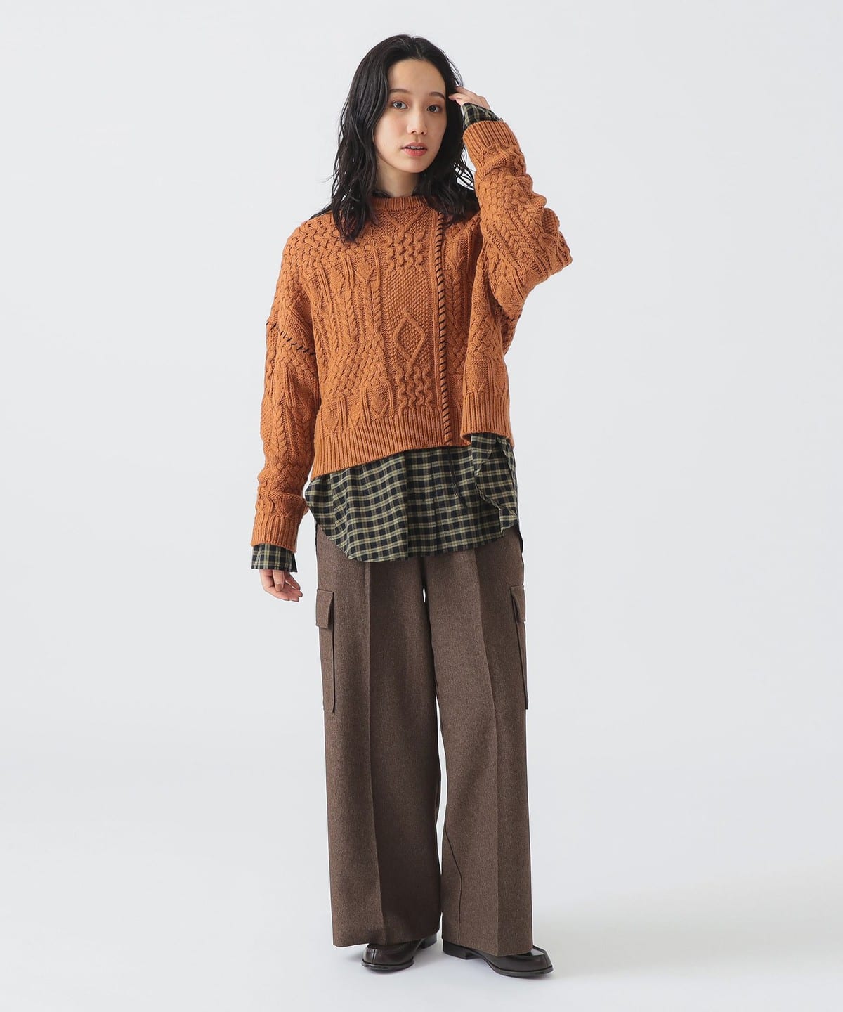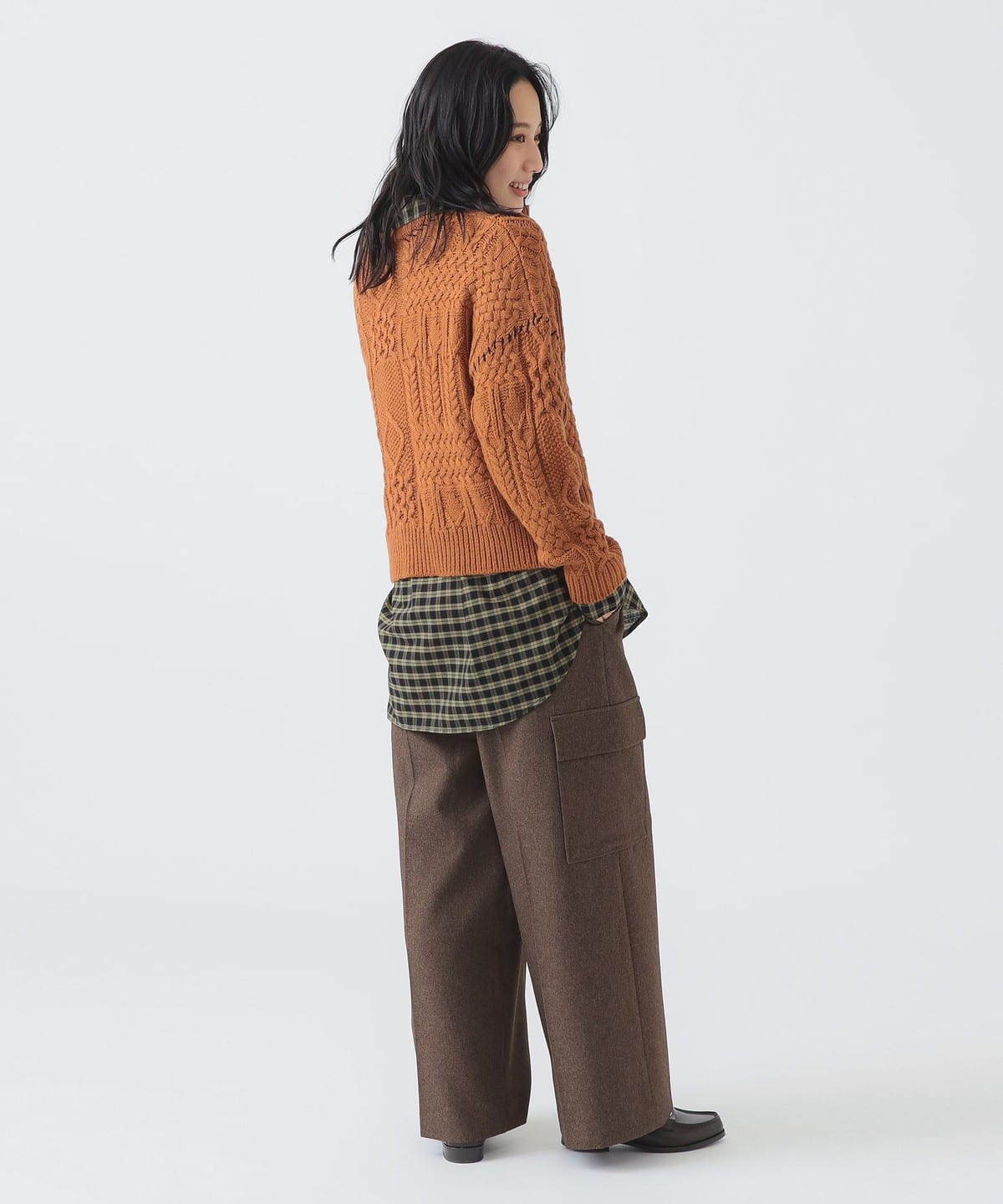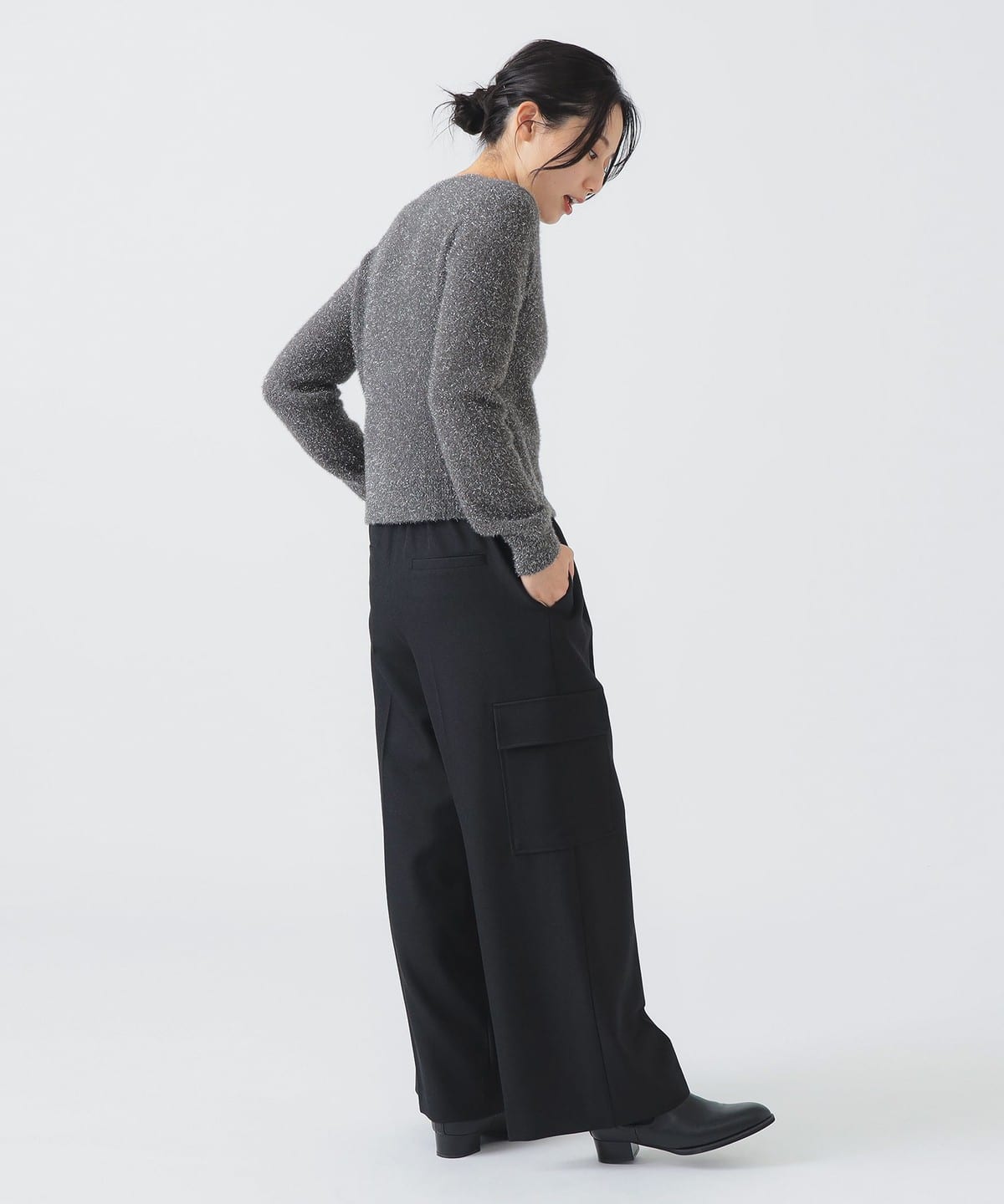 와이드한 실루엣의 카고 팬츠. 허리 고무 밸트로 편안한 착용감입니다. 울처럼 보이는 폴리에스테르 소재로 가볍고 관리가 쉽습니다.