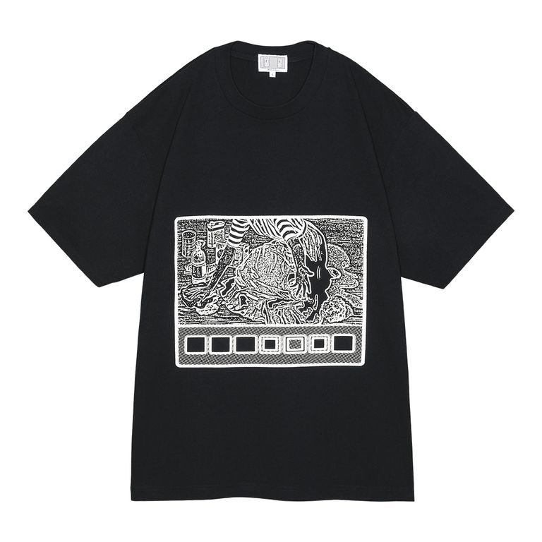 전면에는 그래픽 프린트, 뒷면 어깨에는 “CAV EMPT” 로고 프린트가 더해진 티셔츠입니다. 전반적으로 오버다이 워싱 가공을 더해 빈티지한 분위기를 연출합니다.