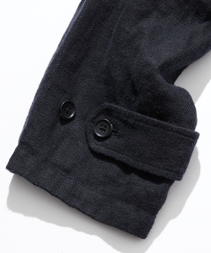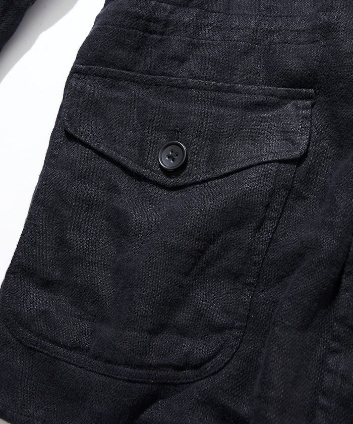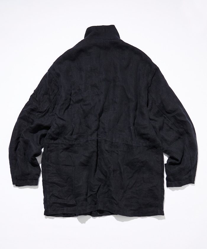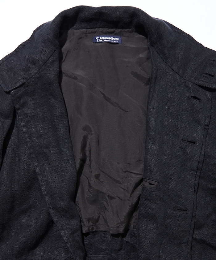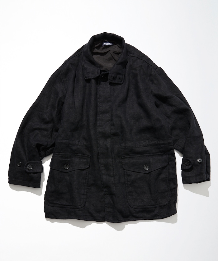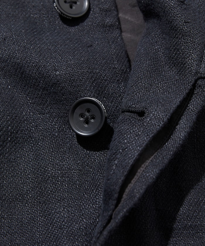 다크 네이비 컬러의 린넨 코트