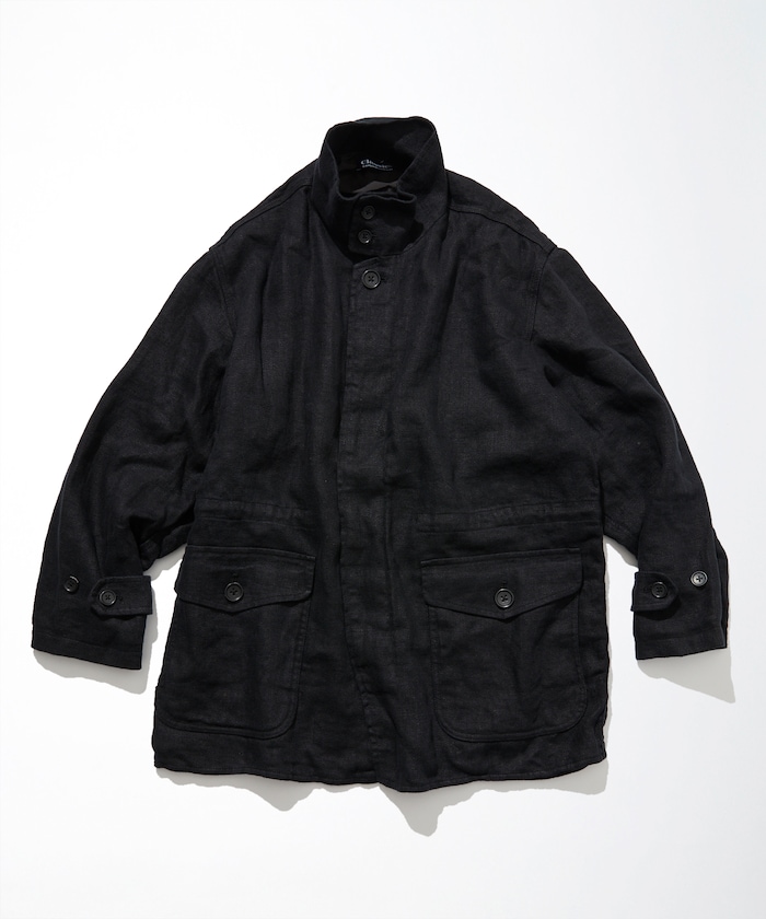카우람 린넨 스탠드 칼라 하프 코트