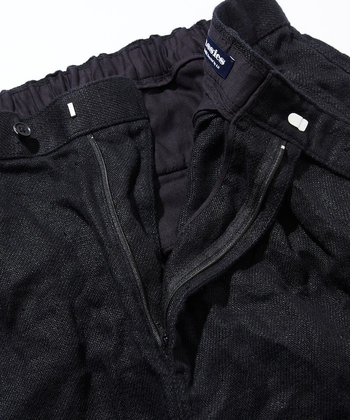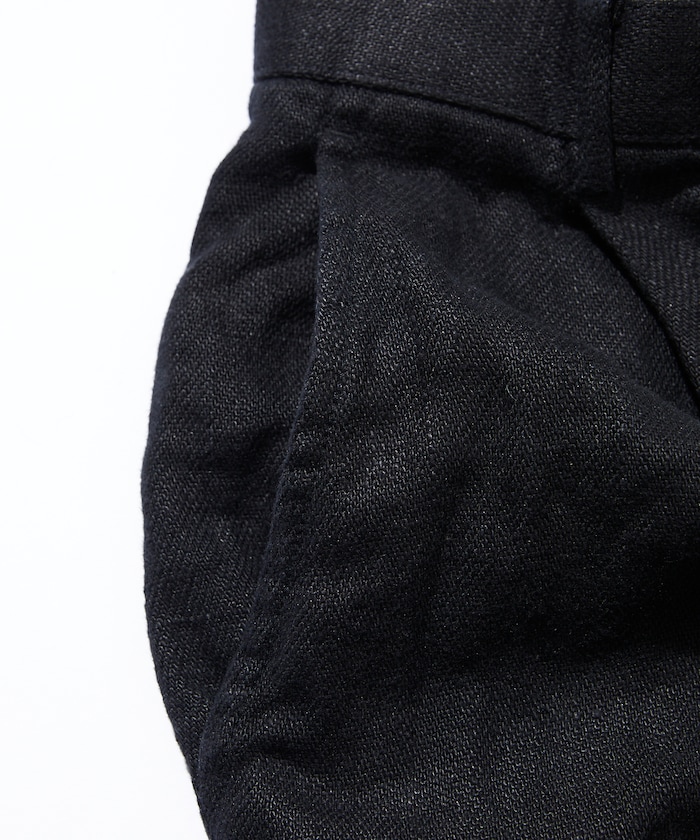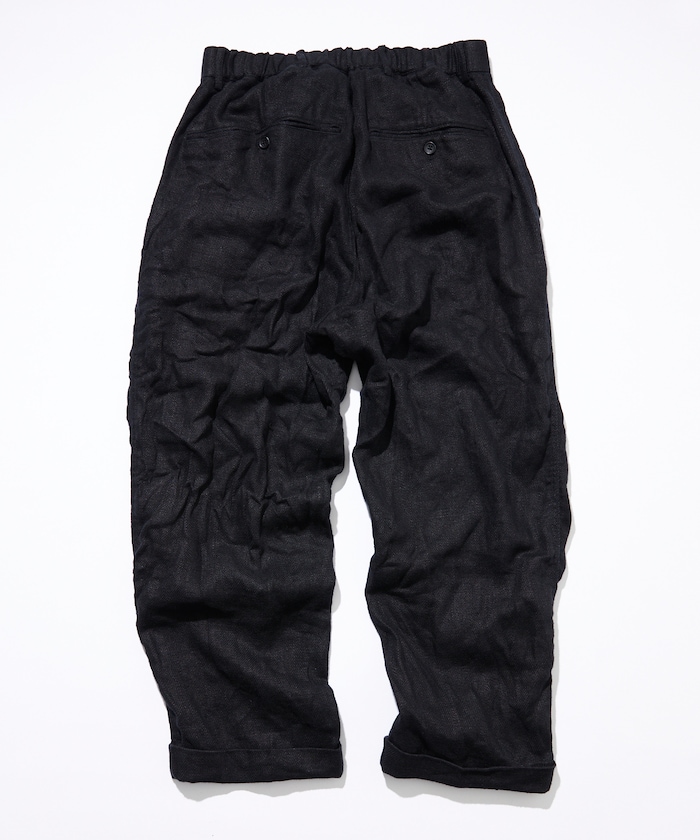 특수한 텀블러 가공을 하는 것으로, 주름감과 부드러운 소재의 린넨 바지. 허리 뒷면에 개더가 들어가 입기 쉽습니다. 버튼의 가장자리에는 카우람의 로고가 있습니다.