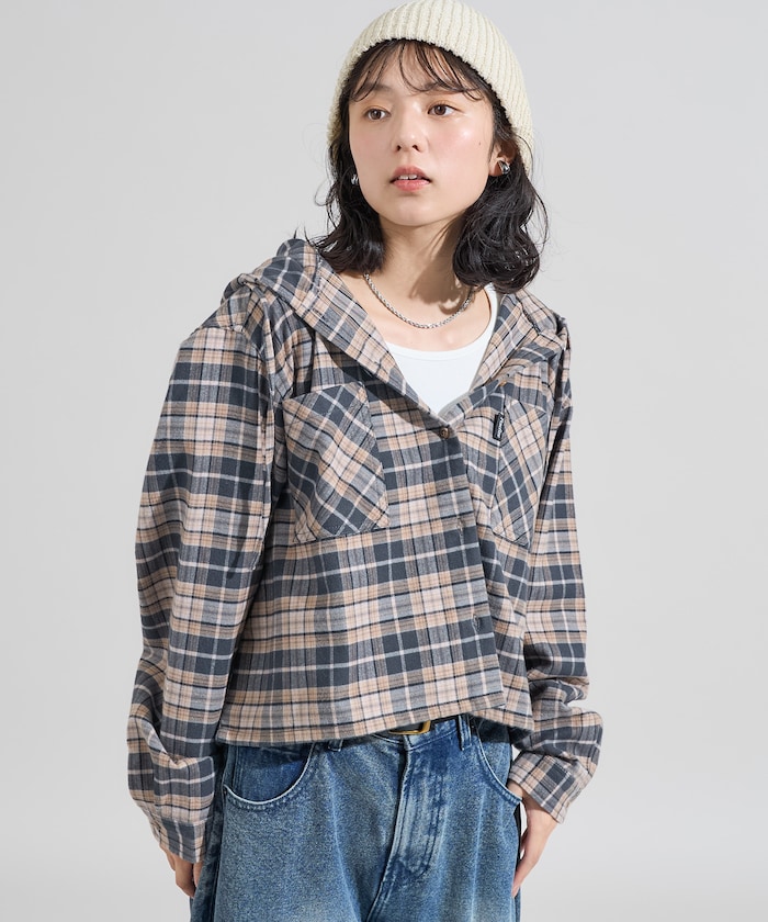 기본 플란넬 셔츠에 후드 디자인을 더한 디자인의 셔츠