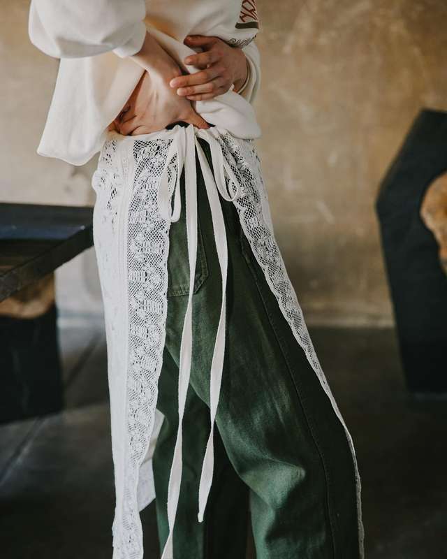 바깥쪽 가장자리에는 앤티크 레이스 를 사용. 일반적인 기계와는 다른 특별한 방식으로 제작된 귀한 레이스입니다.