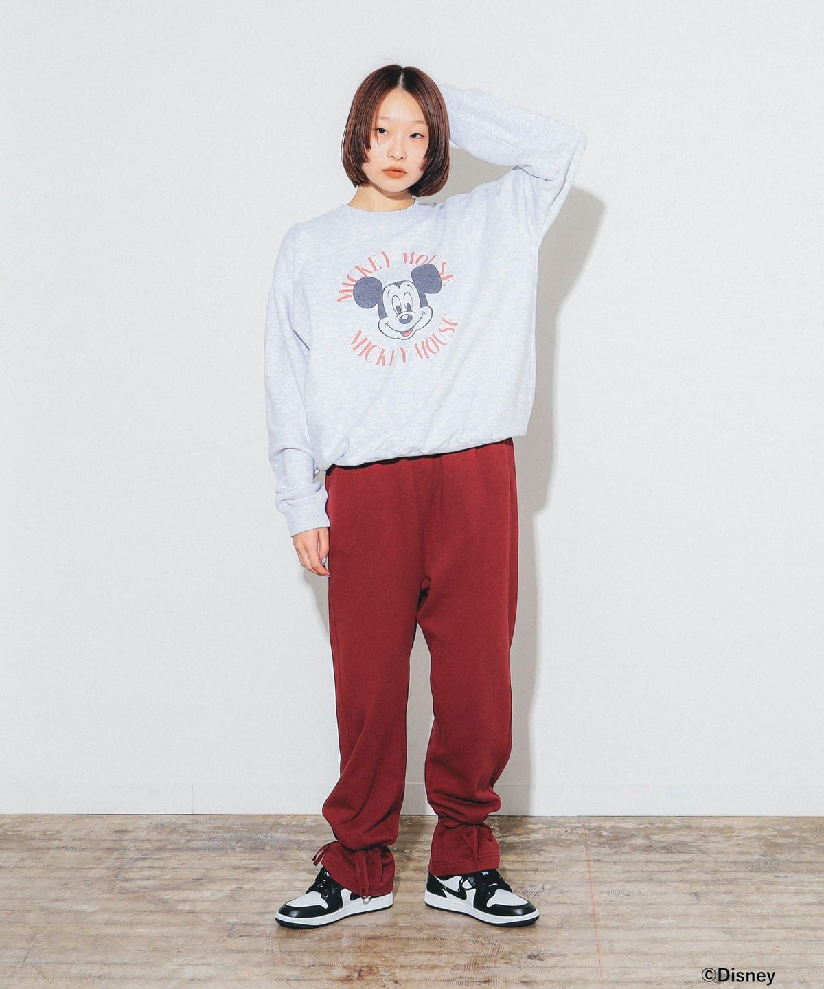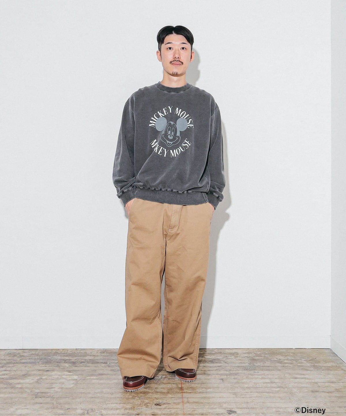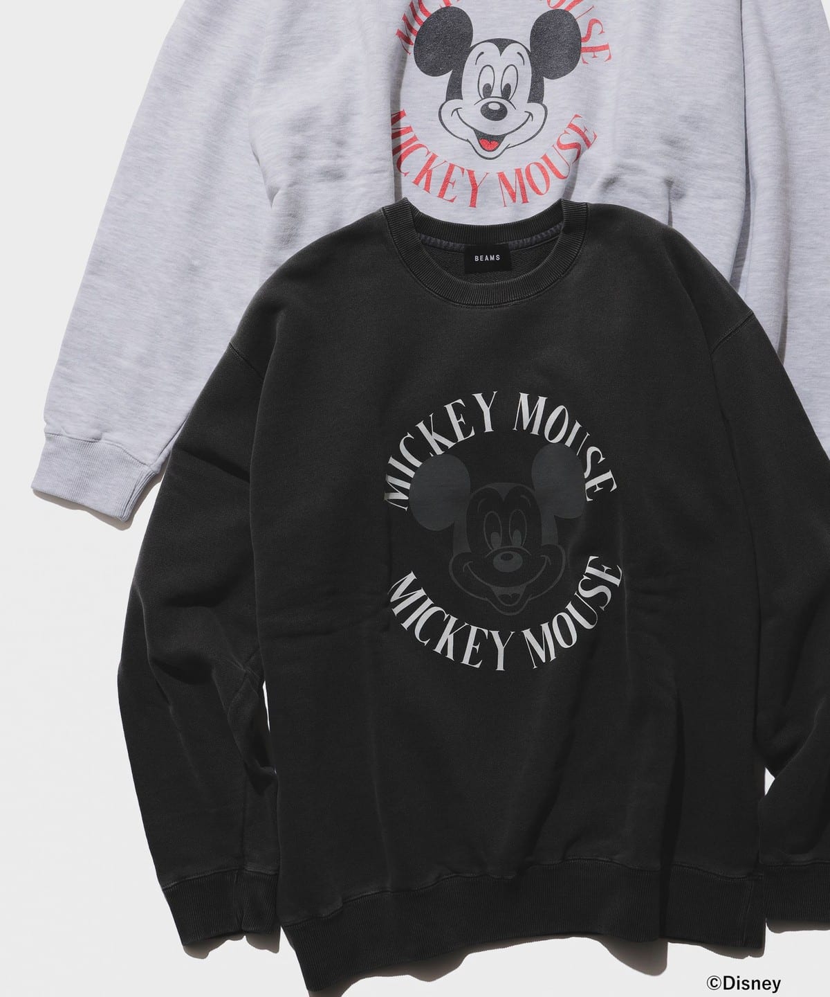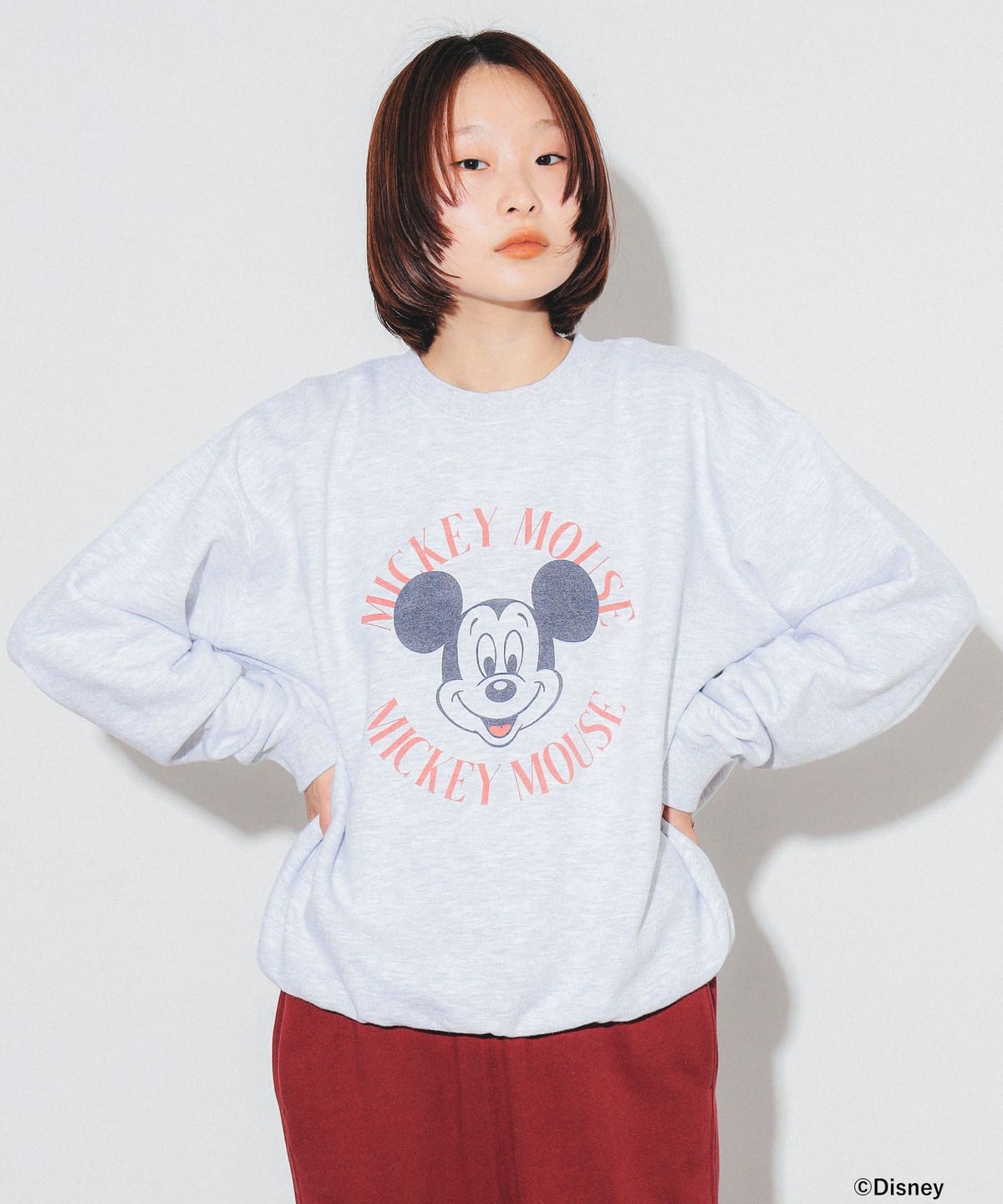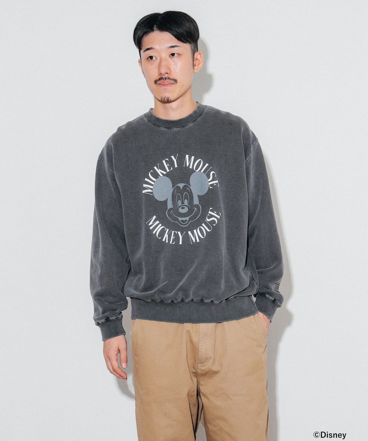 앞면에 미키마우스 프린팅이 있는 스웨트 티. 코튼 소재로 편안하고 착용감이 좋습니다. 레귤러핏