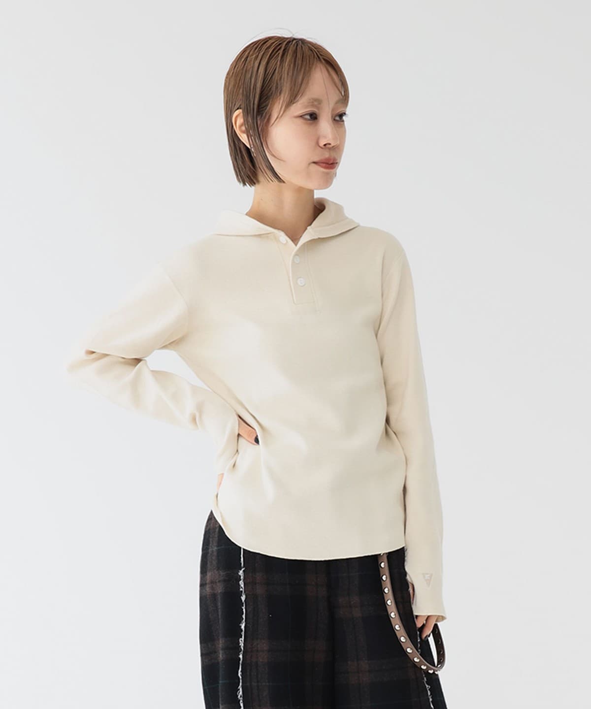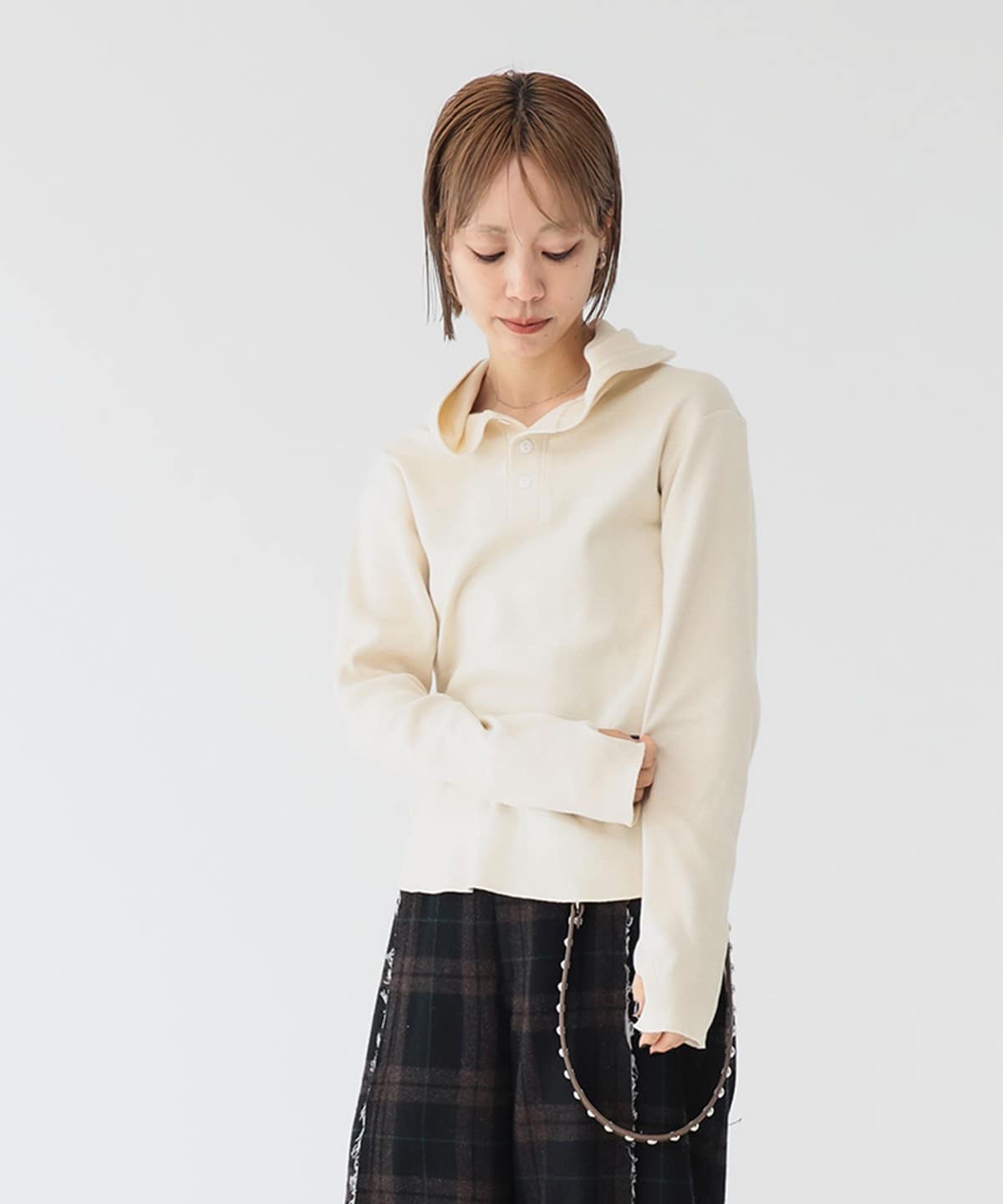 브랜드의 대표 디테일인 헨리넥을 세련되게 어레인지한 디자인의 티. 적당히 여유 있는 핏으로 편안하면서도 깔끔한 인상을 줍니다.