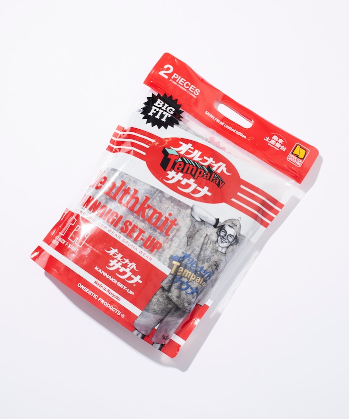 20세기 초 아메리칸 언더웨어 브랜드로 사랑받은 Healthknit의 감성을 SAUVENIR의 시그니처인 “ALL NIGHT SAUNA” 로고와 함께 현대적으로 재해석한 한정 콜라보 세트업입니다.