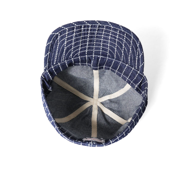 브랜드 오리지널로 제작한 12온스 워바시 데님을 사용한 아미 캡입니다.