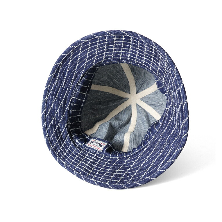 브랜드 오리지널로 제작한 12온스 워바시 데님을 사용한 아미 햇입니다. 데님 원단에 도트 패턴을 탈색 염색 방식으로 표현해 수공예적 질감을 느낄 수 있습니다.