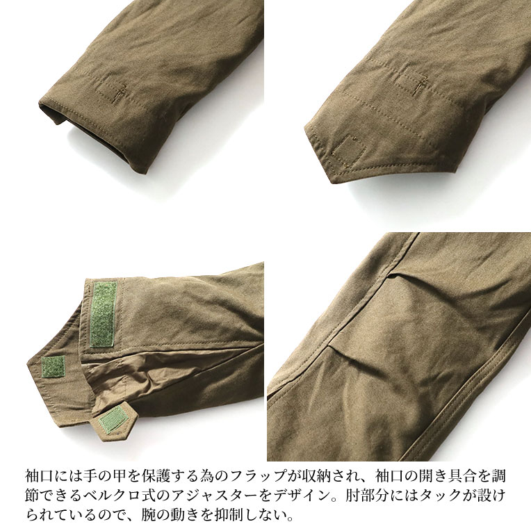 기존 M-65의 긴 기장을 숏 기장으로 줄이고, 등판의 액션 플리츠를 제거하는 등 전체적인 밸런스를 새롭게 리사이징하여 장르를 불문하고 멋스럽게 소화할 수 있는 M-65 자켓으로 탄생했습니다. 오리지널 M-65 자켓과 함께 소장하시면 두 스타일의 미묘한 차이를 더욱 재미있게 즐길 수 있는 아이템입니다.