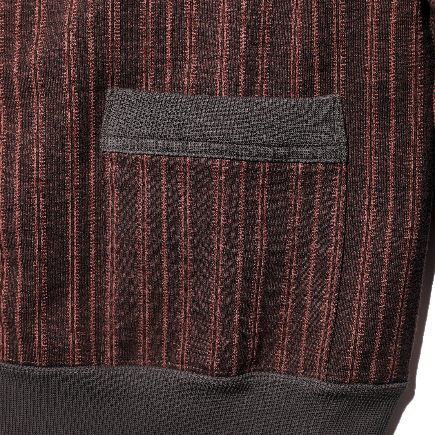 Mountain Man이라는 이름을 지니고 있으며, 1930~40년대 아웃도어용 빈티지 원단을 철저히 분석하고 수차례의 샘플링을 거쳐 재현해냈습니다. 16.1oz 헤비웨이트 원단은 기모 가공과 오버다이를 거쳐 빈티지 특유의 맛을 재현했습니다. 디자인은 고마시오 가디건을 계승했으며 멜란지 자카드 스트라이프 바디에 차코로 컬러 배색을 더했습니다.