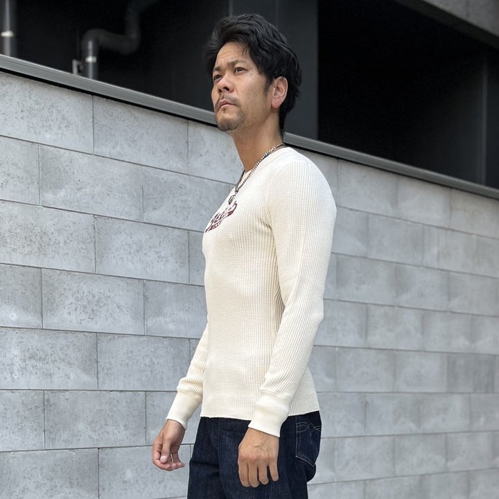 일반적인 서멀보다 훨씬 두껍고 강도가 뛰어난, 메가 서멀 크루넥 티셔츠입니다. 높은 보온성과 탁월한 신축성으로 가을 겨울 입기 좋습니다. 타이트한 핏으로 제작되었으나 몸에 맞게 잘 늘어나며, 세탁 후에도 포근한 착용감이 유지됩니다. 바인더 넥 마감과 강한 텐션의 리브 사양을 적용했으며 프린트는 내구성이 뛰어난 러버 프린트로 마감했습니다.