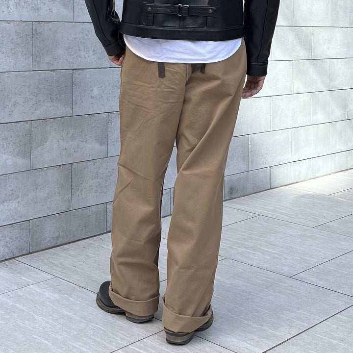 JELADO가 자랑하는 LASTRESORT CHINO CLOTH는, 라스트리조트 데님과 마찬가지로 수종의 데드스톡 M41 KHAKI 팬츠를 해체·분석해, 원사 굵기, 실의 꼬임 방향과 횟수, 실의 균일도 등 당시의 기술력과 생산 배경을 철저히 반영해 재현한 궁극의 치노 소재입니다.