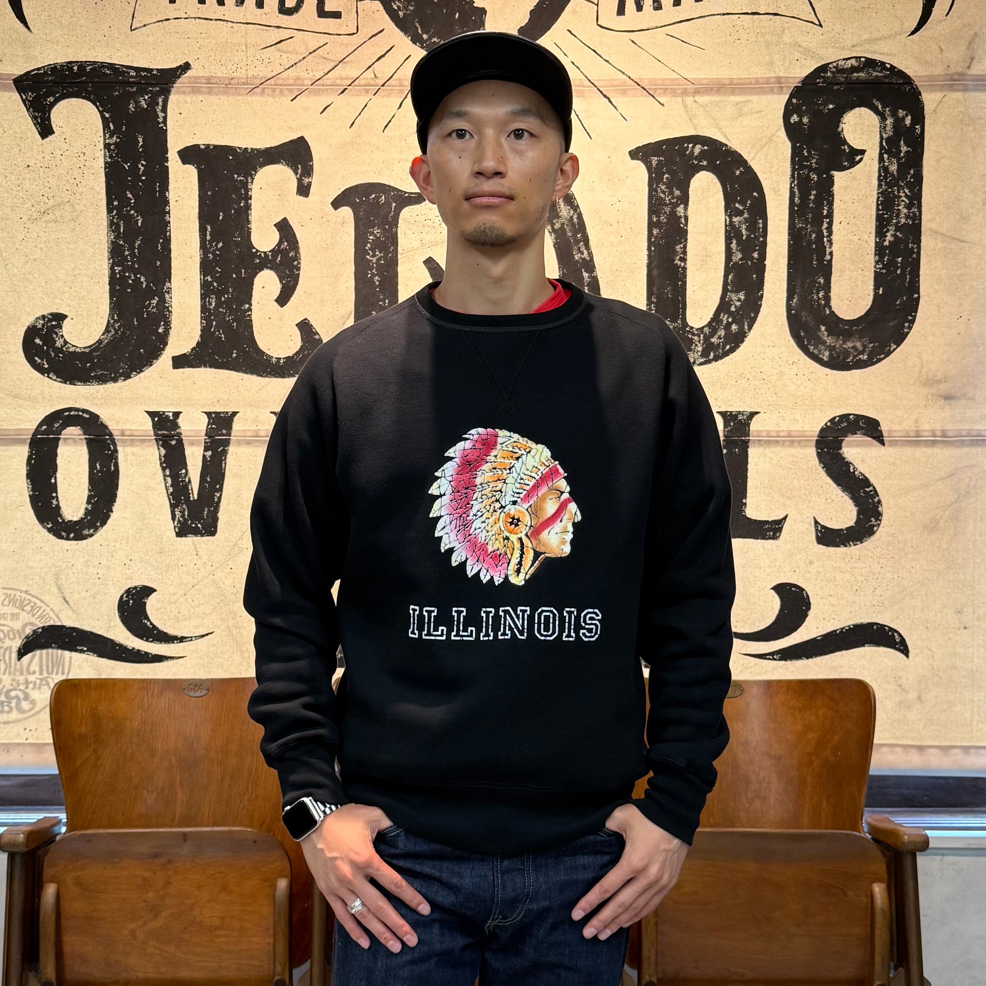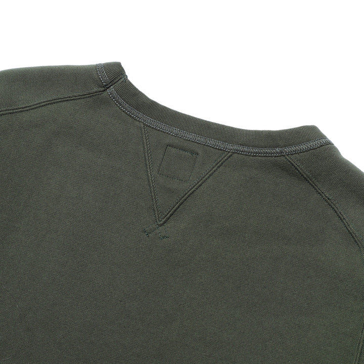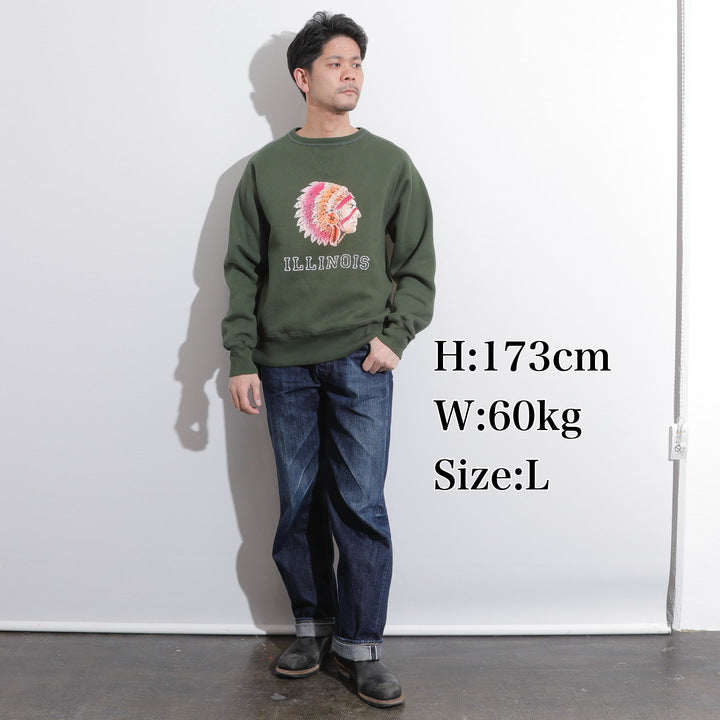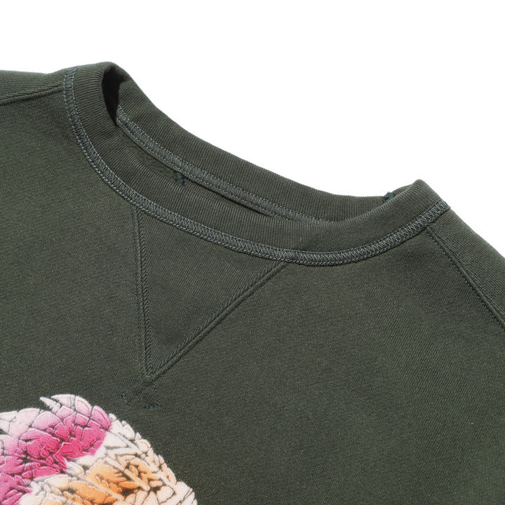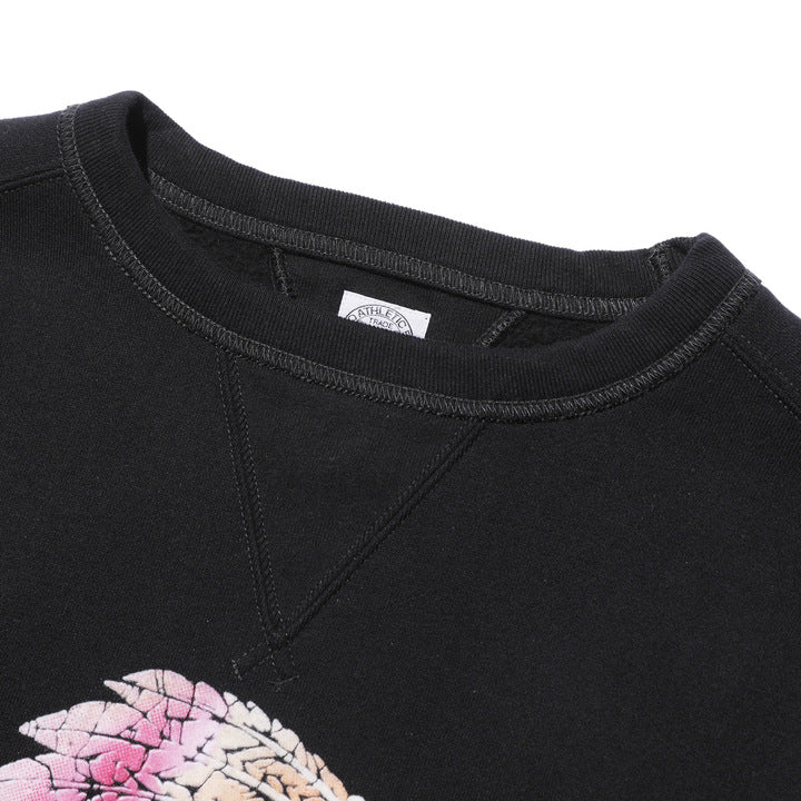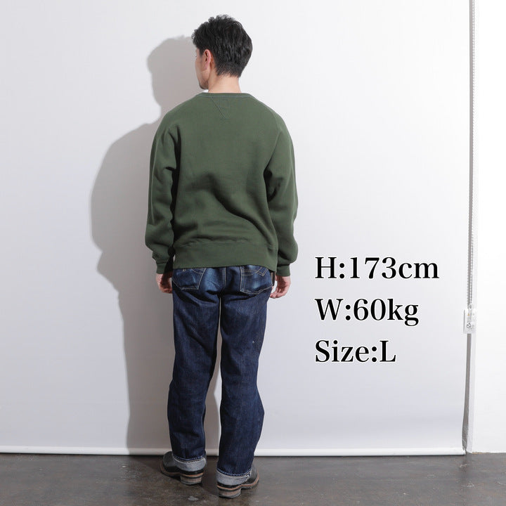 스웨트 본체는 1970년대에 제작된 희소한 아즈마 편직기 로 짠 원통형 원단을 사용한 스웨트 티