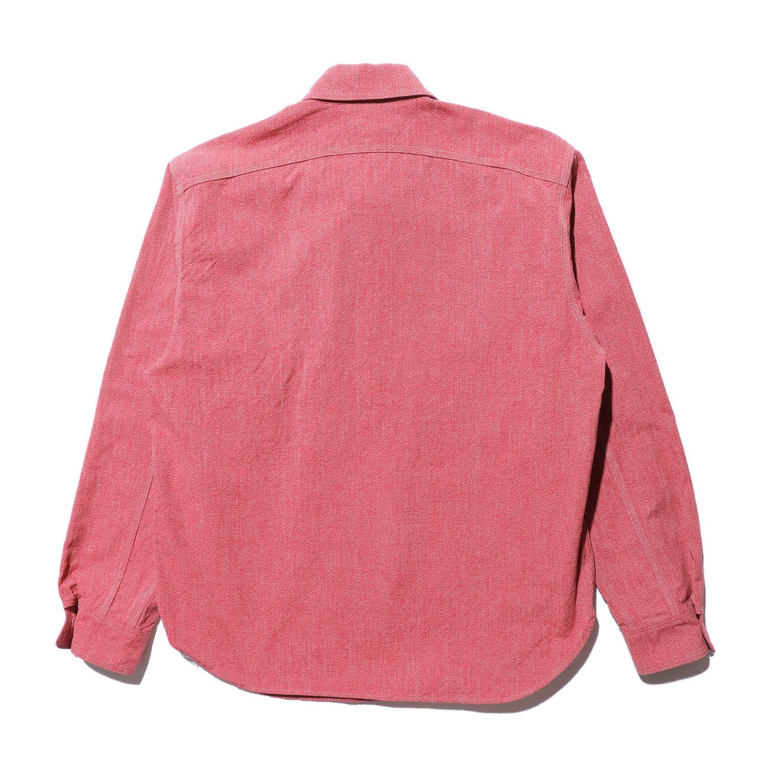 프런트의 작은 포켓에는 빈티지 아이템에서 볼 수 있는 주머니 봉제방식을 적용하여 디테일까지 충실히 재현했습니다. 버튼은 빈티지 워크셔츠에서 자주 보이는 육각형 버튼을 사용했습니다. 핏은 적당히 슬림하면서도 깔끔한 실루엣입니다.