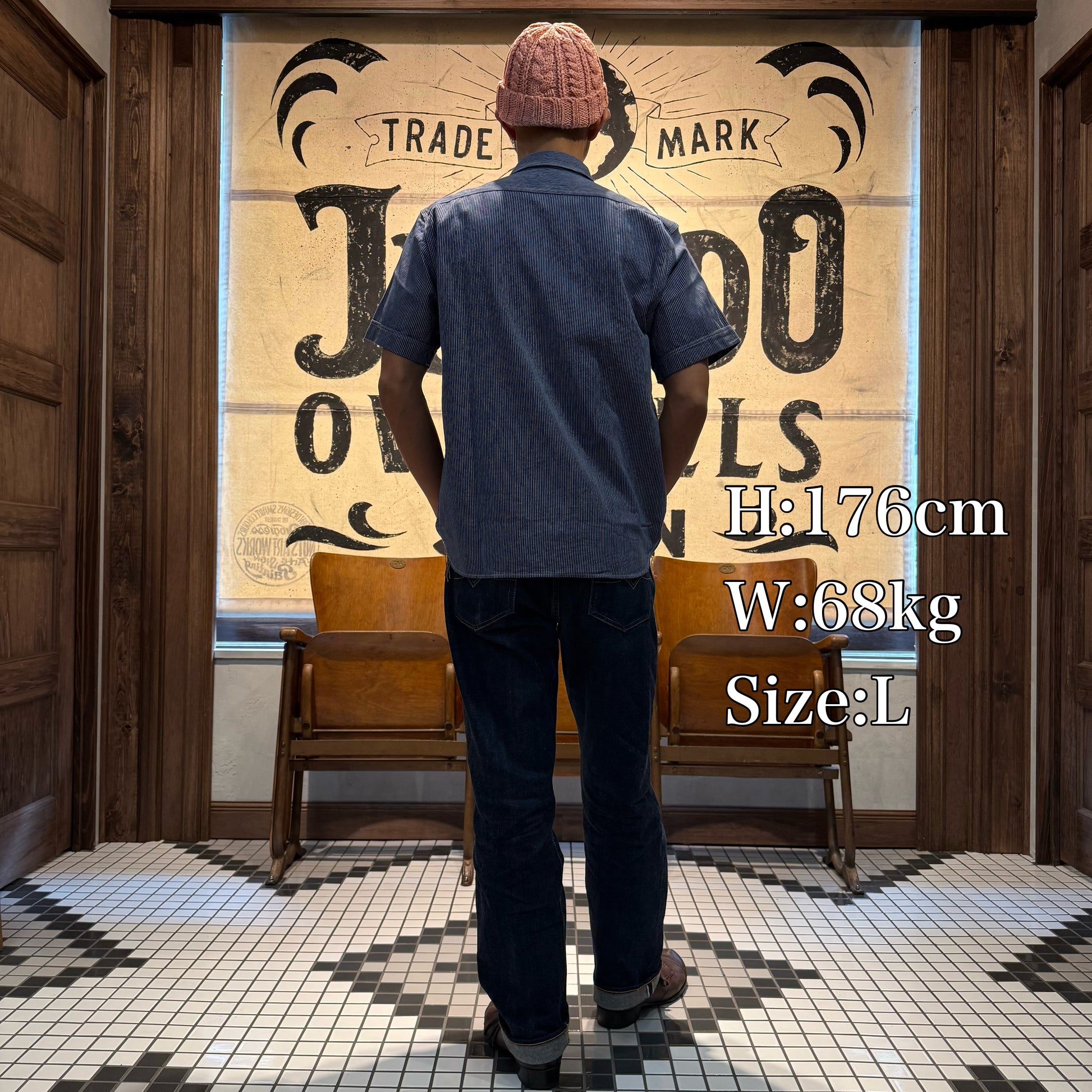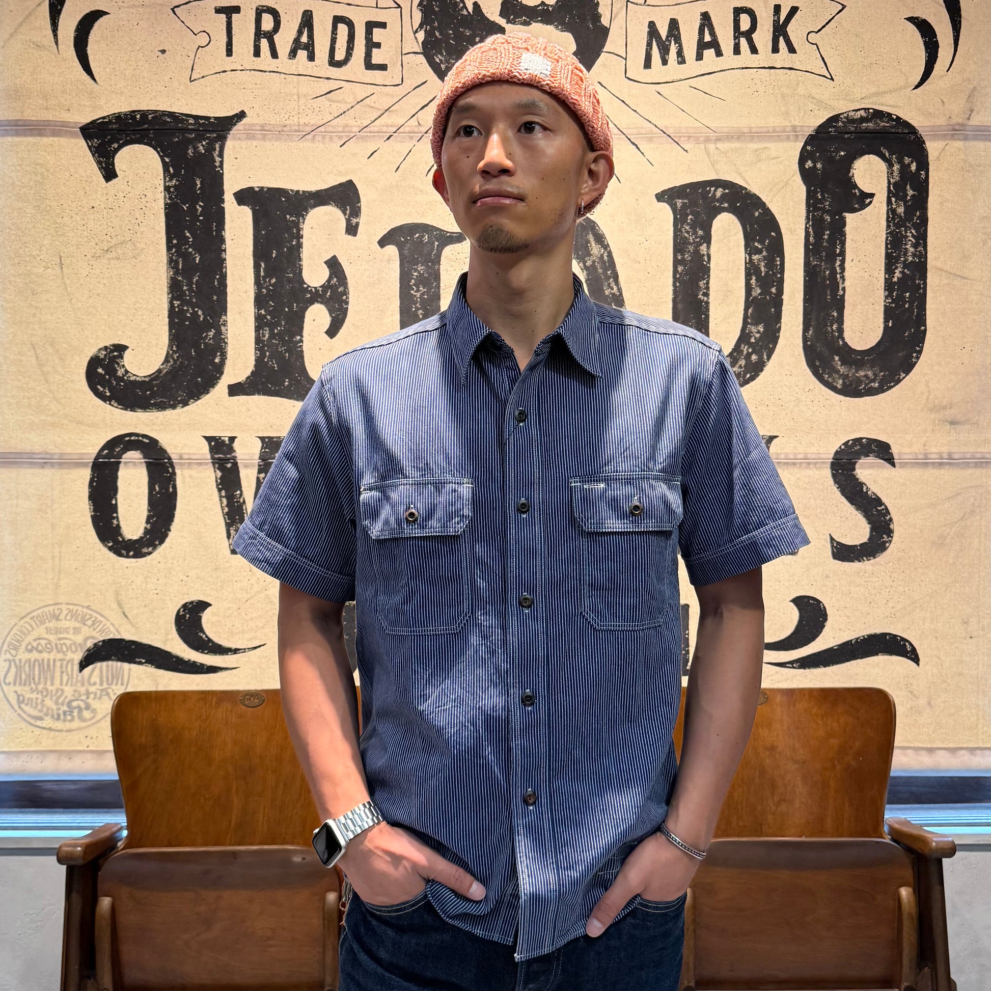 nionworkers S/S Chambray 셔츠를 기반으로, 더욱 희소한 인디고 스트라이프 원단으로 새롭게 제작한 스페셜 에디션 반팔 셔츠입니다.