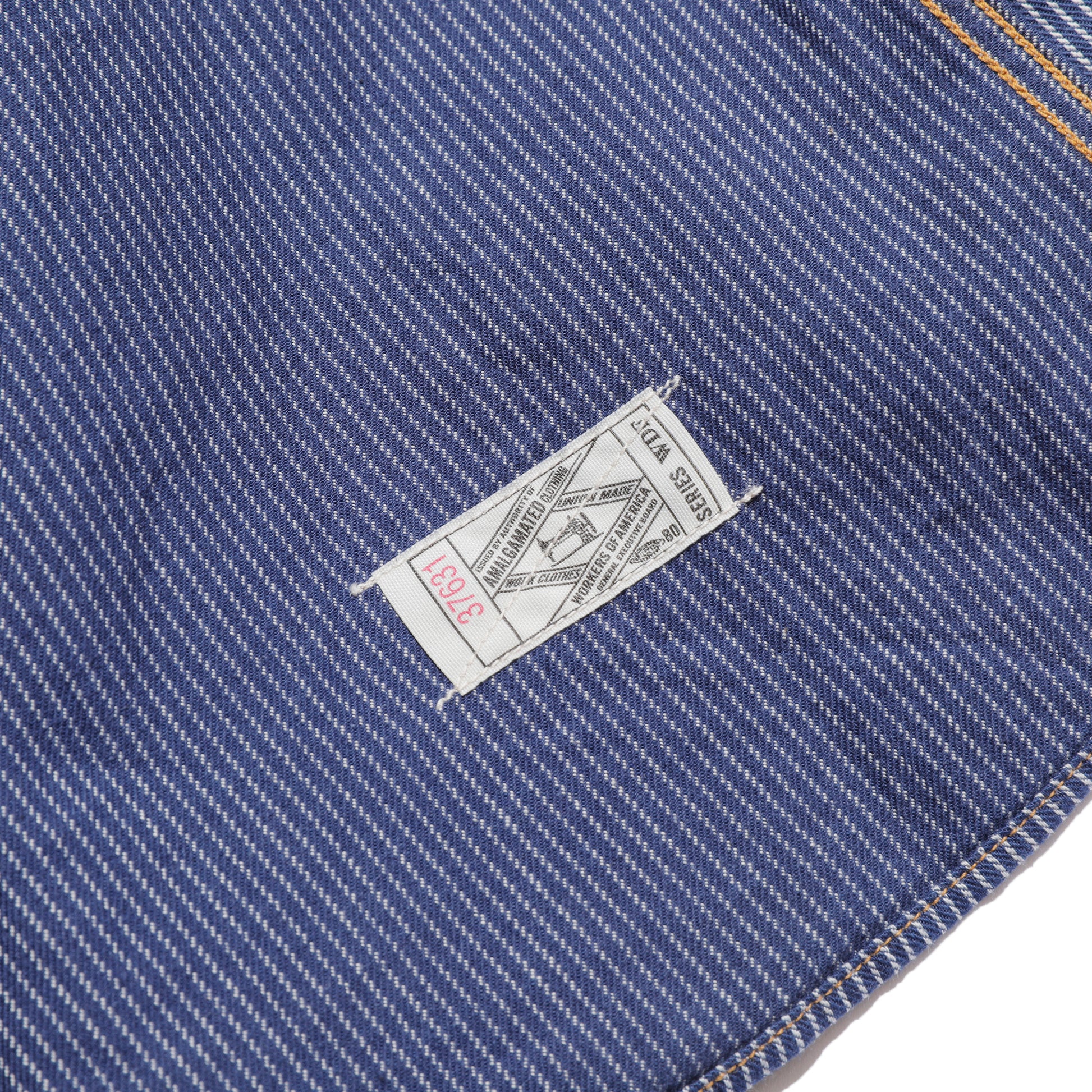 원단은 6.5온스 인디고 스트라이프 셀비지 소재를 사용합니다.