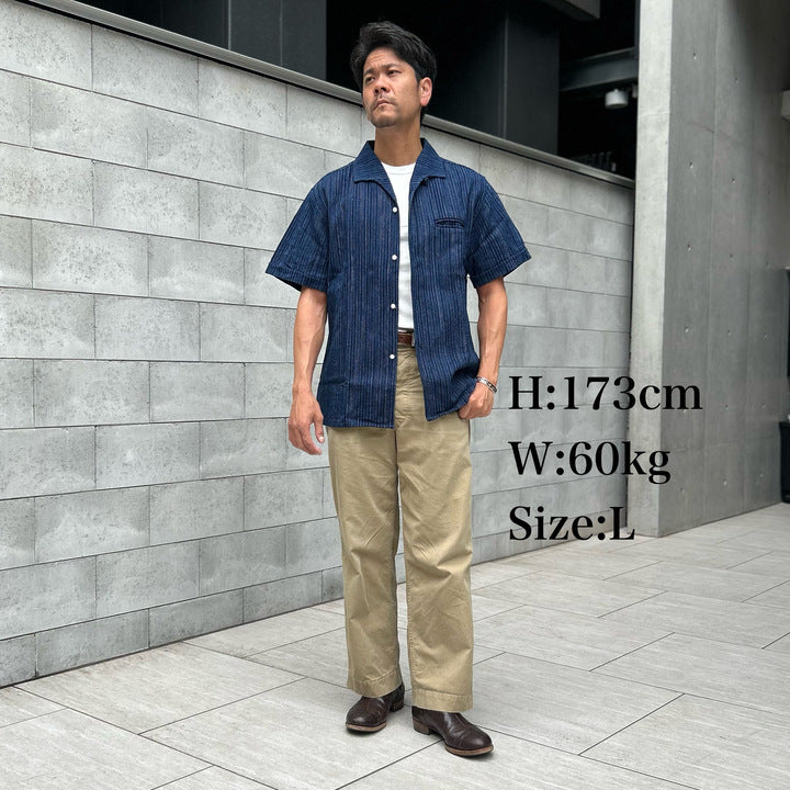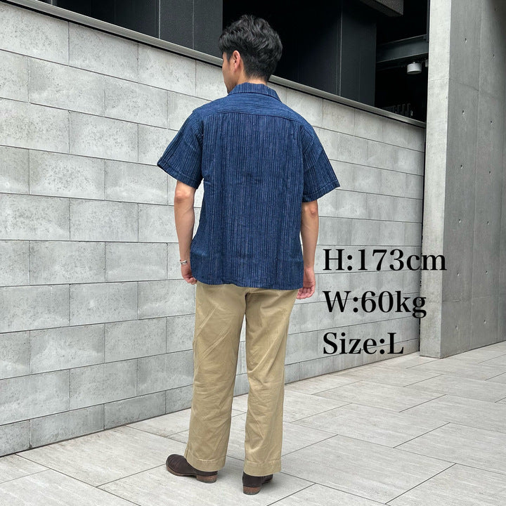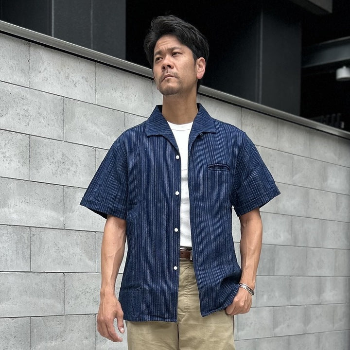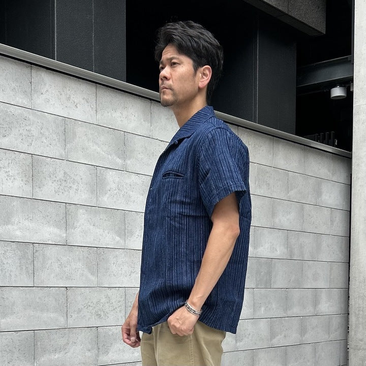 광시마현 전통 공예품 ‘비고카스리’ 원단을 인디고 염색하여 만든, 극히 희소한 프리미엄 셔츠입니다.