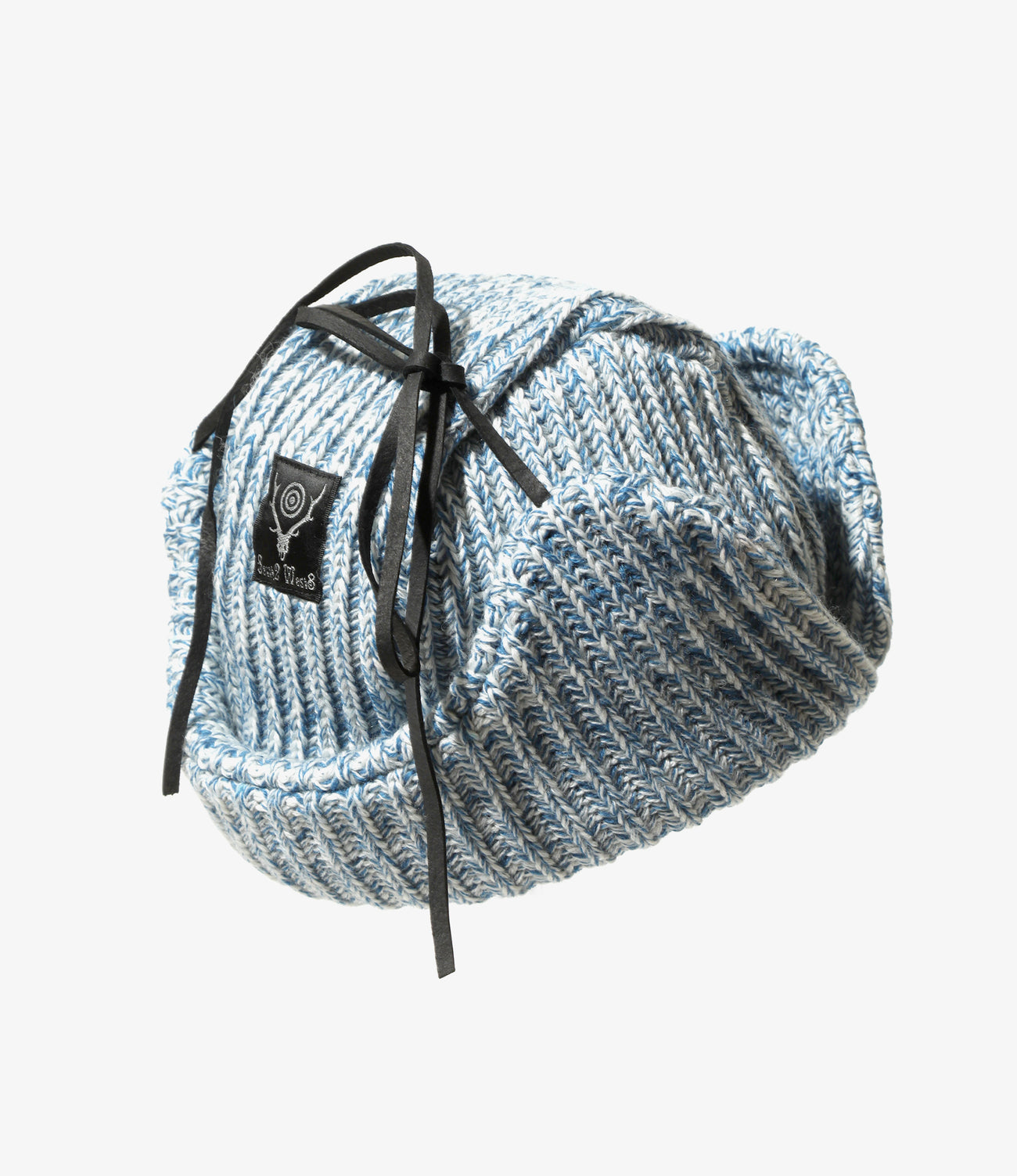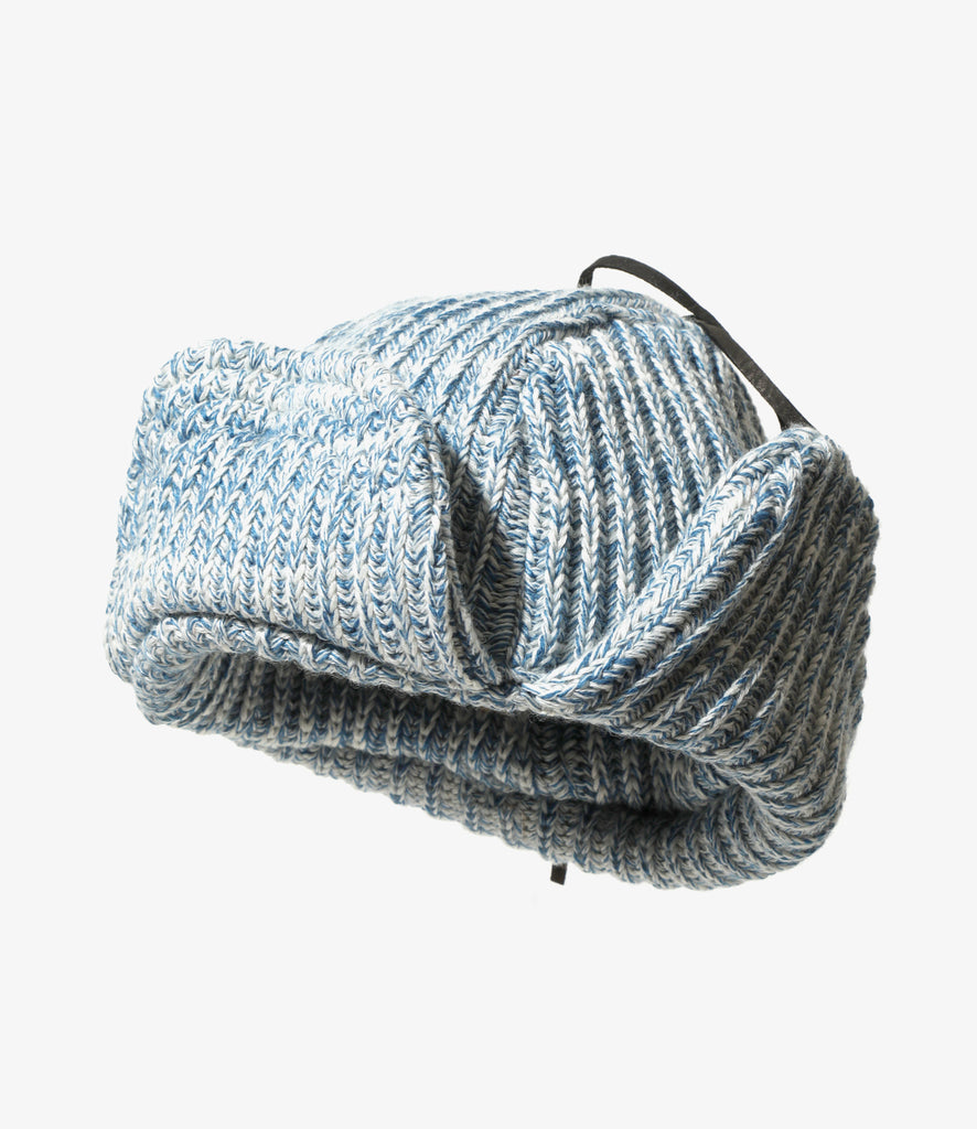 따뜻해보이는 니트 소재로 귀마개는 가죽 끈을 사용하여 머리 위에 고정할 수 있습니다.
