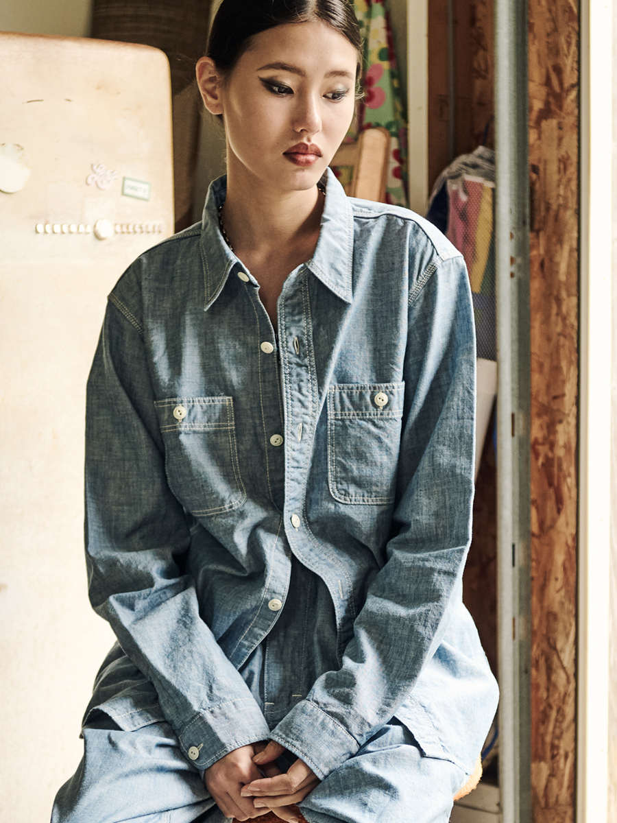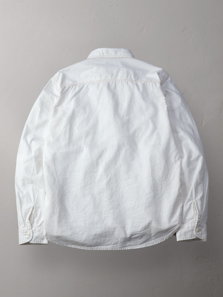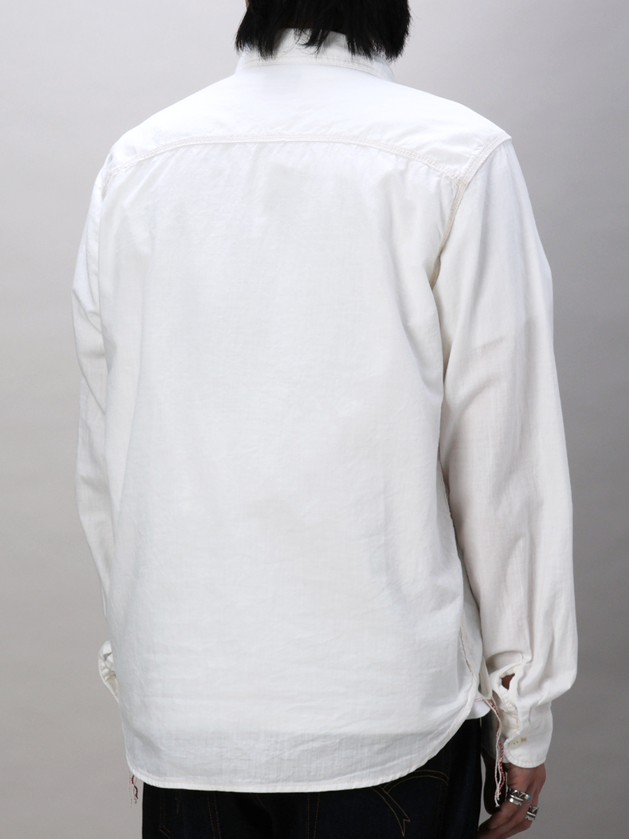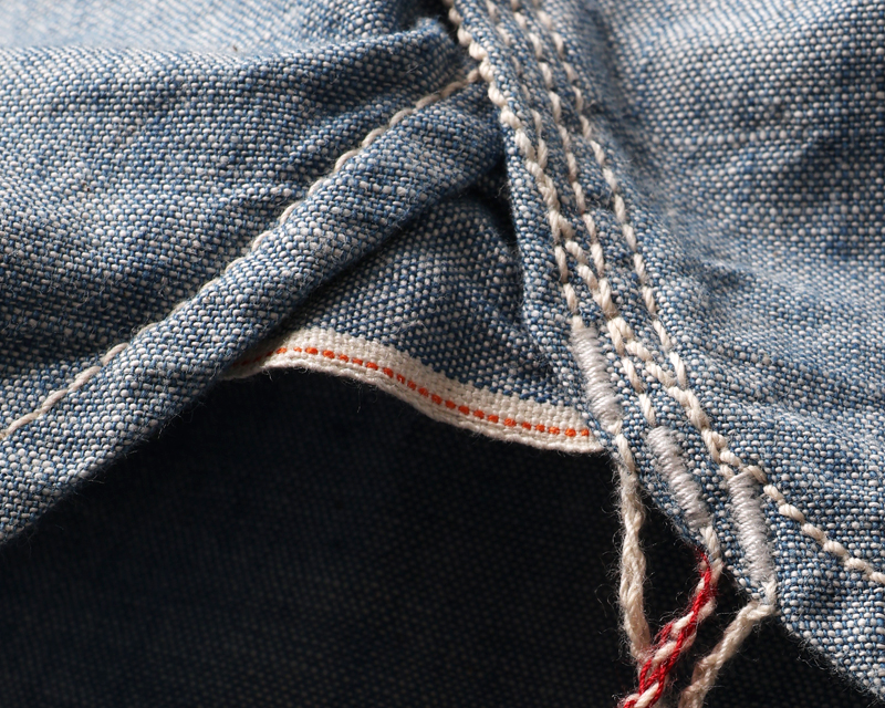 자연스러운 텍스처를 표현하기 위해 실 자체도 별도로 방적하여, 저속 셔틀 직기로 천천히 짜낸 소재를 사용한 셔츠. 가볍고 부드러운 5oz 원단을 사용해 산뜻한 착용감입니다.
