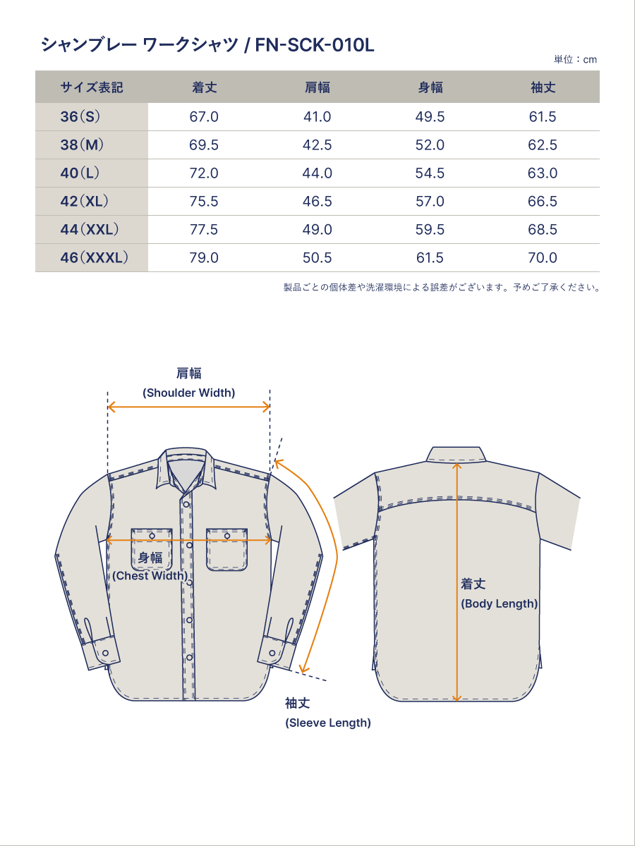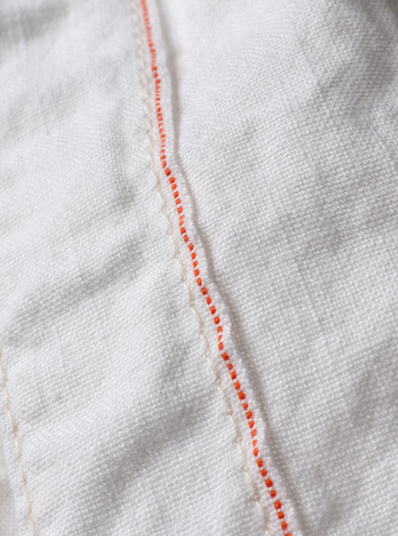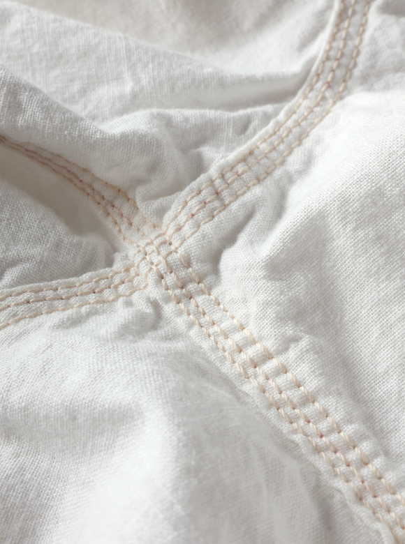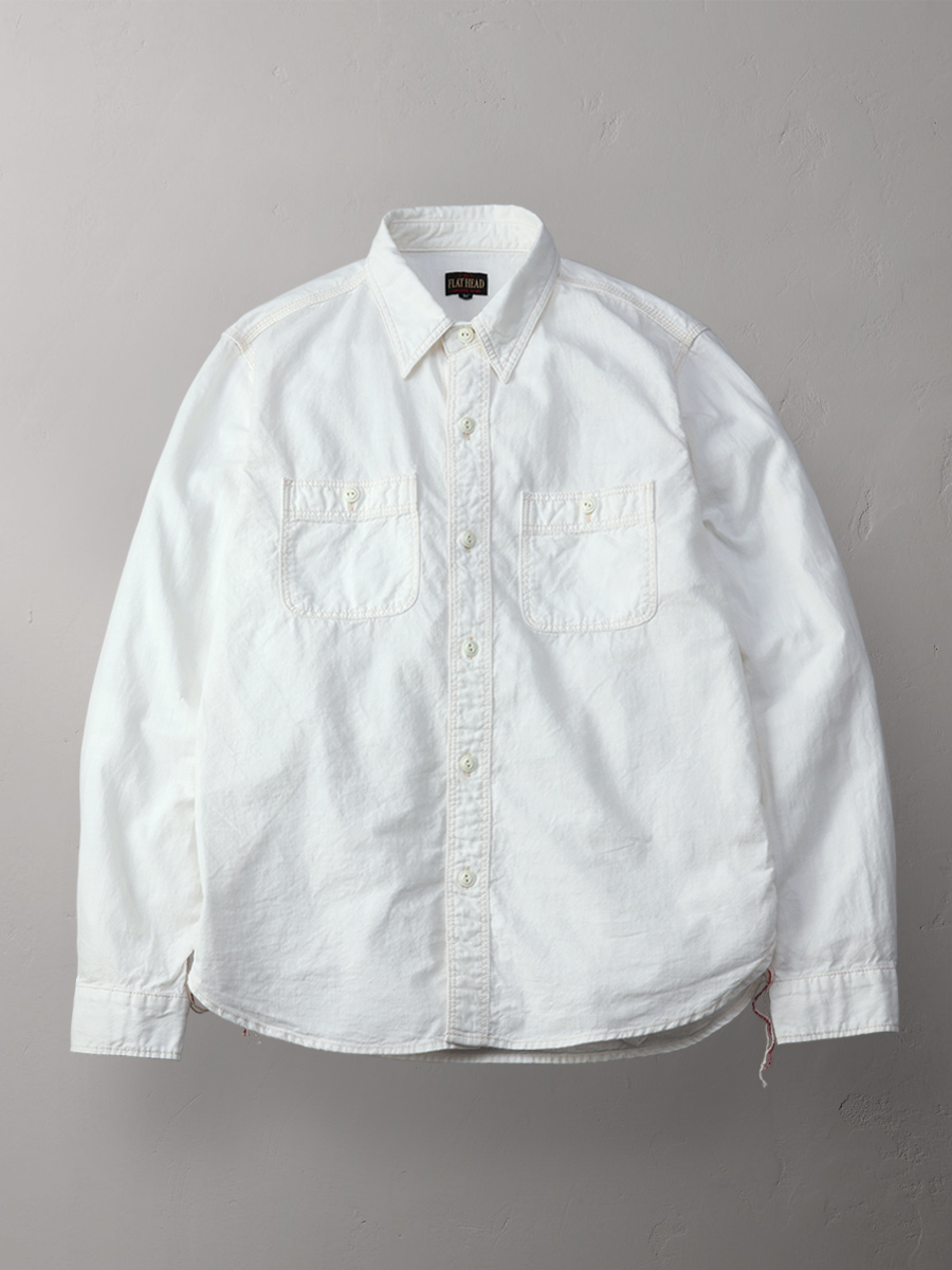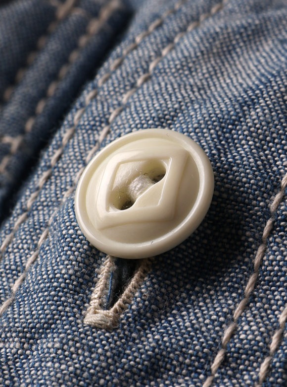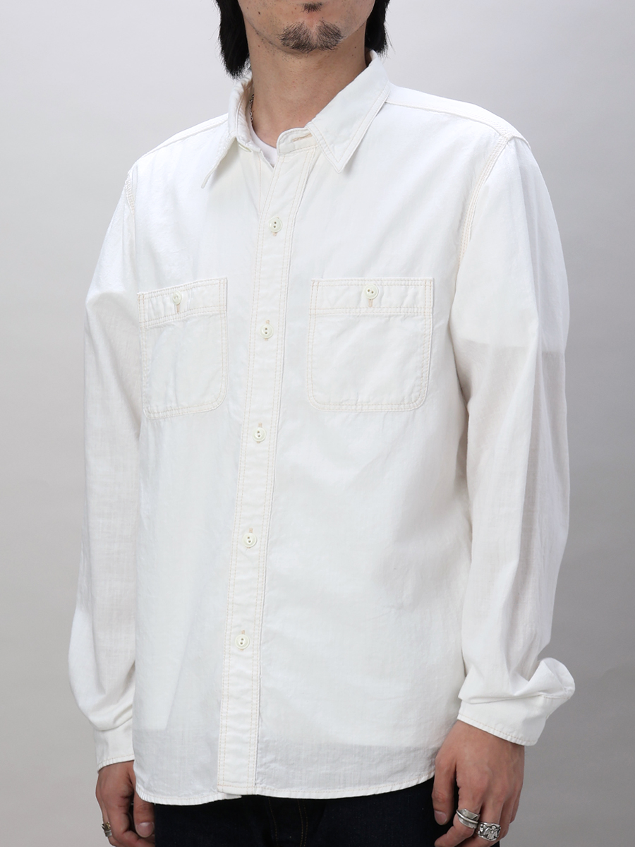 자연스러운 텍스처를 표현하기 위해 실 자체도 별도로 방적하여, 저속 셔틀 직기로 천천히 짜낸 소재를 사용한 셔츠. 가볍고 부드러운 5oz 원단을 사용해 산뜻한 착용감입니다.