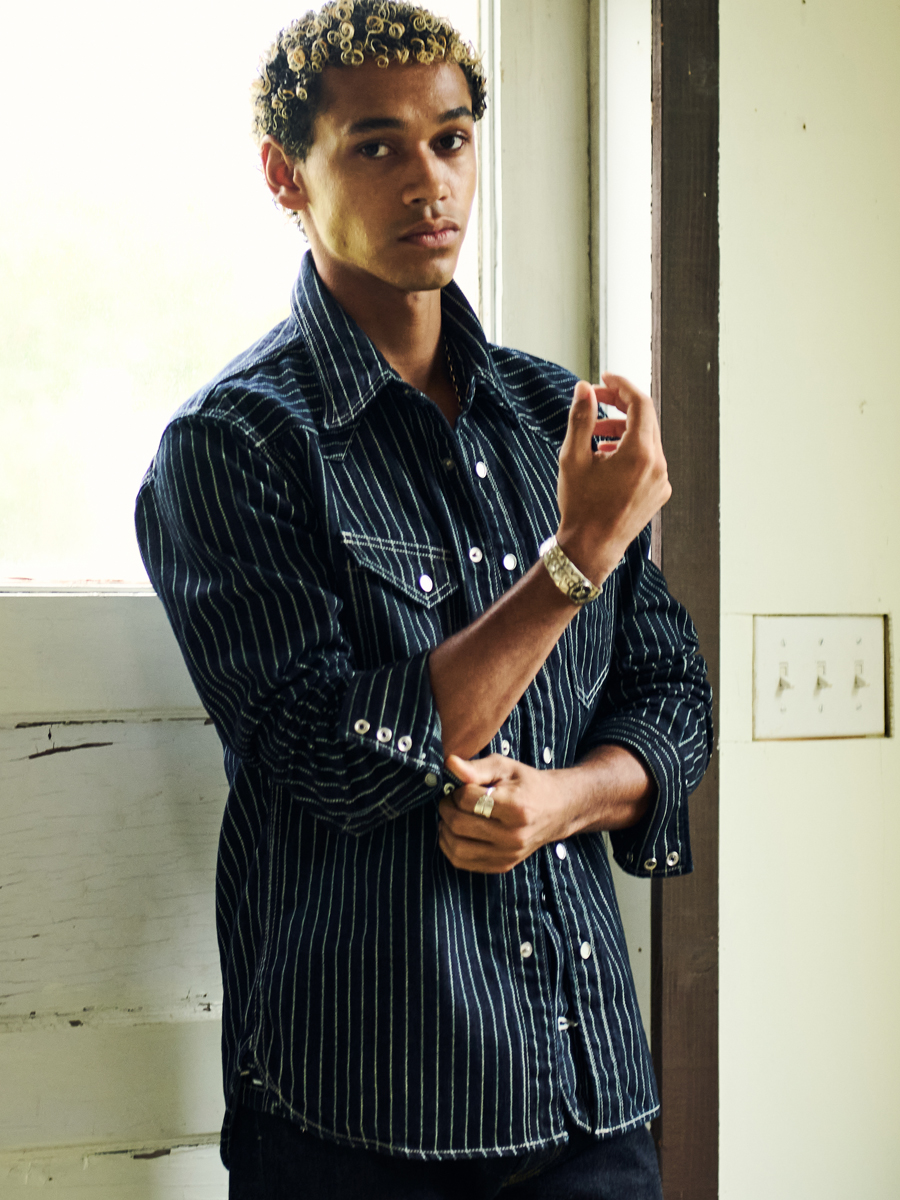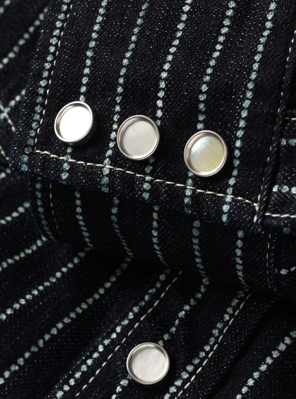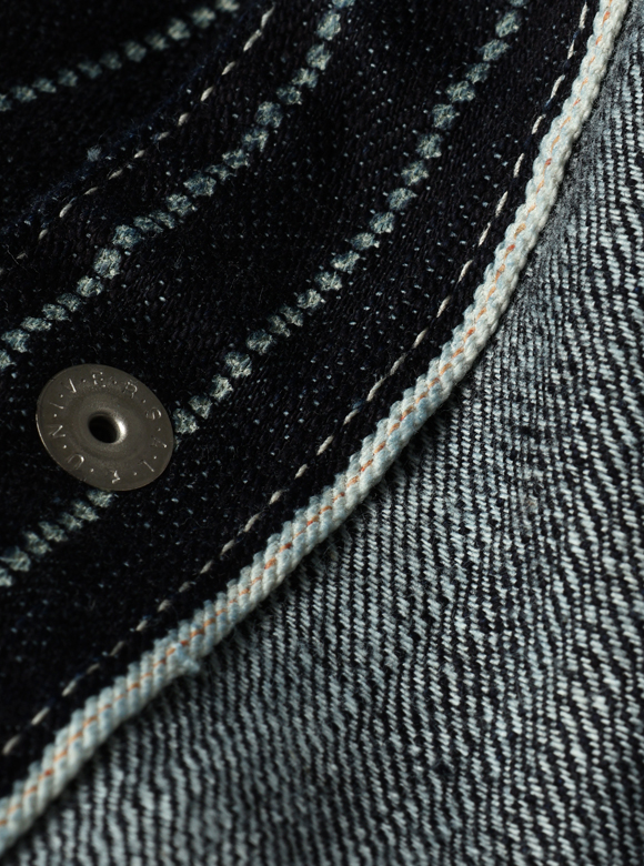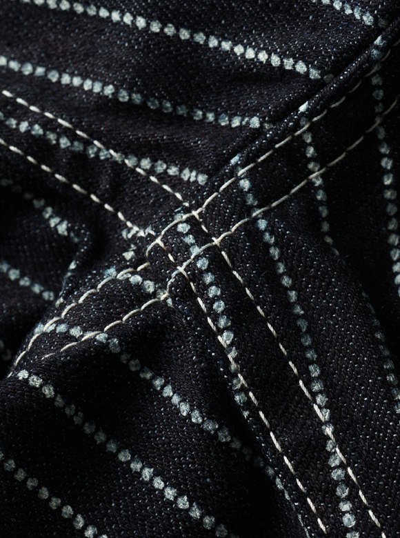 오리지널 10oz 데님 원단에 흰색 도트 스트라이프 패턴을 더한 독특한 워바시 원단은 시각적으로 부드러운 인상을 주며, 입을수록 자연스러운 에이징도 기대할 수 있습니다.