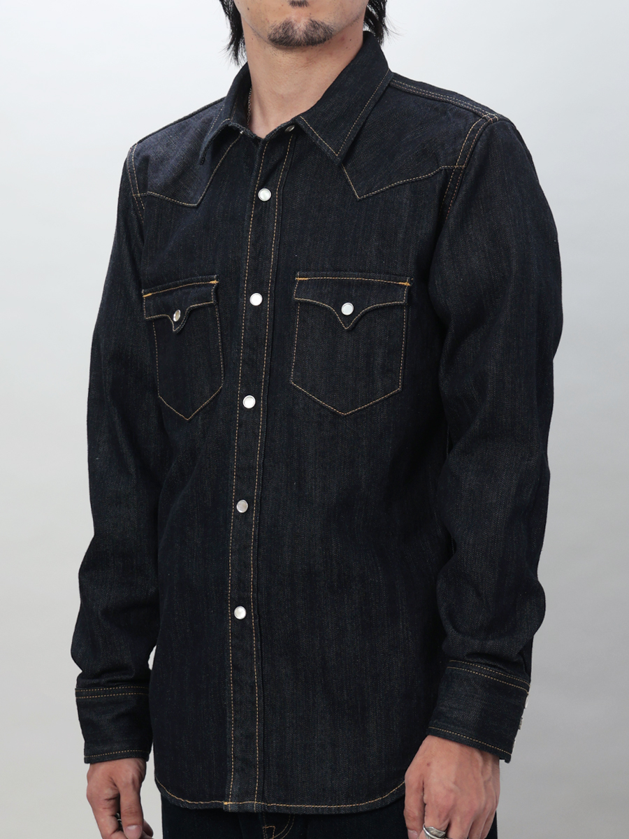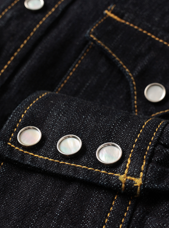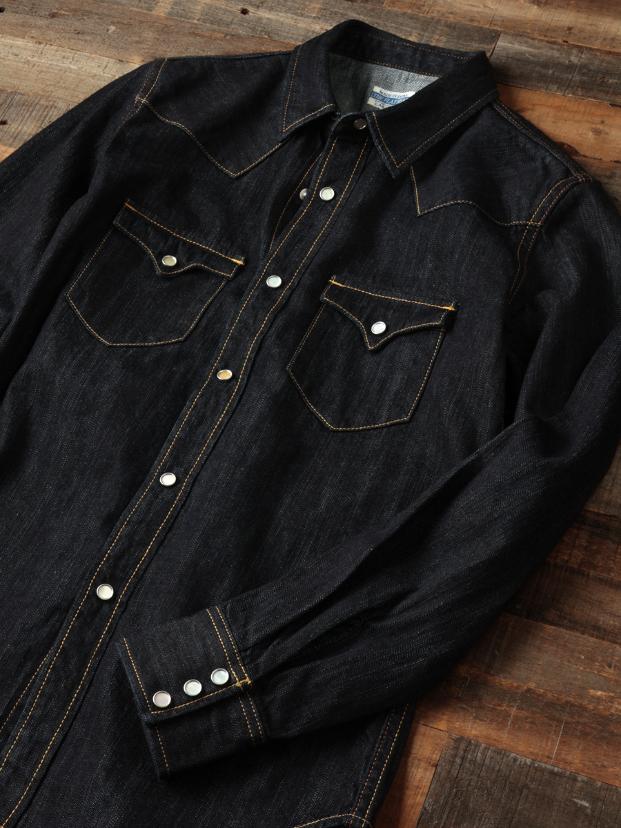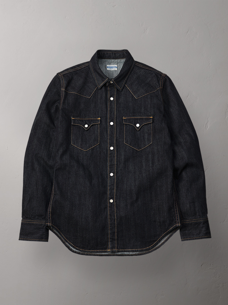 1950년대 빈티지 웨스턴 셔츠를 기반으로, 플랫헤드가 독자 개발한 10oz 데님 원단을 사용해 완성한 오리지널 웨스턴 셔츠입니다.