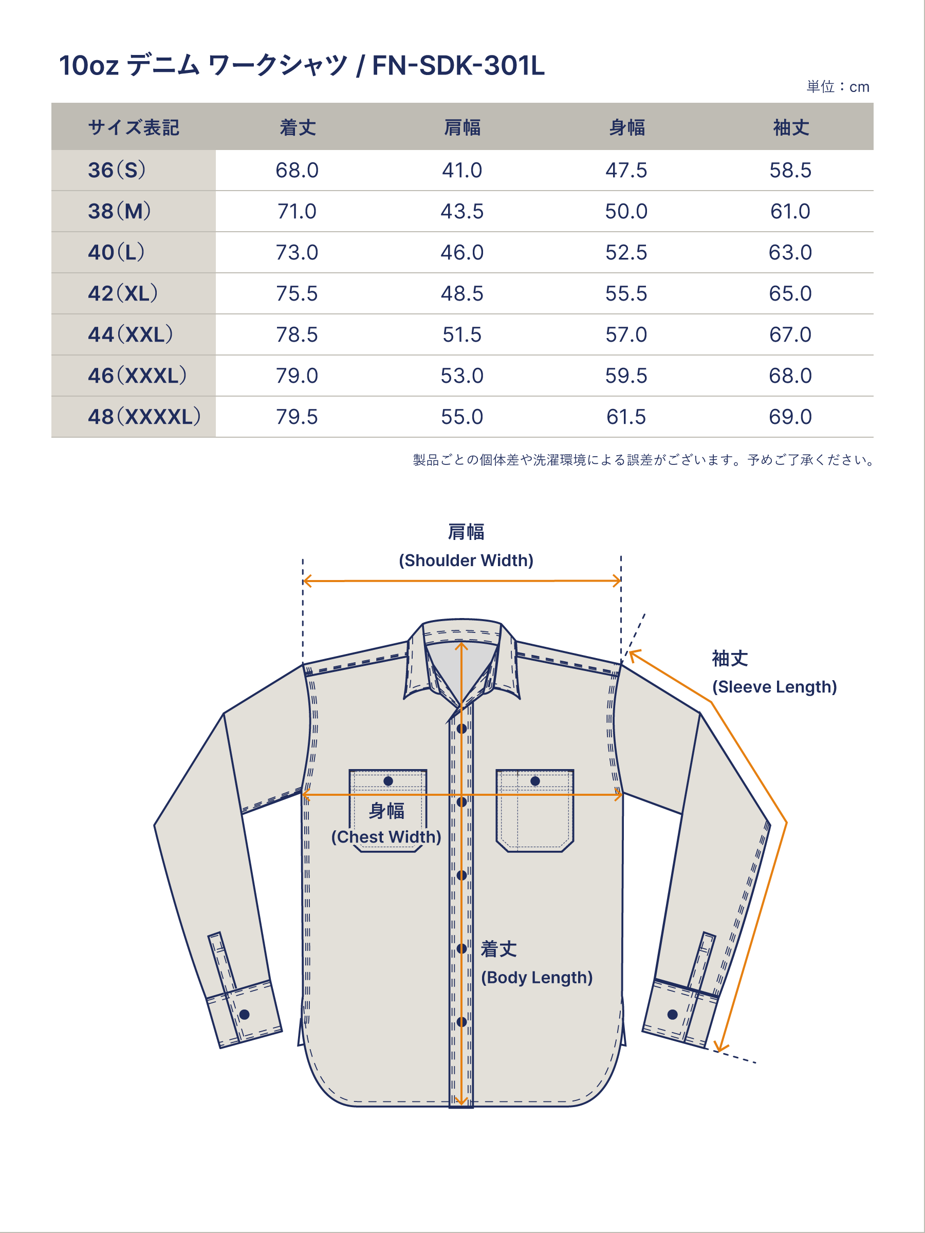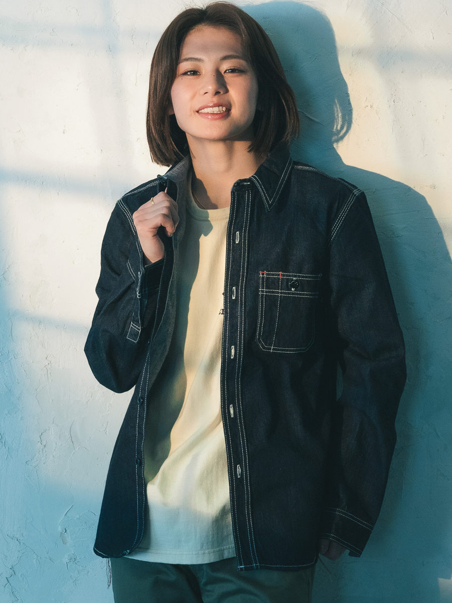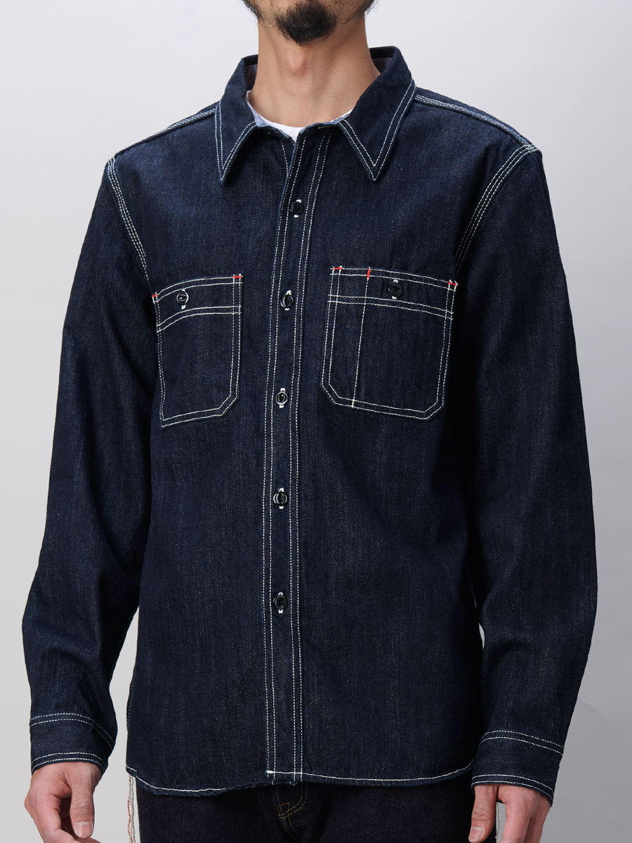 가볍고 적당한 탄력감이 있는 오리지널 10oz 데님 원단으로 제작된 워크 셔츠입니다.