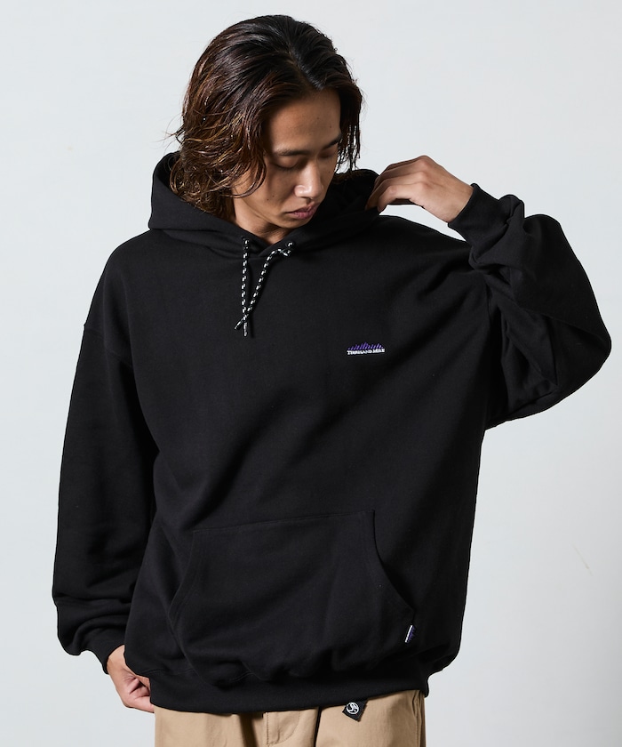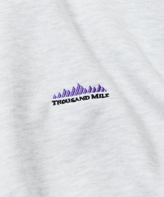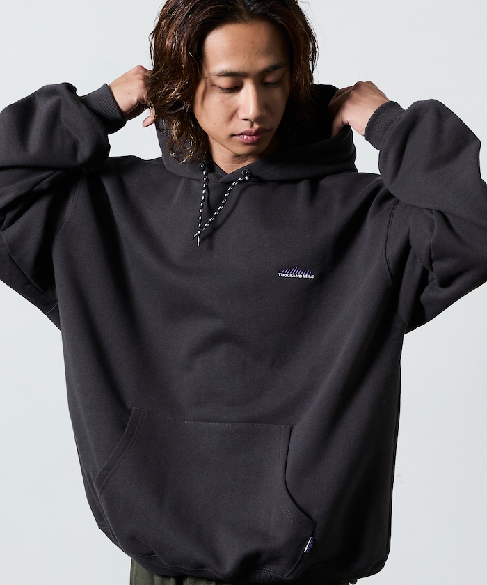 캘리포니아발 브랜드 THOUSAND MILE과의 별주 협업 후디. 심플한 원포인트 브랜드 로고가 있습니다. 넥 라인은 드로우스트링을 사용한 후드 디자인입니다. 부드럽고 따뜻한 기모 안감 소재를 사용합니다.